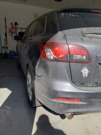 Clean CARFAX. Gray 2013 Mazda CX-9 Grand Touring AWD 6-Speed Sport Automatic 3.7L V6 DOHC 24V AWD, 20 x 7.5J Aluminum Alloy Wheels, 3.464 Axle Ratio, 3rd row seats: split-bench, 4-Wheel Disc Brakes, 6 Speakers, ABS brakes, Air Conditioning, Alloy wheels, AM/FM radio, AM/FM Sound System w/CD & 6 Speakers, Anti-whiplash front head restraints, Auto-dimming Rear-View mirror, Automatic temperature control, Brake assist, Bumpers: body-color, CD player, Delay-off headlights, Driver door bin, Driver vanity mirror, Dual front impact airbags, Dual front side impact airbags, Electronic Stability Control, Exterior Parking Camera Rear, Four wheel independent suspension, Front anti-roll bar, Front Bucket Seats, Front Center Armrest, Front dual zone A/C, Front fog lights, Front reading lights, Fully automatic headlights, Garage door transmitter: HomeLink, Heated door mirrors, Heated Front Bucket Seats, Heated front seats, High intensity discharge headlights: Bi-Xenon, Illuminated entry, Leather Shift Knob, Leather Trimmed Seats, Low tire pressure warning, Memory seat, Occupant sensing airbag, Outside temperature display, Overhead airbag, Overhead console, Panic alarm, Passenger door bin, Passenger vanity mirror, Power door mirrors, Power driver seat, Power Liftgate, Power passenger seat, Power steering, Power windows, Rain sensing wipers, Rear air conditioning, Rear anti-roll bar, Rear Parking Sensors, Rear seat center armrest, Rear window defroster, Rear window wiper, Remote keyless entry, Security system, Speed control, Speed-sensing steering, Split folding rear seat, Spoiler, Steering wheel mounted audio controls, Tachometer, Telescoping steering wheel, Tilt steering wheel, Traction control, Trip computer, Turn signal indicator mirrors, Variably intermittent wipers, AWD.