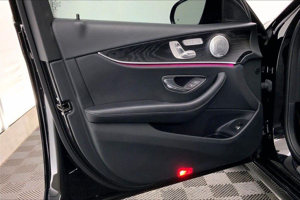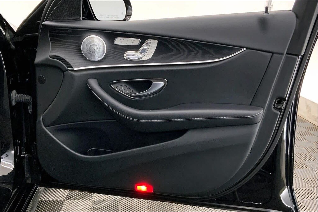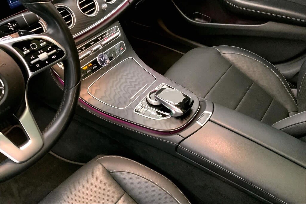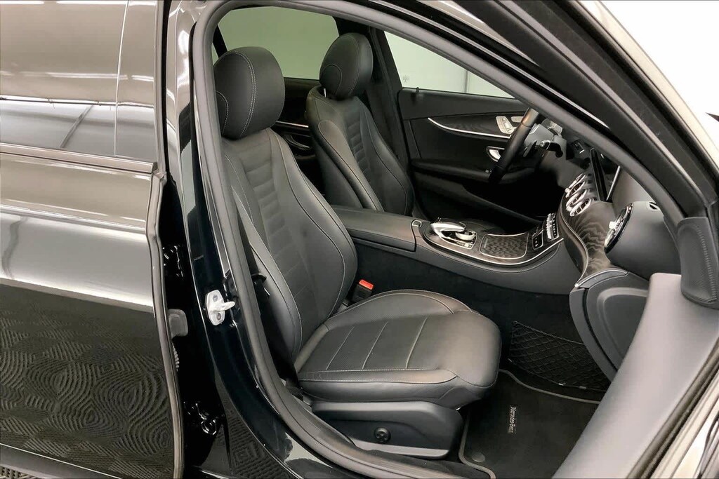 Obsidian Black Metallic 2019 Mercedes-Benz E-Class E 300 4MATICî 4MATICî 9-Speed Automatic I4 4MATICî, 18 5-Spoke Wheels, 4-Way Lumbar Support, 4-Wheel Disc Brakes, 8 Speakers, ABS brakes, Air Conditioning, Alloy wheels, AM/FM radio, Android Autoî, Anti-whiplash front head restraints, Apple CarPlayî, Apple CarPlayî/Android Autoî, Auto tilt-away steering wheel, Auto-dimming door mirrors, Auto-dimming Rear-View mirror, Automatic temperature control, Brake assist, Bumpers: body-color, Burl Walnut Wood Trim, Delay-off headlights, Driver door bin, Driver vanity mirror, Dual front impact airbags, Dual front side impact airbags, Electronic Stability Control, Emergency communication system: Mercedes me connect, Exterior Parking Camera Rear, Four wheel independent suspension, Front anti-roll bar, Front Bucket Seats, Front Center Armrest, Front dual zone A/C, Front reading lights, Fully automatic headlights, Garage door transmitter: Homelink, Genuine wood dashboard insert, Genuine wood door panel insert, HD Radio w/SIRIUS Satellite & Real-Time Traffic, Head restraints memory, Heated door mirrors, Illuminated entry, Knee airbag, Leather Shift Knob, Low tire pressure warning, MB-Tex Upholstery, Memory seat, Navigation system: COMANDî, Occupant sensing airbag, Outside temperature display, Overhead airbag, Overhead console, Panic alarm, Passenger door bin, Passenger vanity mirror, Power adjustable front head restraints, Power adjustable rear head restraints, Power door mirrors, Power driver seat, Power Front Seats, Power moonroof, Power passenger seat, Power steering, Power windows, Premium audio system: COMANDî, Radio data system, Radio: COMANDî Navigation, Rain sensing wipers, Rear anti-roll bar, Rear fog lights, Rear reading lights, Rear seat center armrest, Rear window defroster, Remote keyless entry, Security system, Speed control, Speed-sensing steering, Split folding rear seat, Sport Package, Steering wheel memory, Steering wheel mounted audio controls, Tachometer, Telescoping steering wheel, Tilt steering wheel, Traction control, Trip computer, Turn signal indicator mirrors, Variably intermittent wipers, Weather band radio, 4MATICî.