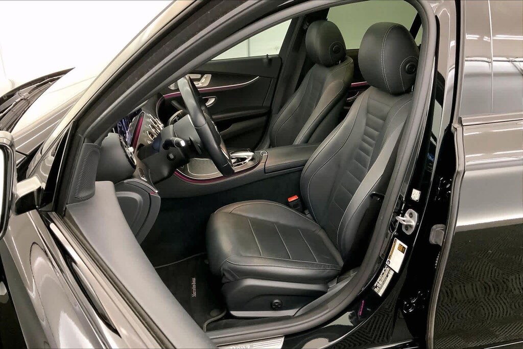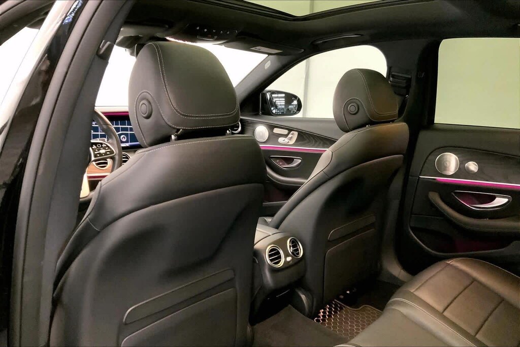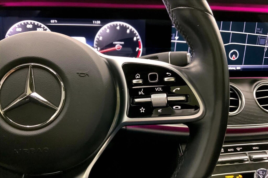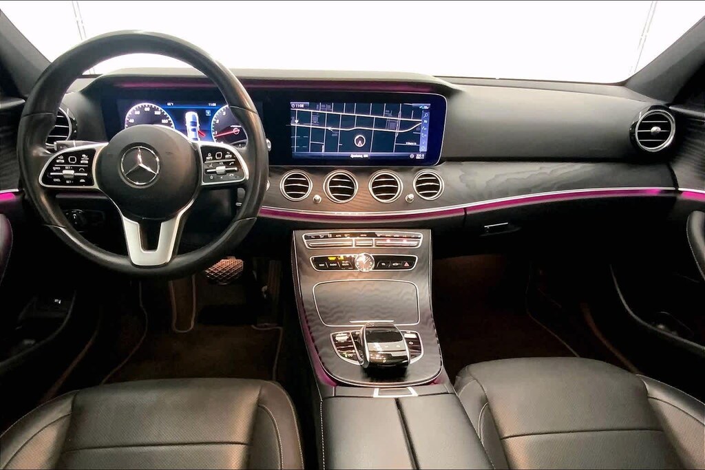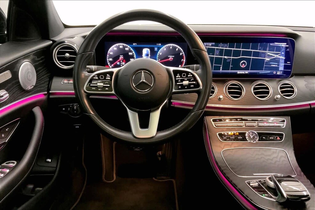 Obsidian Black Metallic 2019 Mercedes-Benz E-Class E 300 4MATICî 4MATICî 9-Speed Automatic I4 4MATICî, 18 5-Spoke Wheels, 4-Way Lumbar Support, 4-Wheel Disc Brakes, 8 Speakers, ABS brakes, Air Conditioning, Alloy wheels, AM/FM radio, Android Autoî, Anti-whiplash front head restraints, Apple CarPlayî, Apple CarPlayî/Android Autoî, Auto tilt-away steering wheel, Auto-dimming door mirrors, Auto-dimming Rear-View mirror, Automatic temperature control, Brake assist, Bumpers: body-color, Burl Walnut Wood Trim, Delay-off headlights, Driver door bin, Driver vanity mirror, Dual front impact airbags, Dual front side impact airbags, Electronic Stability Control, Emergency communication system: Mercedes me connect, Exterior Parking Camera Rear, Four wheel independent suspension, Front anti-roll bar, Front Bucket Seats, Front Center Armrest, Front dual zone A/C, Front reading lights, Fully automatic headlights, Garage door transmitter: Homelink, Genuine wood dashboard insert, Genuine wood door panel insert, HD Radio w/SIRIUS Satellite & Real-Time Traffic, Head restraints memory, Heated door mirrors, Illuminated entry, Knee airbag, Leather Shift Knob, Low tire pressure warning, MB-Tex Upholstery, Memory seat, Navigation system: COMANDî, Occupant sensing airbag, Outside temperature display, Overhead airbag, Overhead console, Panic alarm, Passenger door bin, Passenger vanity mirror, Power adjustable front head restraints, Power adjustable rear head restraints, Power door mirrors, Power driver seat, Power Front Seats, Power moonroof, Power passenger seat, Power steering, Power windows, Premium audio system: COMANDî, Radio data system, Radio: COMANDî Navigation, Rain sensing wipers, Rear anti-roll bar, Rear fog lights, Rear reading lights, Rear seat center armrest, Rear window defroster, Remote keyless entry, Security system, Speed control, Speed-sensing steering, Split folding rear seat, Sport Package, Steering wheel memory, Steering wheel mounted audio controls, Tachometer, Telescoping steering wheel, Tilt steering wheel, Traction control, Trip computer, Turn signal indicator mirrors, Variably intermittent wipers, Weather band radio, 4MATICî.