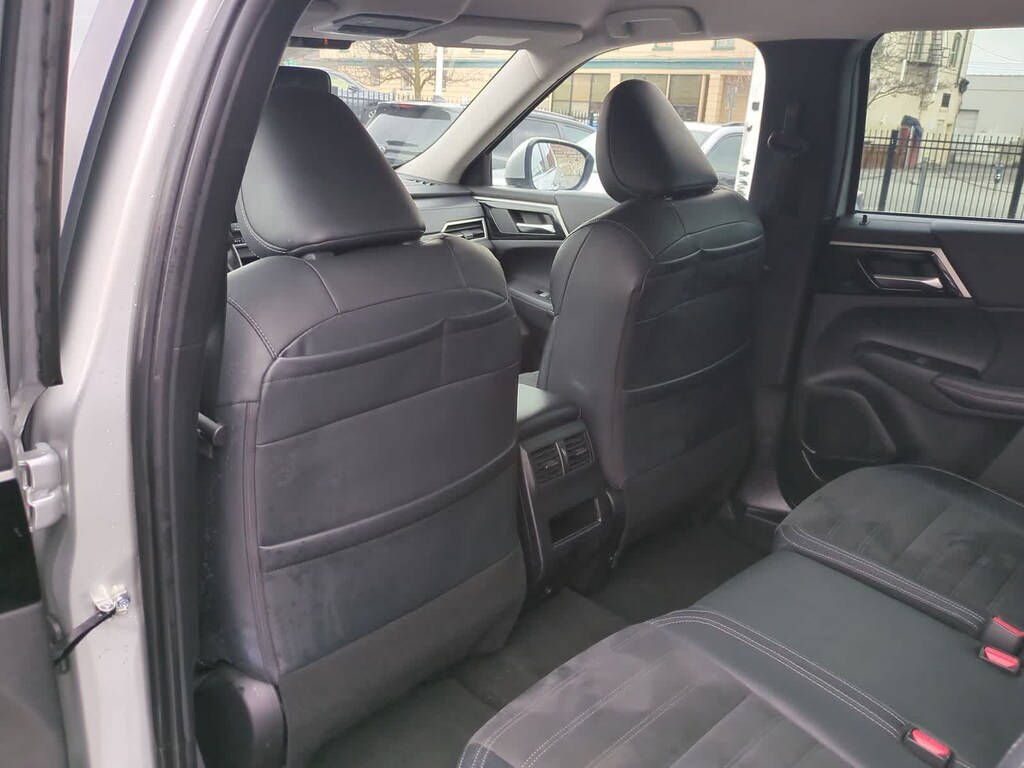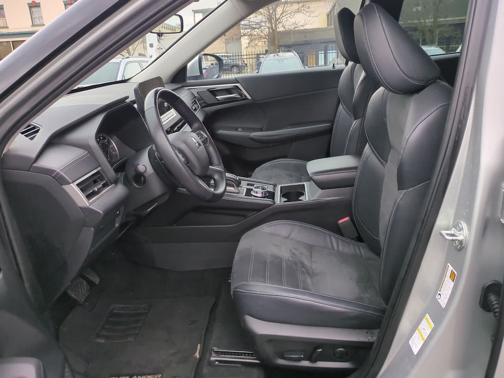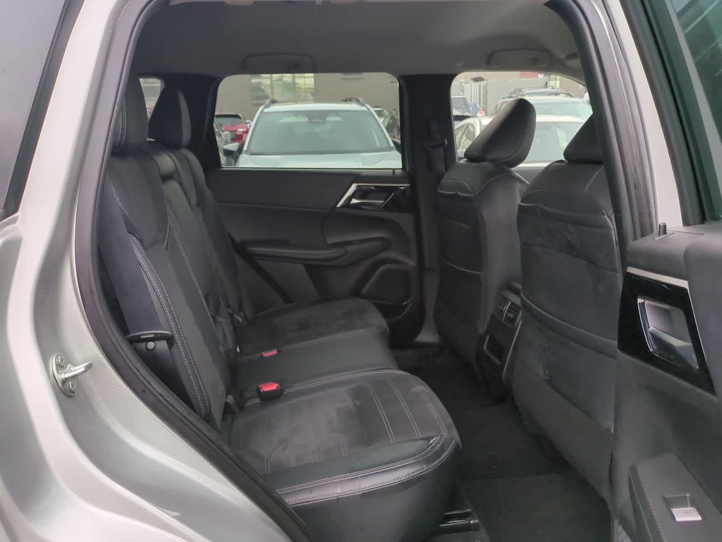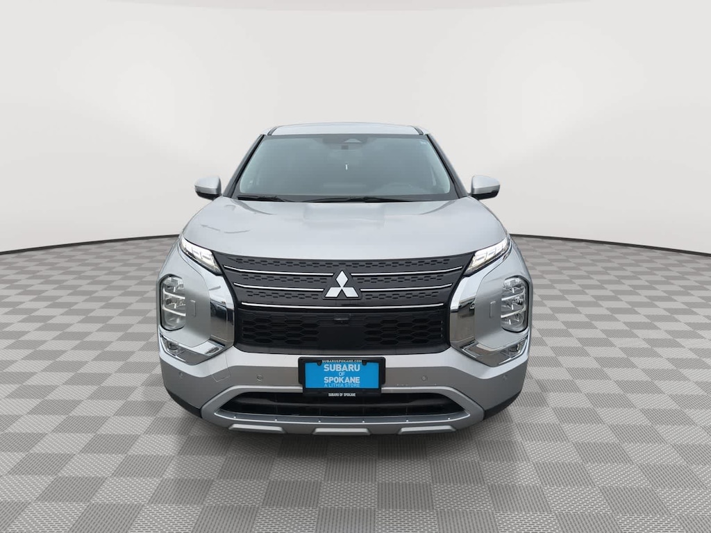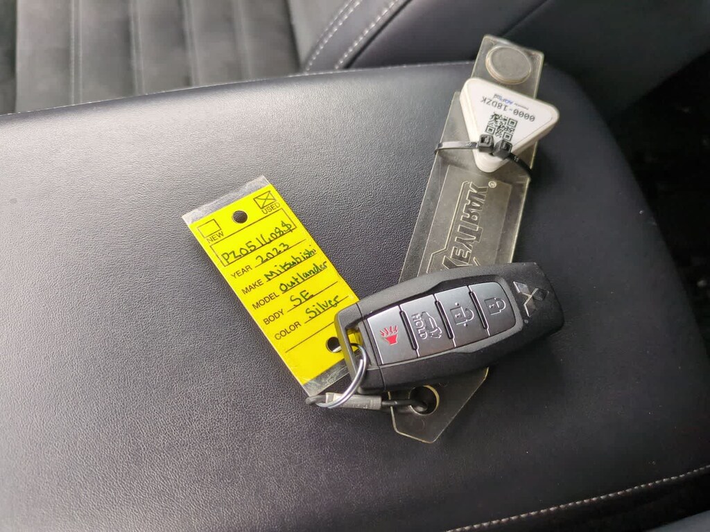 CARFAX One-Owner. Alloy Silver Metallic 2023 Mitsubishi Outlander SE 4WD CVT 2.5L 4-Cylinder DOHC 4WD, 3rd row seats: split-bench, 4-Wheel Disc Brakes, 5.694 Axle Ratio, 6 Speakers, ABS brakes, Air Conditioning, Alloy wheels, AM/FM radio: SiriusXM, Android Auto & Apple CarPlay, Auto High-beam Headlights, Automatic temperature control, Brake assist, Bumpers: body-color, Driver door bin, Driver vanity mirror, Dual front impact airbags, Dual front side impact airbags, Electronic Stability Control, Emergency communication system: Mitsubishi Connect w/ 24-month trial, Exterior Parking Camera Rear, Four wheel independent suspension, Front anti-roll bar, Front Bucket Seats, Front Center Armrest w/Storage, Front dual zone A/C, Front fog lights, Front reading lights, Fully automatic headlights, Headlight cleaning, Heated door mirrors, Heated Front Bucket Seats, Heated front seats, Illuminated entry, Knee airbag, Leather Shift Knob, Leather steering wheel, Low tire pressure warning, Navigation System, Occupant sensing airbag, Outside temperature display, Overhead airbag, Overhead console, Panic alarm, Passenger door bin, Passenger vanity mirror, Power door mirrors, Power driver seat, Power Liftgate, Power steering, Power windows, Radio data system, Radio: AM/FM 9.0 Navigation w/Smartphone Link, Rain sensing wipers, Rear anti-roll bar, Rear seat center armrest, Rear side impact airbag, Rear window defroster, Rear window wiper, Reclining 3rd row seat, Remote keyless entry, Security system, Speed control, Speed-Sensitive Wipers, Split folding rear seat, Spoiler, Steering wheel mounted audio controls, Synthetic Leather Seat Trim, Tachometer, Telescoping steering wheel, Tilt steering wheel, Traction control, Trip computer, Turn signal indicator mirrors, Variably intermittent wipers, Wheels: 20 Two-Tone Alloy, 4WD.