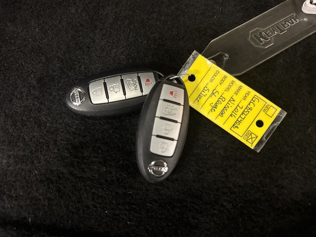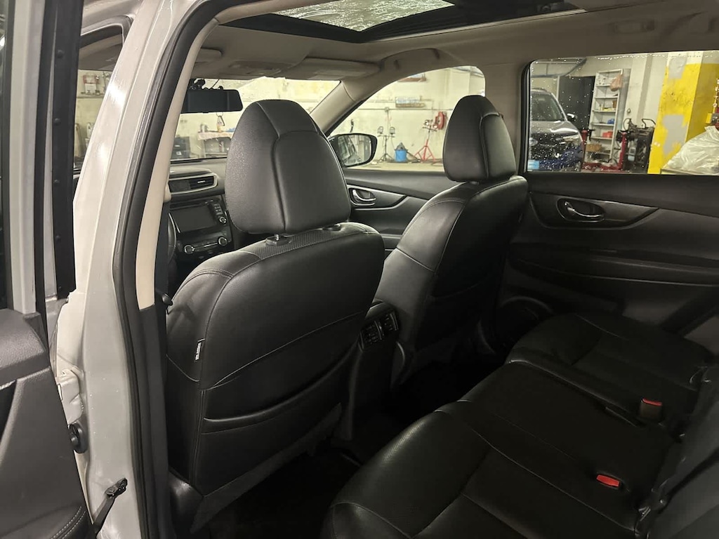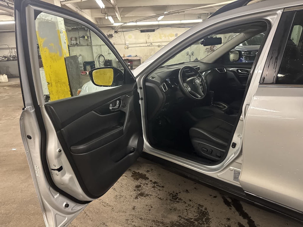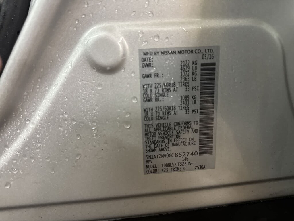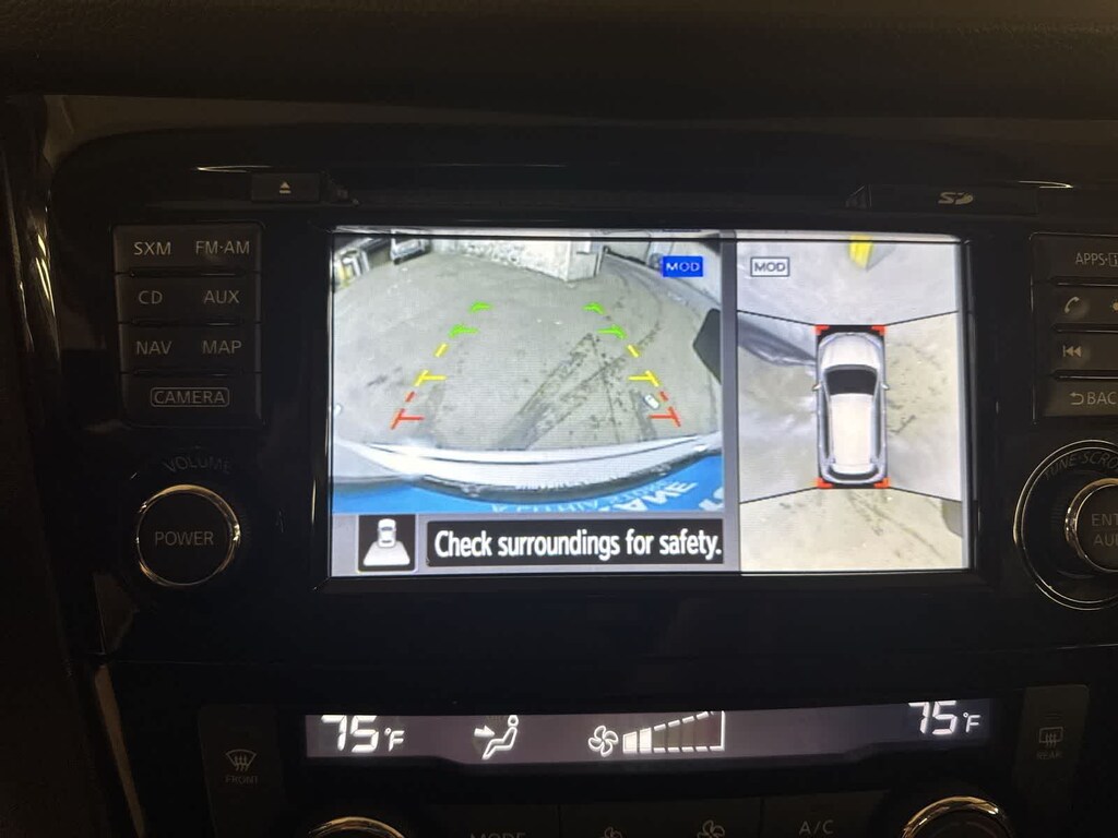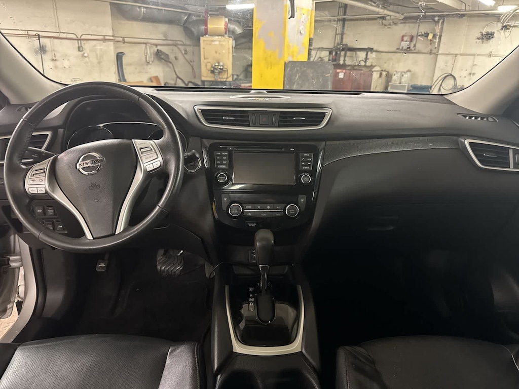 Brilliant Silver 2016 Nissan Rogue SL AWD CVT with Xtronic 2.5L I4 DOHC 16V AWD, 18 Alloy Wheels, 4-Wheel Disc Brakes, 5.694 Axle Ratio, 9 Speakers, ABS brakes, Air Conditioning, Alloy wheels, AM/FM radio: SiriusXM, Anti-whiplash front head restraints, Automatic temperature control, Blind Spot Warning, Brake assist, Bumpers: body-color, CD player, Delay-off headlights, Driver door bin, Driver vanity mirror, Dual front impact airbags, Dual front side impact airbags, Electronic Stability Control, Emergency communication system, Floor Mats & 2-PC Cargo Area Protector, Forward Emergency Braking, Four wheel independent suspension, Front anti-roll bar, Front Bucket Seats, Front Center Armrest w/Storage, Front dual zone A/C, Front fog lights, Front reading lights, Fully automatic headlights, Heated door mirrors, Heated Front Bucket Seats, Heated front seats, Illuminated entry, Leather Shift Knob, Leather-Appointed Seat Trim, LED Headlights, Low tire pressure warning, Navigation System, Occupant sensing airbag, Outside temperature display, Overhead airbag, Overhead console, Panic alarm, Passenger door bin, Passenger vanity mirror, Power door mirrors, Power driver seat, Power Liftgate, Power Panoramic Moonroof, Power steering, Power windows, Radio data system, Radio: AM/FM/CD/RDS/AUX NissanConnect w/Navigation, Rear anti-roll bar, Rear seat center armrest, Rear window defroster, Rear window wiper, Remote keyless entry, Retractable Cargo Cover,