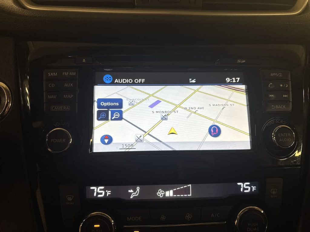 Inside, the Rogue SL features leather appointed seating, dual zone climate control, a power driver seat, a leather shift knob, and intuitive cabin ergonomics. Technology highlights include NissanConnect Navigation, AM/FM/CD audio, SiriusXM capability, Bluetooth integration (system dependent), 9 speakers, steeringwheelmounted controls, and a rearview camera.