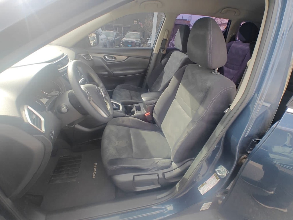 Arctic Blue Metallic 2016 Nissan Rogue S AWD CVT with Xtronic 2.5L I4 DOHC 16V AWD, 4 Speakers, 4-Wheel Disc Brakes, 5.694 Axle Ratio, ABS brakes, Air Conditioning, AM/FM radio: SiriusXM, Anti-whiplash front head restraints, Brake assist, Bumpers: body-color, CD player, Chrome Rear Bumper Protector, Cloth Seat Trim, Driver door bin, Driver vanity mirror, Dual front impact airbags, Dual front side impact airbags, Electronic Stability Control, Floor Mats & 2-PC Cargo Area Protector, Four wheel independent suspension, Front anti-roll bar, Front Bucket Seats, Front Center Armrest w/Storage, Front reading lights, Illuminated entry, Low tire pressure warning, Occupant sensing airbag, Outside temperature display, Overhead airbag, Overhead console, Panic alarm, Passenger door bin, Passenger vanity mirror, Power door mirrors, Power steering, Power windows, Radio data system, Radio: AM/FM/CD/RDS/AUX NissanConnect, Rear anti-roll bar, Rear seat center armrest, Rear window defroster, Rear window wiper, Remote keyless entry, Security system, Speed control, Speed-sensing steering, Splash Guards, Split folding rear seat, Spoiler, Steering wheel mounted audio controls, Tachometer, Telescoping steering wheel, Tilt steering wheel, Traction control, Trip computer, Variably intermittent wipers, Wheels: 17 Steel w/Full Covers, AWD.