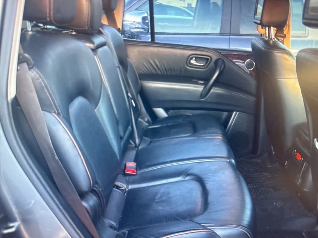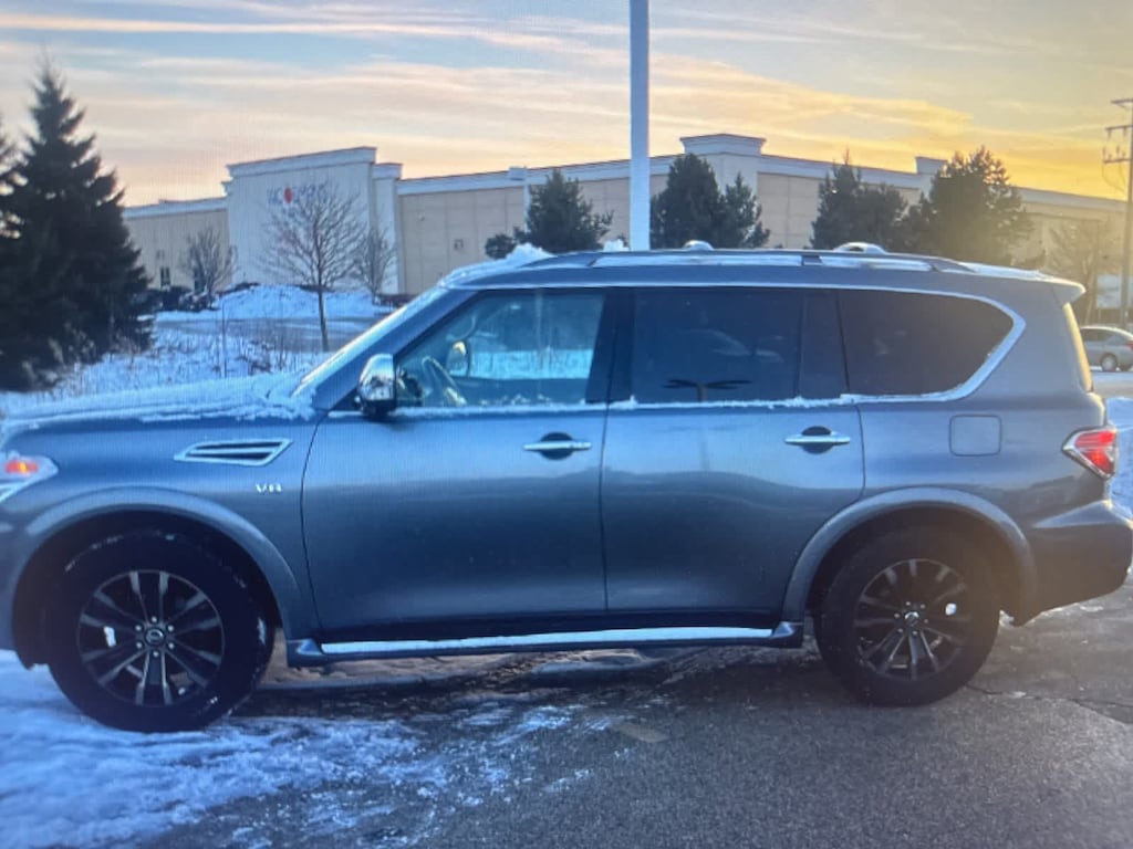 CARFAX One-Owner. Clean CARFAX. Gun Metallic 2019 Nissan Armada Platinum 4WD 7-Speed Automatic 5.6L V8 DOHC 32V Endurance 4WD, 13 Speakers, 2.937 Axle Ratio, 2nd & 3rd Row Carpeted Mats, 3rd row seats: split-bench, 4-Wheel Disc Brakes, A/V remote, ABS brakes, Air Conditioning, Alloy wheels, AM/FM radio: SiriusXM, Anti-whiplash front head restraints, Auto tilt-away steering wheel, Auto-dimming door mirrors, Auto-dimming Rear-View mirror, Auto-leveling suspension, Automatic temperature control, Brake assist, Bumpers: body-color, CD player, Delay-off headlights, Driver door bin, Driver vanity mirror, Dual front impact airbags, Dual front side impact airbags, Electronic Stability Control, Emergency communication system: NissanConnect Services, Four wheel independent suspension, Front anti-roll bar, Front Bucket Seats, Front Center Armrest, Front dual zone A/C, Front fog lights, Front reading lights, Fully automatic headlights, Garage door transmitter: HomeLink, Headphones, Heated & Cooled Front Bucket Seats w/Driver Memory, Heated door mirrors, Heated front seats, Heated rear seats, Heated steering wheel, Illuminated entry, Leather Shift Knob, Leather-Appointed Seat Trim, Low tire pressure warning, Memory seat, Navigation System, Occupant sensing airbag, Outside temperature display, Overhead airbag, Overhead console, Panic alarm, Passenger door bin, Passenger vanity mirror, Power door mirrors, Power driver seat, Power Liftgate, Powe