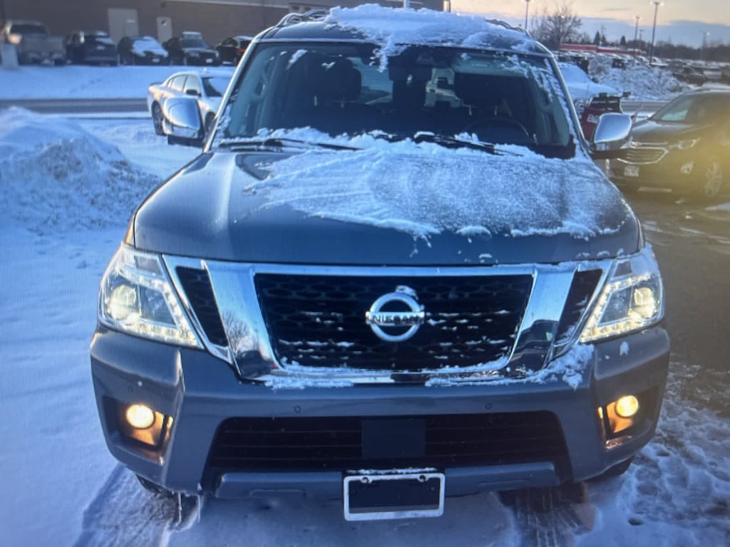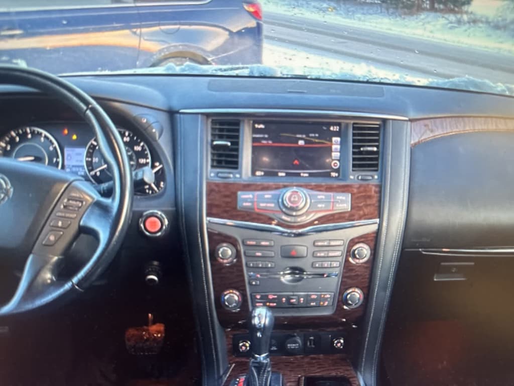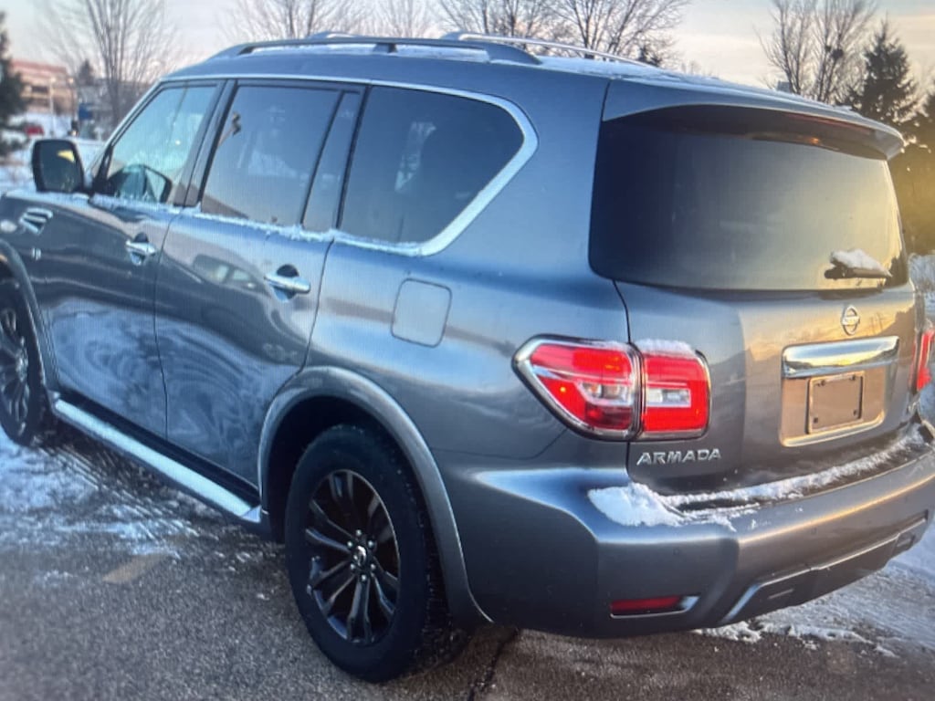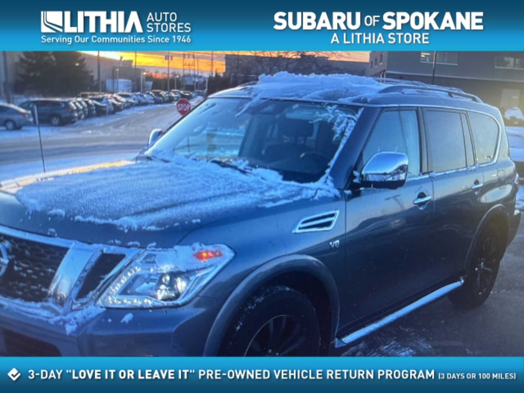 Clean CARFAX, CARFAX OneOwner 2019 Nissan Armada Platinum 4WD in Gun Metallic. This luxury fullsize SUV offers powerful V8 performance, threerow seating, and premium comfort features ideal for families and drivers across Spokane, Spokane Valley, Cheney, Airway Heights, and North Idaho. With 4WD, heated and cooled seating, advanced safety systems, and a refined cabin, the Armada Platinum is ready for winter weather, long road trips, and yearround Inland Northwest driving.