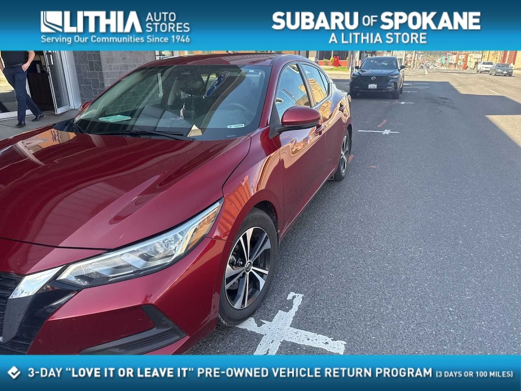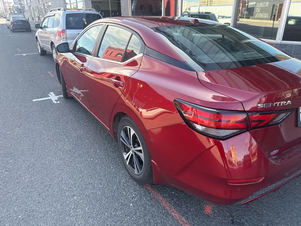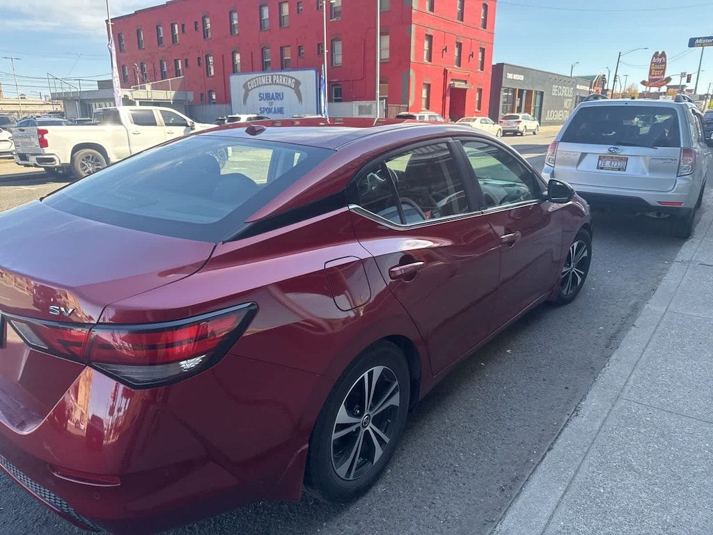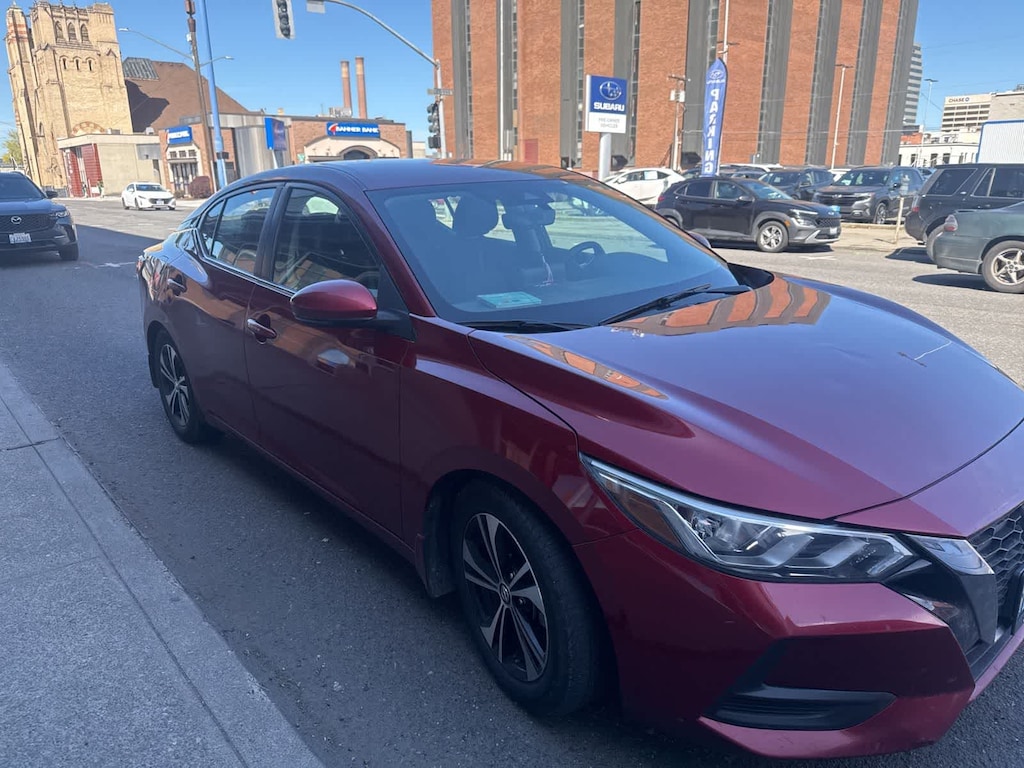Clean CARFAX. Scarlet Ember Tintcoat 2020 Nissan Sentra SV FWD CVT with Xtronic 2.0L DOHC CVT with Xtronic, Charcoal Cloth, 16 Alloy Wheels, 4-Wheel Disc Brakes, 6 Speakers, 6-Speaker Audio System, ABS brakes, Air Conditioning, Alloy wheels, AM/FM radio: SiriusXM, Auto High-beam Headlights, Automatic temperature control, Blind Spot Warning, Body Colored Splash Guards (4-Piece), Brake assist, Bumpers: body-color, Carpeted Floor Mats w/Trunk Mat, Delay-off headlights, Driver door bin, Driver vanity mirror, Dual front impact airbags, Dual front side impact airbags, Electronic Stability Control, Electronics Package, External Ground Lighting (PIO) (DISC), Four wheel independent suspension, Frameless EC Mirror w/Universal Remote, Front anti-roll bar, Front Bucket Seats, Front Center Armrest, Front dual zone A/C, Front reading lights, Fully automatic headlights, Heated door mirrors, Hide-A-Way Trunk Net, Illuminated entry, Knee airbag, Low tire pressure warning, Map Pocket Lighting Delete, NissanConnect featuring Apple CarPlay and Android Auto, Occupant sensing airbag, Outside temperature display, Overhead airbag, Overhead console, Panic alarm, Passenger door bin, Passenger vanity mirror, Power door mirrors, Power steering, Power windows, Radio data system, Radio: AM/FM w/RDS/MP3/Aux-In, Rear anti-roll bar, Rear Parking Sensors, Rear seat center armrest, Rear side impact airbag, Rear window defroster, Remote keyless entry, Security system, Speed control, Speed-sensing steering, Split folding rear seat, Steering wheel mounted audio controls, Tachometer, Telescoping steering wheel, Tilt steering wheel, Traction control, Trip computer, Trunk Package, Turn signal indicator mirrors, Upgraded Cloth Seat Trim, Variably intermittent wipers, CVT with Xtronic, Charcoal Cloth.