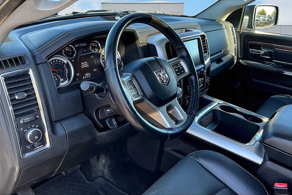 Powerful, refined, and ready for whatever the road??or trail??throws your way. This 2015 Ram 1500 Laramie 4WD brings legendary HEMI V8 strength and a smooth 8-speed automatic transmission for confident towing and highway comfort alike. The Laramie trim delivers premium touches throughout, from its quiet, well-appointed cabin to smart tech and driver conveniences like Keyless Enter-N-Go, Rain-Sensing Wipers, and Auto High Beams.