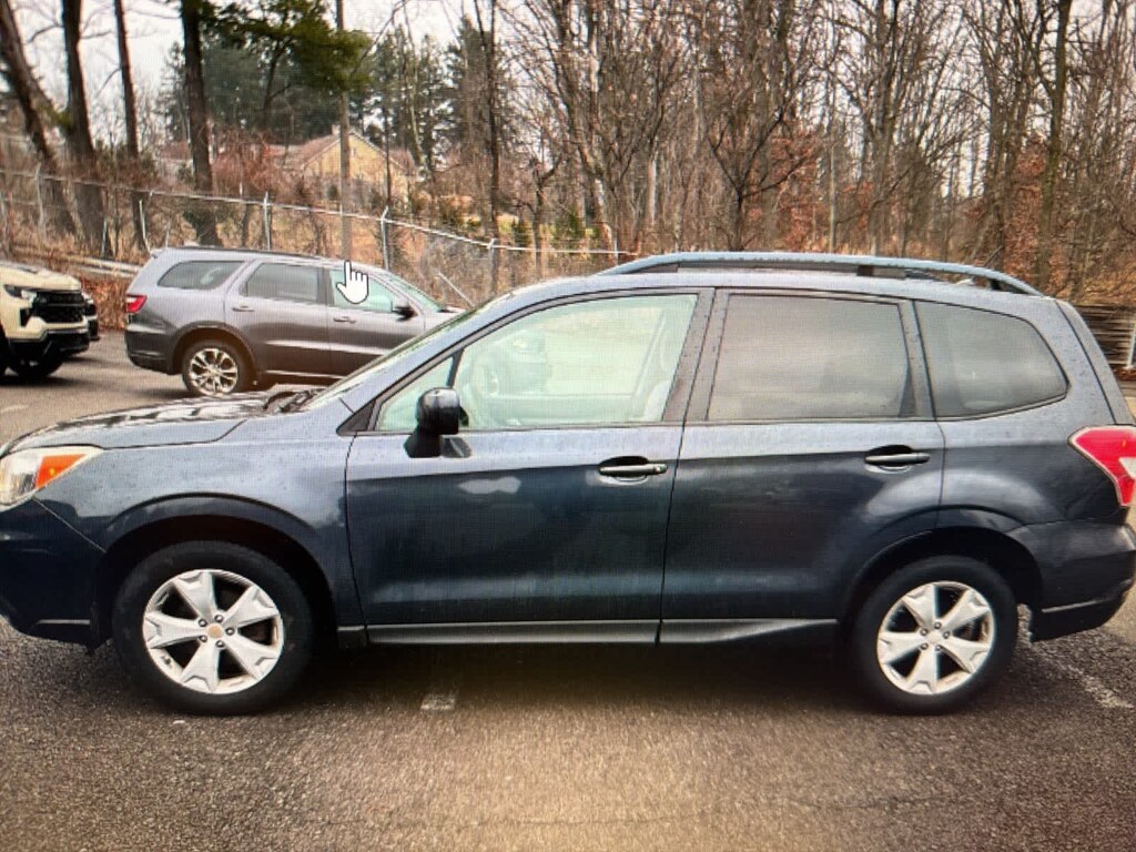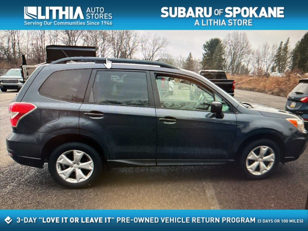 Dark Gray Metallic 2014 Subaru Forester 2.5i Premium AWD Lineartronic CVT 2.5L 4-Cylinder DOHC 16V VVT 17 x 7.0J Aluminum Alloy Wheels, 3.70 Axle Ratio, 4-Wheel Disc Brakes, 6 Speakers, ABS brakes, Air Conditioning, All-Weather Package, Alloy wheels, AM/FM radio, Auto-Dimming Mirror w/Compass & HomeLink, Brake assist, Bumpers: body-color, CD player, Cloth Upholstery, Driver door bin, Driver vanity mirror, Drivers Side Mirror, Dual front impact airbags, Dual front side impact airbags, Electronic Stability Control, Ext. Auto Dimming Mirror w/Approach Lighting, Exterior Mirror Hardware Kit, Exterior Parking Camera Rear, Four wheel independent suspension, Front anti-roll bar, Front Bucket Seats, Front Center Armrest, Front reading lights, Heated door mirrors, Heated Exterior Mirrors, Heated Front Seats, Heated front seats, Illuminated entry, Knee airbag, Low tire pressure warning, Luggage Compartment Cover, Occupant sensing airbag, Outside temperature display, Overhead airbag, Overhead console, Panic alarm, Passenger door bin, Passenger vanity mirror, Passengers Side Mirror, Popular Package #2, Power door mirrors, Power driver seat, Power moonroof, Power steering, Power windows, Radio data system, Radio: AM/FM Stereo w/HD Radio & Single CD Player, Rear anti-roll bar, Rear Bumper Cover, Rear seat center armrest, Rear window defroster, Rear window wiper, Remote keyless entry, Roof rack: rails only, Seat Back Cargo Net, Security system, Speed control, Split folding rear seat, Steering wheel mounted audio controls, Tachometer, Telescoping steering wheel, Tilt steering wheel, Traction control, Trip computer, Variably intermittent wipers, Windshield Wiper De-Icer.