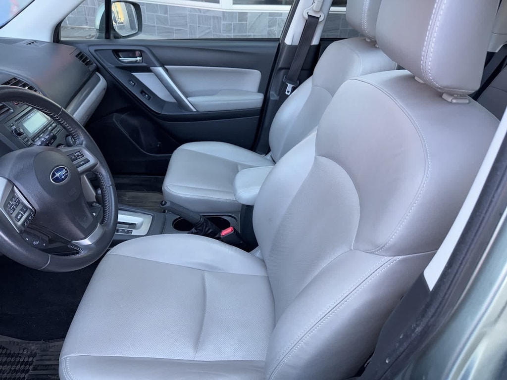 Clean CARFAX. Jasmine Green Metallic 2015 Subaru Forester 2.5i Limited AWD Lineartronic CVT 2.5L 4-Cylinder DOHC 16V VVT 17 Alloy Wheels, 3.70 Axle Ratio, 4-Wheel Disc Brakes, 6 Speakers, ABS brakes, Air Conditioning, All Weather Floor Mats, Alloy wheels, AM/FM radio, Automatic temperature control, Brake assist, Bumpers: body-color, CD player, Driver door bin, Driver vanity mirror, Dual front impact airbags, Dual front side impact airbags, Electronic Stability Control, Exterior Parking Camera Rear, Four wheel independent suspension, Front anti-roll bar, Front Bucket Seats, Front Center Armrest, Front fog lights, Front reading lights, Fully automatic headlights, harman/kardon 440W Amp & Speaker System, Heated door mirrors, Heated Front Bucket Seats, Heated front seats, Illuminated entry, Knee airbag, Leather Shift Knob, Low tire pressure warning, Occupant sensing airbag, Outside temperature display, Overhead airbag, Overhead console, Panic alarm, Passenger door bin, Passenger vanity mirror, Perforated Leather-Trimmed Upholstery, Power door mirrors, Power driver seat, Power Liftgate, Power moonroof, Power steering, Power windows, Radio data system, Radio: AM/FM Stereo w/HD & Single CD Player, Rear anti-roll bar, Rear Bumper Cover, Rear Seat Back Protector, Rear seat center armrest, Rear window defroster, Rear window wiper, Remote keyless entry, Roof rack: rails only, Seat Back Cargo Net, Security system, Speed control, Splash Guard Kit, Split folding rear seat, Spoiler, Steering wheel mounted audio controls, Tachometer, Telescoping steering wheel, Tilt steering wheel, Traction control, Trip computer, Variably intermittent wipers, Vertical Cargo Net.