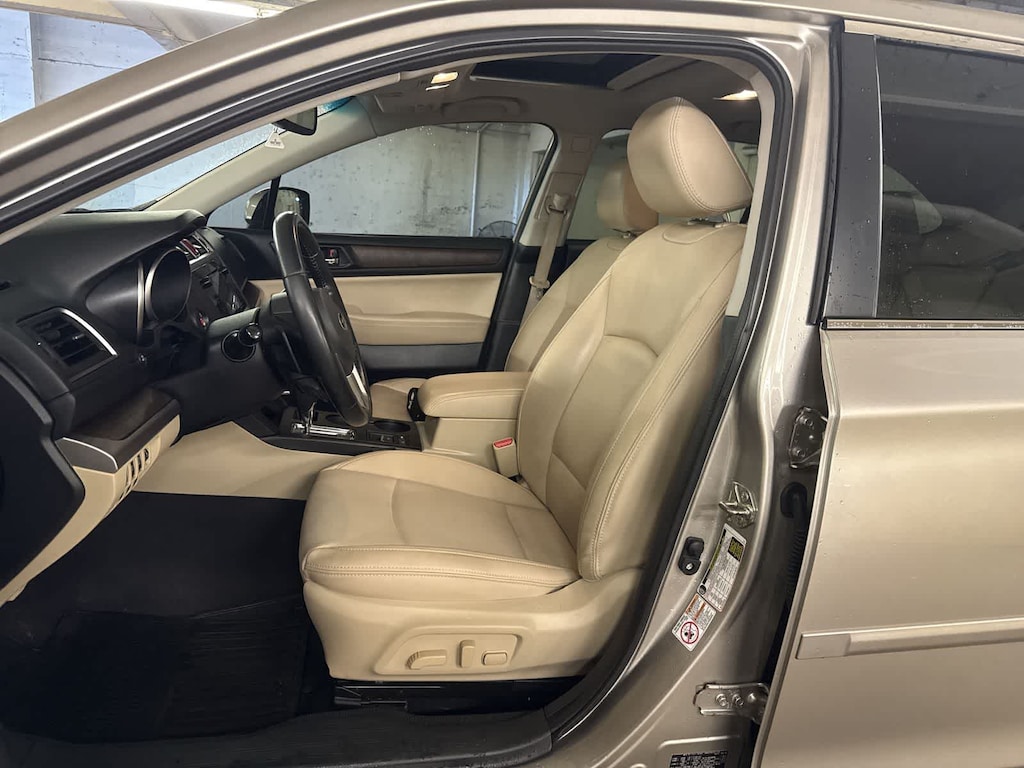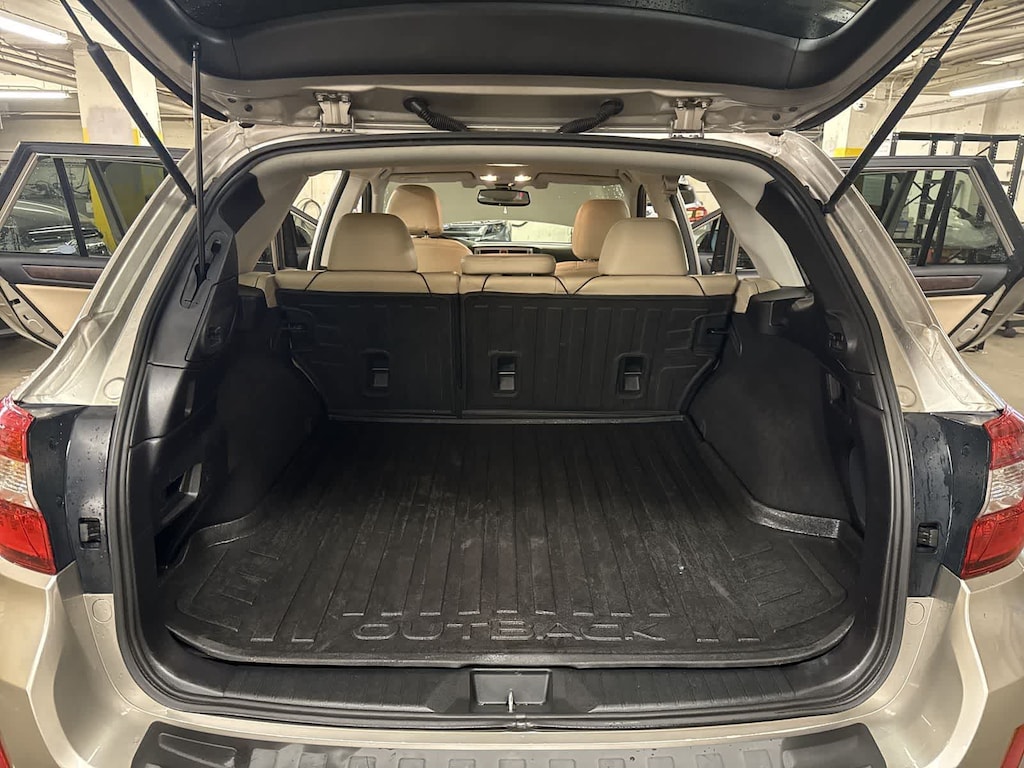 Tungsten Metallic 2016 Subaru Outback 2.5i Limited AWD CVT Lineartronic 2.5L 4-Cylinder DOHC 16V 12 Speakers, 4-Wheel Disc Brakes, 4.111 Axle Ratio, ABS brakes, Adaptive Cruise Control, Aha, Air Conditioning, All Weather Floor Mats, Alloy wheels, AM/FM radio: SiriusXM, Anti-whiplash front head restraints, Auto-Dimming Rear View Compass Mirror w/Homelink, Automatic temperature control, Brake assist, Bumper Cover (Rear), Bumpers: body-color, CD player, Driver door bin, Driver vanity mirror, Dual front impact airbags, Dual front side impact airbags, Electronic Stability Control, Emergency communication system, Exterior Auto Dimming Mirror For BSD, Exterior Parking Camera Rear, Four wheel independent suspension, Front anti-roll bar, Front Bucket Seats, Front Center Armrest w/Storage, Front dual zone A/C, Front fog lights, Front reading lights, Fully automatic headlights, harman/kardon Surround Sound Speaker System, harman/kardonî Speakers, Heated door mirrors, Heated front seats, Heated rear seats, Heated Reclining Front Bucket Seats, Illuminated Engine Start/Stop Switch, Illuminated entry, Lane Departure Warning System, Leather Shift Knob, Low tire pressure warning, Memory seat, Moonroof Package & Keyless Access & Navi & EyeSight, Navigation System, Occupant sensing airbag, Outside temperature display, Overhead airbag, Overhead console, Panic alarm, Passenger door bin, Passenger vanity mirror, Perforated Leather-Trimmed Upholstery, Pin Code Access, Popular Package #5, Power door mirrors, Power driver seat, Power Liftgate, Power Moonroof Package, Power passenger seat, Power steering, Power windows, Pre-Collision System, Radio data system, Radio: Subaru Starlink 7.0 Multimedia Nav System, Radio: Subaru Starlink 7.0 Multimedia Plus System, Rear anti-roll bar, Rear Seat Back Protector, Rear seat center armrest, Rear window defroster, Rear window wiper, Remote keyless entry, Remote Transmitter w/Removable Key, Roof rack, Security system, Smartphone Integration, Speed control, Speed-sensing steering, Splash Guards, Split folding rear seat, Spoiler, Steering Responsive Fog Lights (SRF), Steering wheel mounted audio controls, Steering-Wheel Paddle-Shift Control Switches, Tachometer, Telescoping steering wheel, Tilt steering wheel, Traction control, Trip computer, Tungsten Metallic Body Side Molding, Turn signal indicator mirrors, Variably intermittent wipers, Vehicle Information Display, Wheels: 18 x 7.0 Aluminum Alloy w/Machine Finish.
