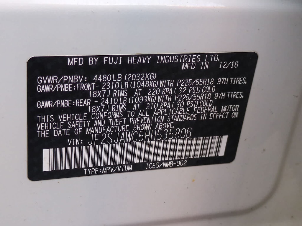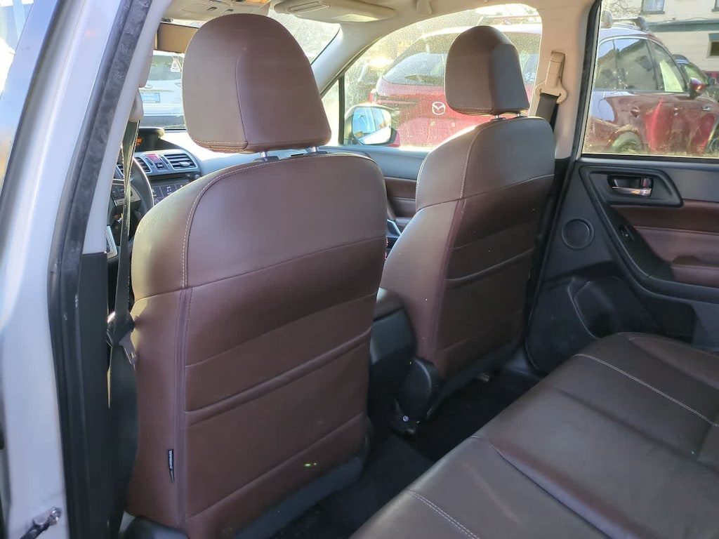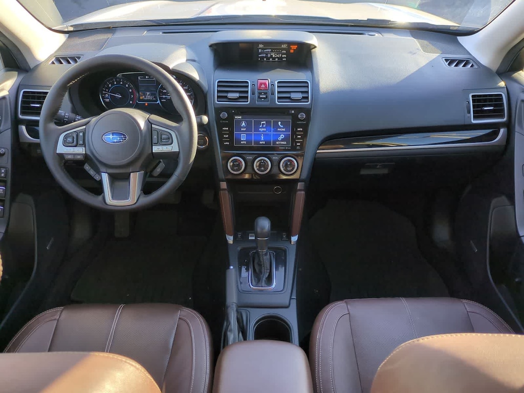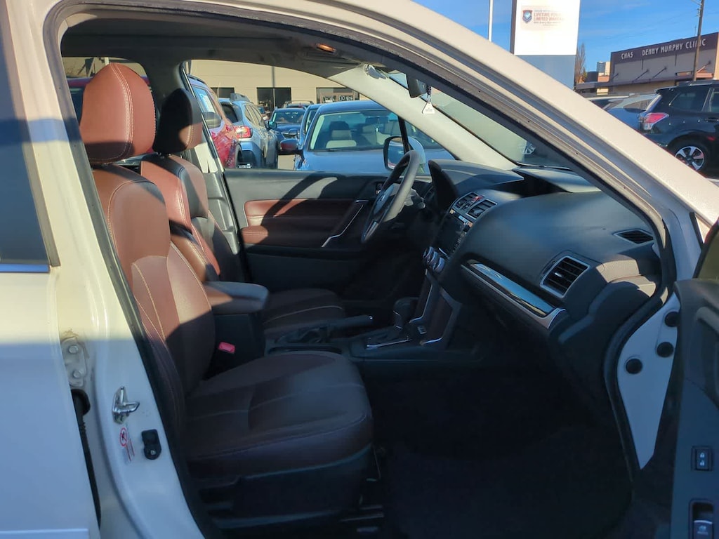 Clean CARFAX. Crystal White Pearl 2017 Subaru Forester 2.5i Touring AWD Lineartronic CVT 2.5L 4-Cylinder DOHC 16V VVT 18 Alloy Wheels, 3.70 Axle Ratio, 4-Wheel Disc Brakes, 8 Speakers, ABS brakes, Aero Cross Bar Set, Air Conditioning, All-Weather Floor Mats, Alloy wheels, AM/FM radio: SiriusXM, Auto-Dimming Mirror w/Compass & HomeLink, Automatic temperature control, Brake assist, Bumpers: body-color, Cargo Cover - Power Rear Gate, CD player, Crystal White Pearl Body Side Molding, Driver door bin, Driver vanity mirror, Dual front impact airbags, Dual front side impact airbags, Electronic Stability Control, Emergency communication system: STARLINK, Exterior Parking Camera Rear, EyeSight & Navigation System w/Saddle Brown Int, EyeSight System, Four wheel independent suspension, Front anti-roll bar, Front Bucket Seats, Front Center Armrest, Front dual zone A/C, Front fog lights, Front reading lights, Fully automatic headlights, harman/kardon 440W Amp & Speaker System, harman/kardonî Speakers, Heated door mirrors, Heated Front Bucket Seats, Heated front seats, Heated steering wheel, High Beam Assist (HBA), Illuminated entry, Knee airbag, Leather Shift Knob, Low tire pressure warning, Memory seat, Navigation System, Occupant sensing airbag, Outside temperature display, Overhead airbag, Overhead console, Panic alarm, Passenger door bin, Passenger vanity mirror, Perforated Leather-Trimmed Upholstery, Power door mirrors, Power driver seat, Power Liftgate, Power moonroof, Power steering, Power windows, Protection Package #2, Radio data system, Radio: Subaru Starlink 7.0 Multimedia Nav System, Radio: Subaru Starlink 7.0 Multimedia Plus System, Rear anti-roll bar, Rear Bumper Cover, Rear seat center armrest, Rear Seatback Protector, Rear window defroster, Rear window wiper, Remote keyless entry, Reverse Automatic Braking System (RAB), Roof rack: rails only, Security system, Speed control, Splash Guards, Split folding rear seat, Spoiler, Steering wheel mounted audio controls, Tachometer, Telescoping steering wheel, Tilt steering wheel, Traction control, Trip computer, Turn signal indicator mirrors, Variably intermittent wipers.