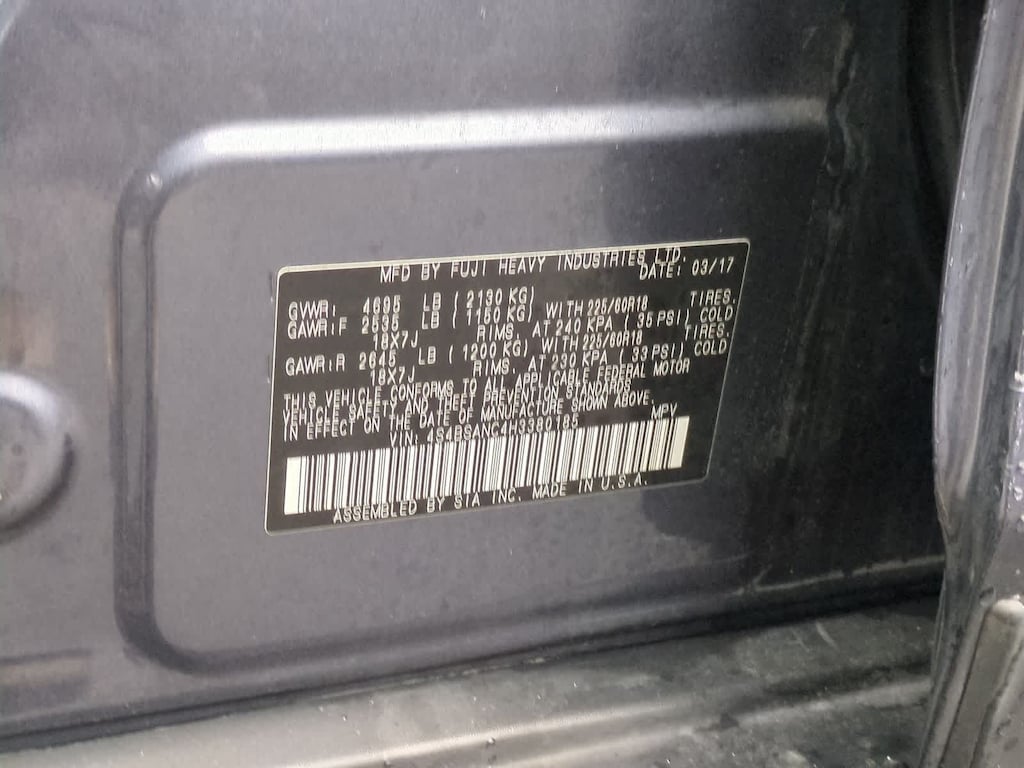 Carbide Gray Metallic 2017 Subaru Outback 2.5i Limited AWD CVT Lineartronic 2.5L 4-Cylinder DOHC 16V 12 Speakers, 4-Wheel Disc Brakes, 4.111 Axle Ratio, ABS brakes, Adaptive Cruise Control, Aha, Air Conditioning, All Weather Floor Mats, Alloy wheels, AM/FM radio: SiriusXM, Anti-whiplash front head restraints, Auto-dimming Rear-View mirror, Automatic temperature control, Brake assist, Bumpers: body-color, Carbide Gray Body Side Molding, CD player, Compass, Driver door bin, Driver vanity mirror, Dual front impact airbags, Dual front side impact airbags, Electronic Stability Control, Emergency communication system, Exterior Auto Dimming Mirror For BSD, Exterior Parking Camera Rear, Eyesight & Navigation & HBA & RAB & HID Lights, Four wheel independent suspension, Front anti-roll bar, Front Bucket Seats, Front Center Armrest w/Storage, Front dual zone A/C, Front fog lights, Front reading lights, Fully automatic headlights, Garage door transmitter, harman/kardon Surround Sound Speaker System, harman/kardonî Speakers, Heated door mirrors, Heated front seats, Heated rear seats, Heated Reclining Front Bucket Seats, High Beam Assist, High-Intensity Discharge Headlights, Illuminated entry, Lane Departure Warning System, Leather Shift Knob, Low tire pressure warning, Memory seat, Navigation System, Occupant sensing airbag, Outside temperature display, Overhead airbag, Overhead console, Panic alarm, Passenger door bin, Passenger vanity mirror, Perforated Leather-Trimmed Upholstery, Power door mirrors, Power driver seat, Power Liftgate, Power moonroof, Power passenger seat, Power steering, Power windows, Pre-Collision System, Radio: Subaru Starlink 7.0 Multimedia Nav System, Radio: Subaru Starlink 7.0 Multimedia Plus System, Rear anti-roll bar, Rear seat center armrest, Rear window defroster, Rear window wiper, Remote keyless entry, Reverse Auto Brake, Roof rack, Security system, Smartphone Integration, Speed control, Speed-sensing steering, Splash Guards, Split folding rear seat, Spoiler, Steering wheel mounted audio controls, Steering-Wheel Paddle-Shift Control Switches, Tachometer, Telescoping steering wheel, Tilt steering wheel, Traction control, Trip computer, Turn signal indicator mirrors, Variably intermittent wipers, Vehicle Information Display, Wheels: 18 x 7.0 Aluminum Alloy w/Machine Finish.