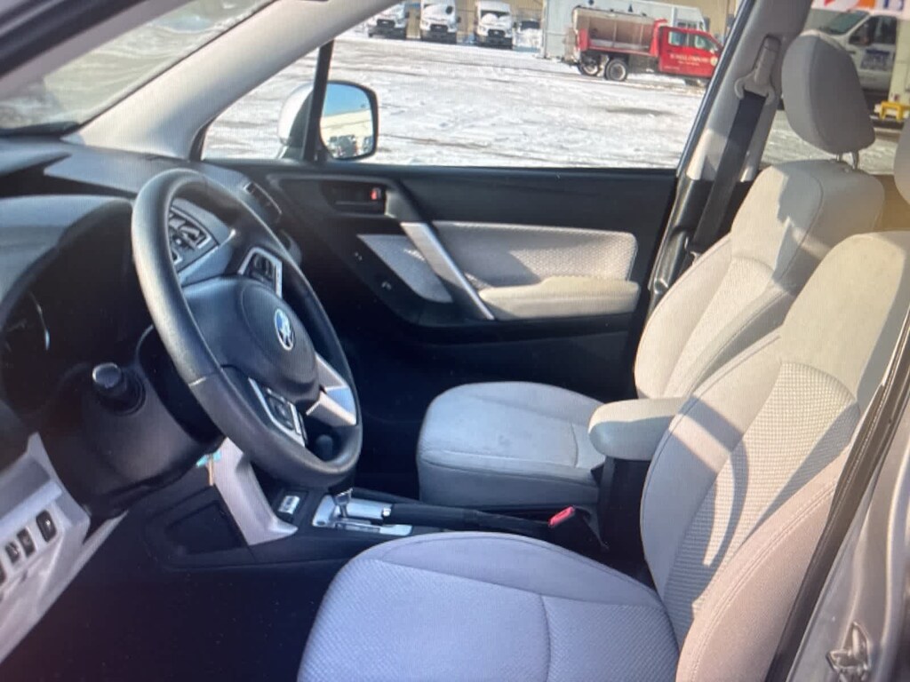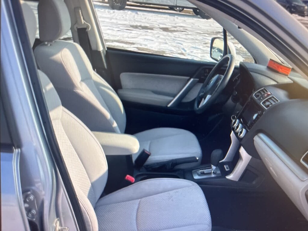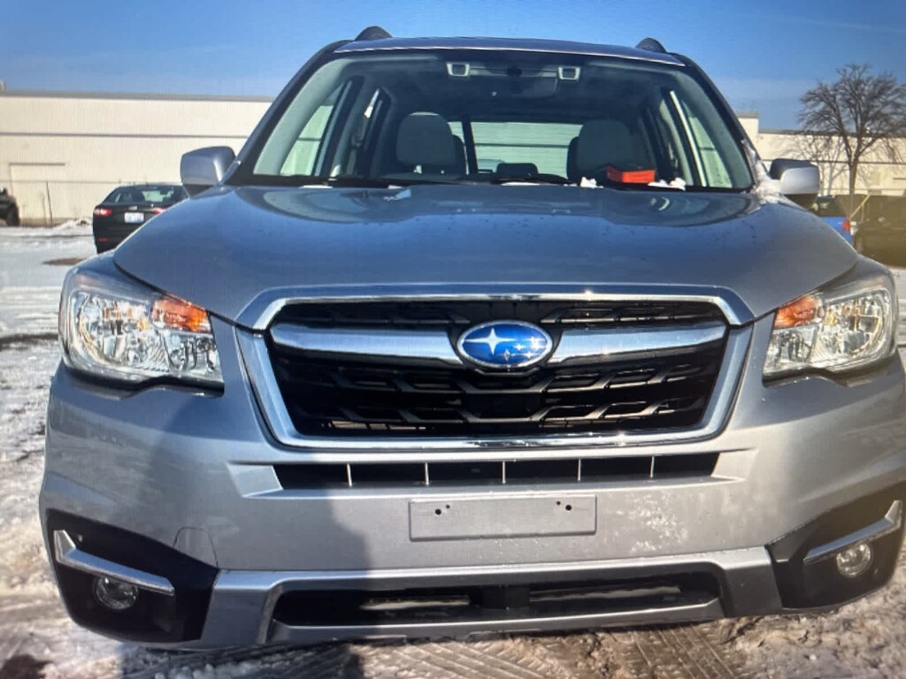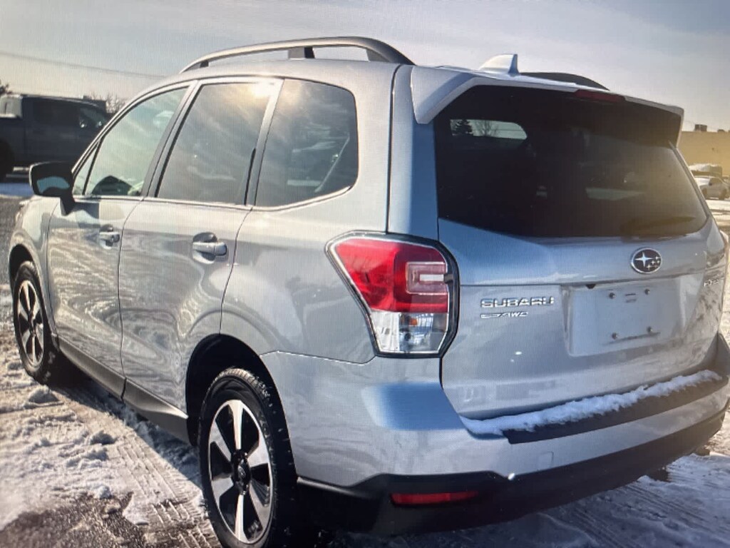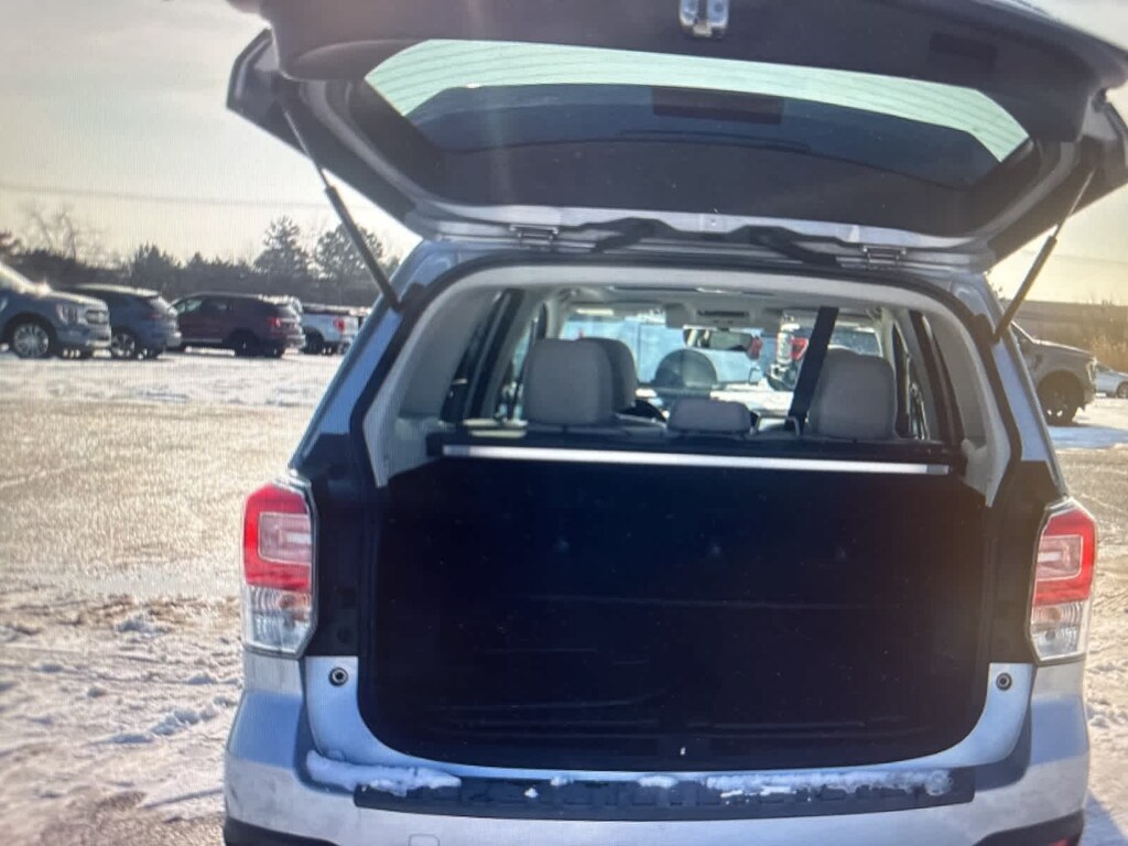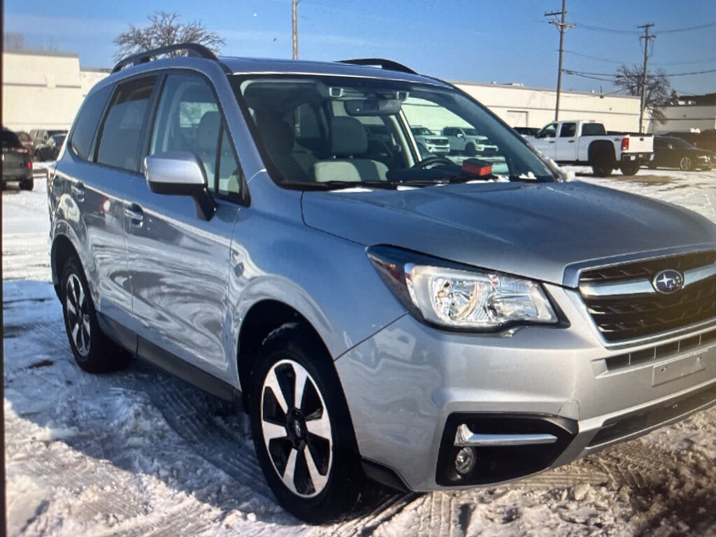 Ice Silver Metallic 2018 Subaru Forester 2.5i Premium AWD Lineartronic CVT 2.5L 4-Cylinder DOHC 16V VVT 4-Wheel Disc Brakes, 6 Speakers, ABS brakes, Air Conditioning, Alloy wheels, AM/FM radio: SiriusXM, Automatic temperature control, Brake assist, Bumpers: body-color, Cargo Tray, CD player, Driver door bin, Driver vanity mirror, Dual front impact airbags, Dual front side impact airbags, Electronic Stability Control, Emergency communication system: STARLINK, Exterior Parking Camera Rear, Four wheel independent suspension, Front anti-roll bar, Front Bucket Seats, Front Center Armrest, Front reading lights, Illuminated entry, Knee airbag, Low tire pressure warning, Occupant sensing airbag, Outside temperature display, Overhead airbag, Overhead console, Panic alarm, Passenger door bin, Passenger vanity mirror, Power door mirrors, Power driver seat, Power moonroof, Power steering, Power windows, Radio data system, Radio: Subaru Starlink 7.0 Multimedia Plus System, Rear anti-roll bar, Rear Bumper Cover, Rear seat center armrest, Rear Seatback Protector, Rear window defroster, Rear window wiper, Remote keyless entry, Roof rack: rails only, Security system, Speed control, Split folding rear seat, Spoiler, Steering wheel mounted audio controls, Tachometer, Telescoping steering wheel, Tilt steering wheel, Traction control, Trip computer, Variably intermittent wipers.