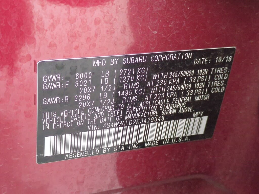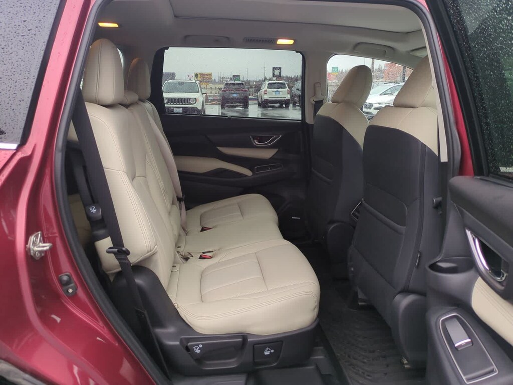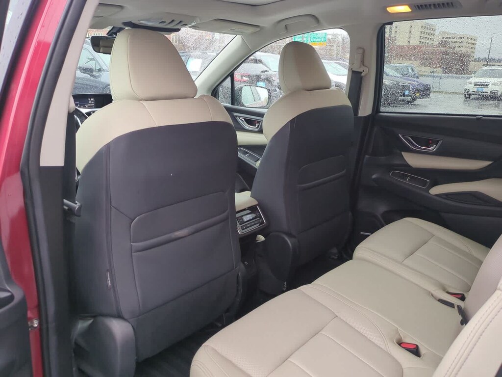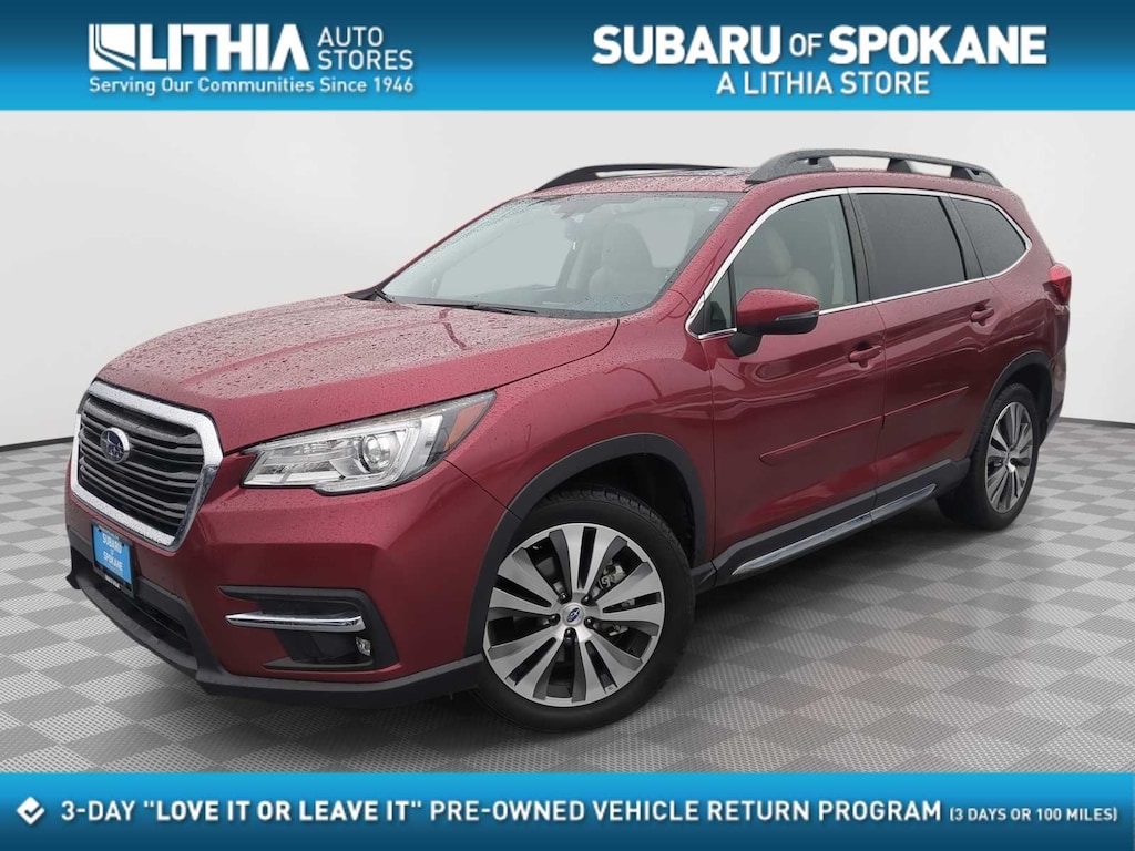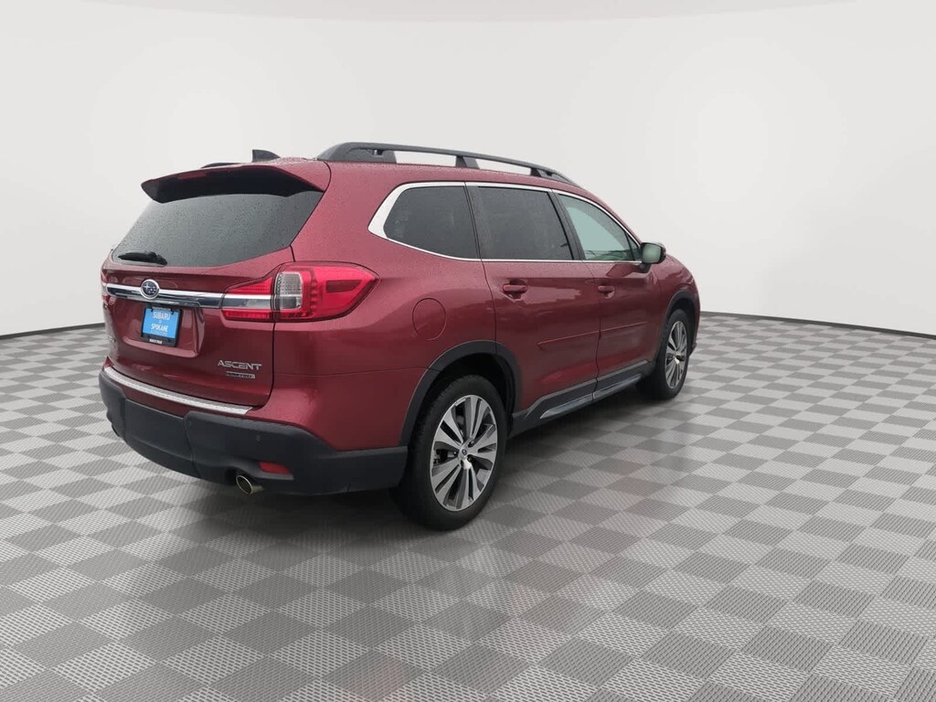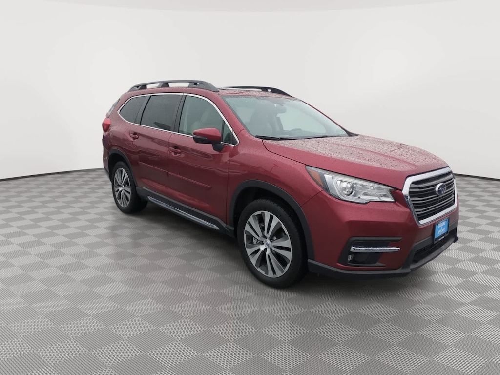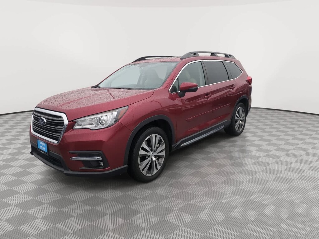 CARFAX One-Owner. Clean CARFAX. Crimson Red Pearl 2019 Subaru Ascent Limited AWD Lineartronic CVT 2.4L DOHC 20 Alloy Wheels, 3rd row seats: bench, 4-Wheel Disc Brakes, 6 Speakers, ABS brakes, Air Conditioning, All-Weather Floor Liners, Alloy wheels, AM/FM radio: SiriusXM, Auto High-beam Headlights, Auto-Dimming Exterior Mirror w/Approach Light, Auto-dimming Rear-View mirror, Automatic temperature control, Axle Ratio: 4.44, Brake assist, Bumpers: body-color, Cargo Area Cover, Cargo Tray, CD player, Compass, Crimson Red Pearl Body Side Molding, Delay-off headlights, Driver door bin, Driver vanity mirror, Dual front impact airbags, Dual front side impact airbags, Dual Glass Panoramic Power Moonroof, Electronic Stability Control, Emergency communication system: STARLINK Safety and Security, Exterior Parking Camera Rear, Four wheel independent suspension, Front anti-roll bar, Front Bucket Seats, Front Center Armrest, Front dual zone A/C, Front fog lights, Front reading lights, Fully automatic headlights, Garage door transmitter: HomeLink, harman kardon & Moonroof & Nav & Cargo Area Cover, Heated door mirrors, Heated Front Bucket Seats, Heated front seats, Heated rear seats, Heated steering wheel, Illuminated entry, Knee airbag, Low tire pressure warning, Memory seat, Occupant sensing airbag, Outside temperature display, Overhead airbag, Overhead console, Panic alarm, Passenger door bin, Passenger vanity mirror, Perforated Leather-Trimmed Upholstery, Power door mirrors, Power driver seat, Power Liftgate, Power passenger seat, Power steering, Power windows, Radio data system, Radio: Subaru STARLINK 8.0 Multimedia Nav System, Radio: Subaru STARLINK 8.0 Multimedia Plus System, Rear air conditioning, Rear anti-roll bar, Rear Bumper Cover, Rear reading lights, Rear seat center armrest, Rear Seatback Protector, Rear window defroster, Rear window wiper, Remote keyless entry, Roof rack: rails only, Security system, Speed control, Split folding rear seat, Spoiler, STARLINK/Apple CarPlay/Android Auto, Steering wheel mounted audio controls, Tachometer, Telescoping steering wheel, Tilt steering wheel, Traction control, Trip computer, Variably intermittent wipers.