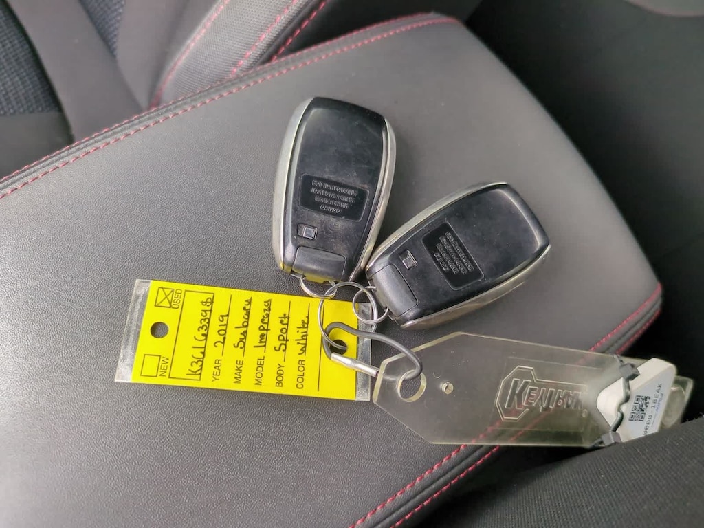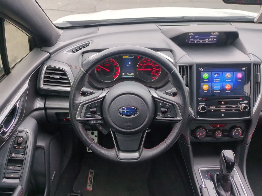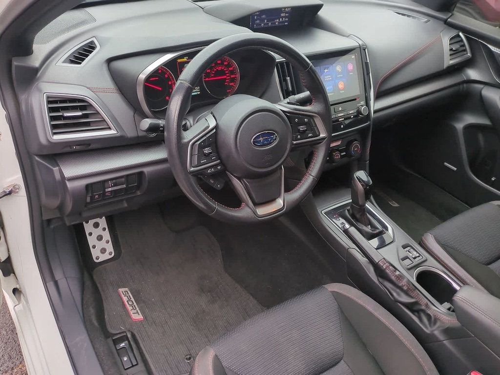 Clean CARFAX. Crystal White Pearl 2019 Subaru Impreza 2.0i Sport AWD CVT Lineartronic 2.0L DOHC 18 Alloy Wheels, 4-Wheel Disc Brakes, 6 Speakers, ABS brakes, Aero Splash Guards, Air Conditioning, Alloy wheels, AM/FM radio: SiriusXM, Blind Spot Detection (BSD), Brake assist, Bumpers: body-color, Cargo Tray, CD player, Delay-off headlights, Driver door bin, Driver vanity mirror, Dual front impact airbags, Dual front side impact airbags, Electronic Stability Control, Emergency communication system, Exterior Parking Camera Rear, EyeSight & Moonroof & BSD/RCTA & HK Audio, EyeSight System, Four wheel independent suspension, Front anti-roll bar, Front Bucket Seats, Front Center Armrest, Front reading lights, Fully automatic headlights, harman/kardon Amplifier & Speakers, Heated door mirrors, Heated Front Bucket Seats, Heated front seats, Illuminated entry, Knee airbag, Leather Shift Knob, Low tire pressure warning, Occupant sensing airbag, Outside temperature display, Overhead airbag, Overhead console, Panic alarm, Passenger door bin, Passenger vanity mirror, Power door mirrors, Power Moonroof, Power steering, Power windows, Radio data system, Radio: Subaru STARLINK 8.0 Multimedia Plus System, Rear anti-roll bar, Rear Bumper Applique, Rear Cross Traffic Alert (RCTA), Rear window defroster, Remote keyless entry, Security system, Speed control, Speed-sensing steering, Split folding rear seat, Spoiler, Sport Fabric Upholstery, STARLINK/Apple CarPlay/Android Auto, Steering wheel mounted audio controls, Tachometer, Telescoping steering wheel, Tilt steering wheel, Traction control, Trip computer, Turn signal indicator mirrors, Variably intermittent wipers.