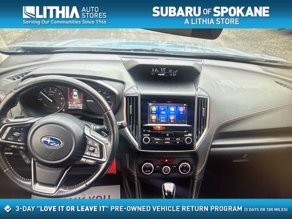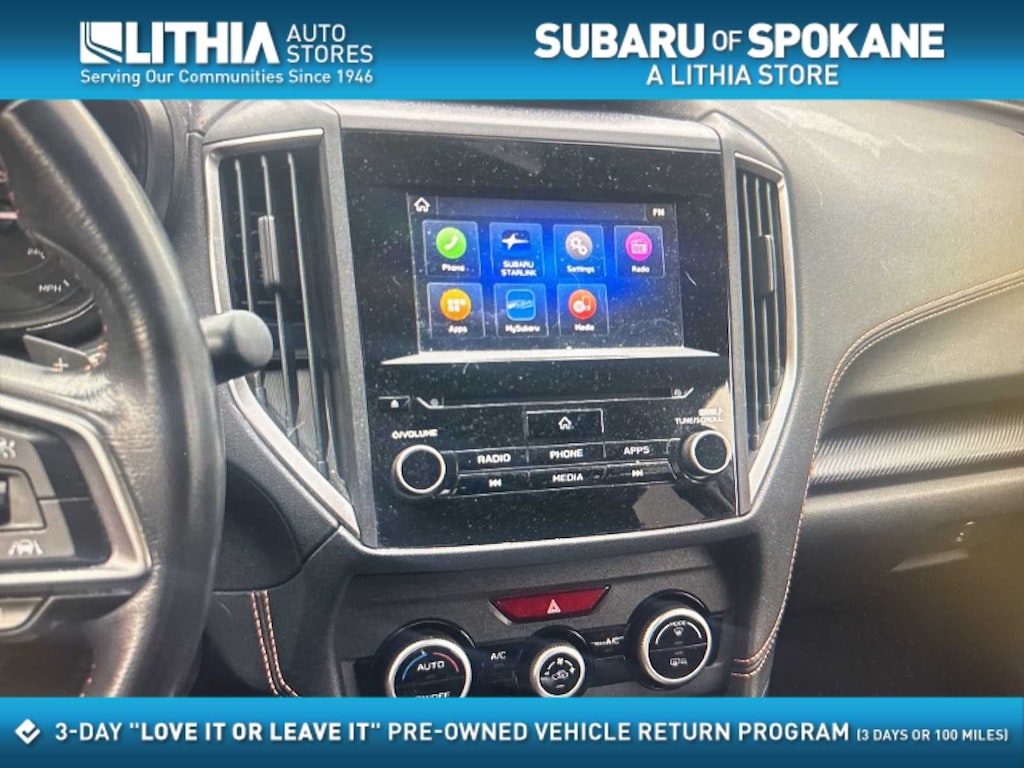 Inside, the Crosstrek offers a clean, practical interior with durable cloth upholstery, thoughtful storage, and excellent outward visibility. Apple CarPlay and Android Auto integrate seamlessly with the Subaru STARLINK infotainment system, making navigation, calls, and music simple whether youre driving locally in Spokane or heading toward Post Falls or North Idaho. The backup camera adds confidence when parking in snowy or tight spaces.
