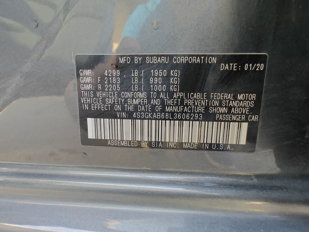 Clean CARFAX. Gray Metallic 2020 Subaru Impreza AWD CVT Lineartronic 2.0L DOHC 4 Speakers, 4-Wheel Disc Brakes, ABS brakes, Air Conditioning, All-Weather Floor Liners, AM/FM radio, Anti-whiplash front head restraints, Brake assist, Bumpers: body-color, Cloth Upholstery, Driver door bin, Driver vanity mirror, Dual front impact airbags, Dual front side impact airbags, Electronic Stability Control, Electronic Trunk Lid Release, Exterior Parking Camera Rear, EyeSight System, Four wheel independent suspension, Front anti-roll bar, Front Bucket Seats, Front Center Armrest, Front reading lights, High Grade Combination Meter w/Color LCD Display, Illuminated entry, Knee airbag, Low tire pressure warning, Occupant sensing airbag, Outside temperature display, Overhead airbag, Overhead console, Overhead Console Shower Light, Panic alarm, Passenger door bin, Passenger vanity mirror, Power door mirrors, Power steering, Power windows, Radio data system, Radio: Subaru STARLINK 6.5 Multimedia System, Rear Seat Reminder, Rear window defroster, Remote keyless entry, Security system, Speed control, Speed-sensing steering, Split folding rear seat, Standard Model w/CVT & Eyesight, STARLINK/Apple CarPlay/Android Auto, Steering wheel mounted audio controls, Tachometer, Telescoping steering wheel, Tilt steering wheel, Tire Pressure Monitoring System, Traction control, Trip computer, Variably intermittent wipers, Wheels: 16 x 6.5 Black Finish J Steel.