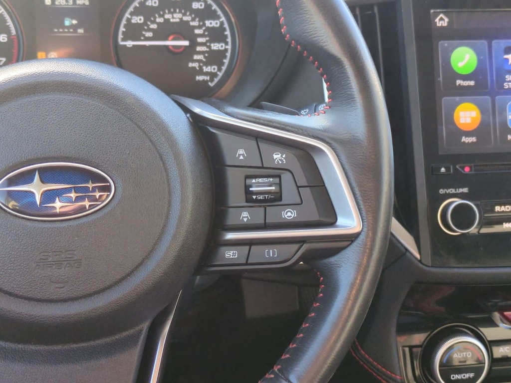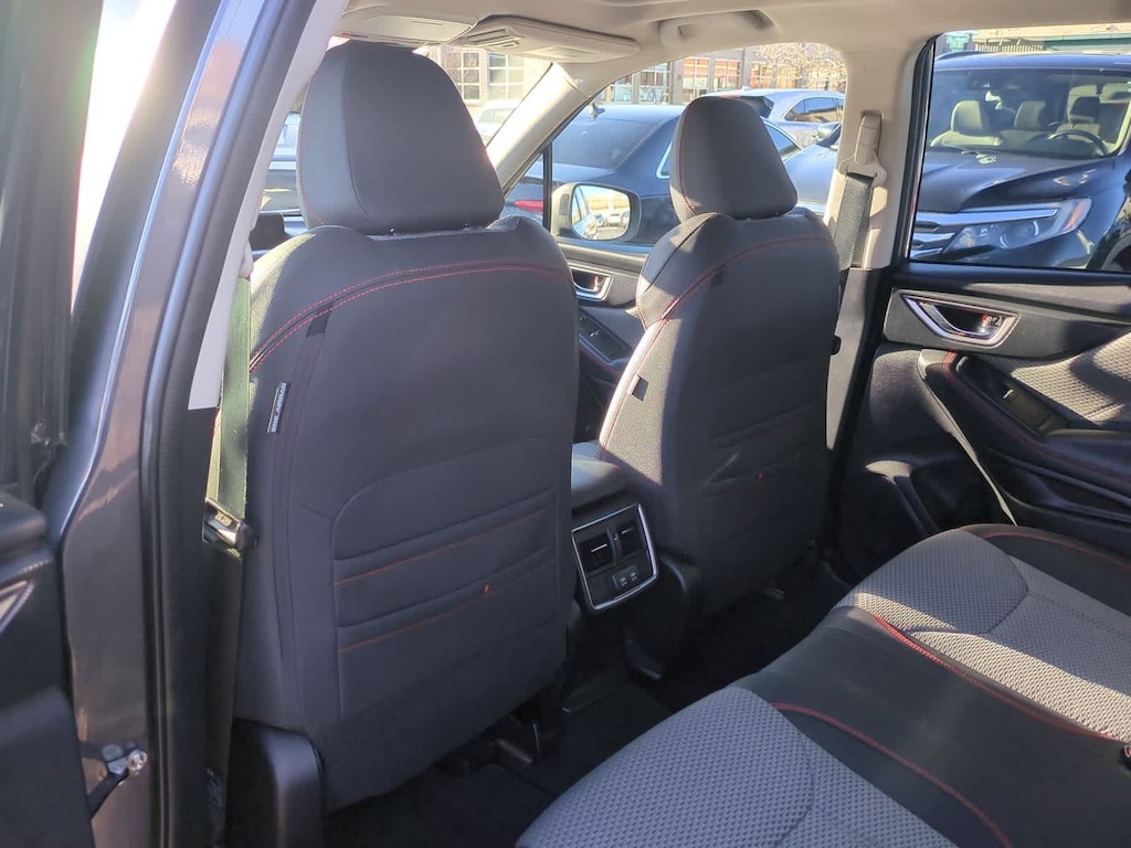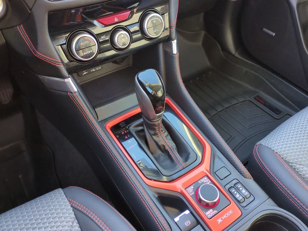 Inside, the Forester Sport blends utility with comfort: Sport-cloth interior with orange accents, heated front seats, panoramic moonroof, power driver seat, STARLINK infotainment with Apple CarPlay/Android Auto, Harman Kardon premium audio, and Power Rear Gate for easy loading. Subarus driver-assist and safety tech adds peace of mind with EyeSight features, Reverse Automatic Braking, rear camera, stability control, and advanced airbag protection.