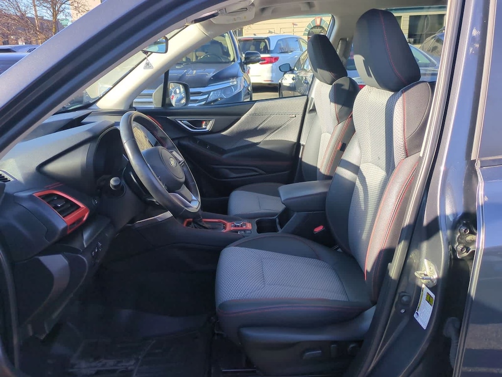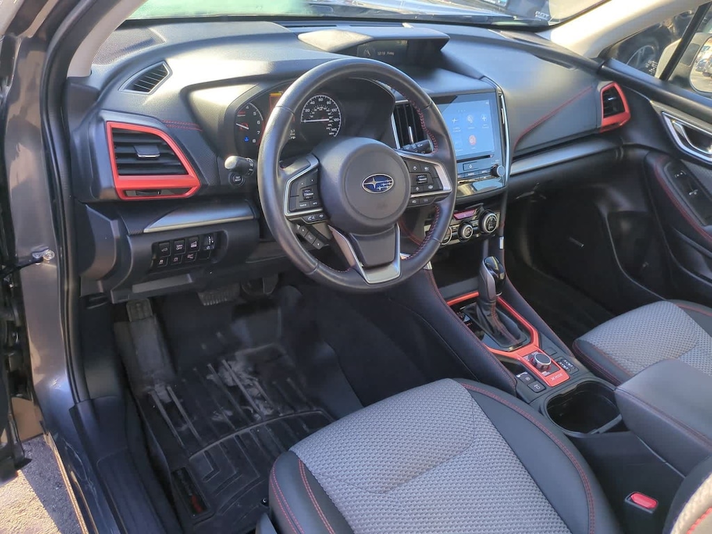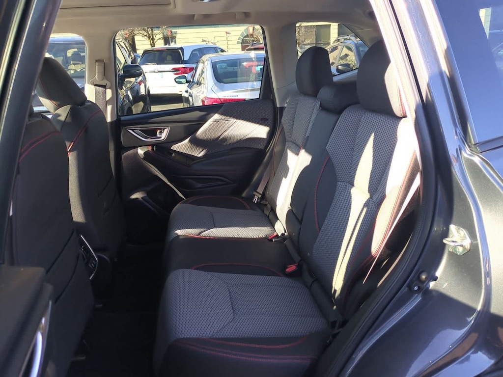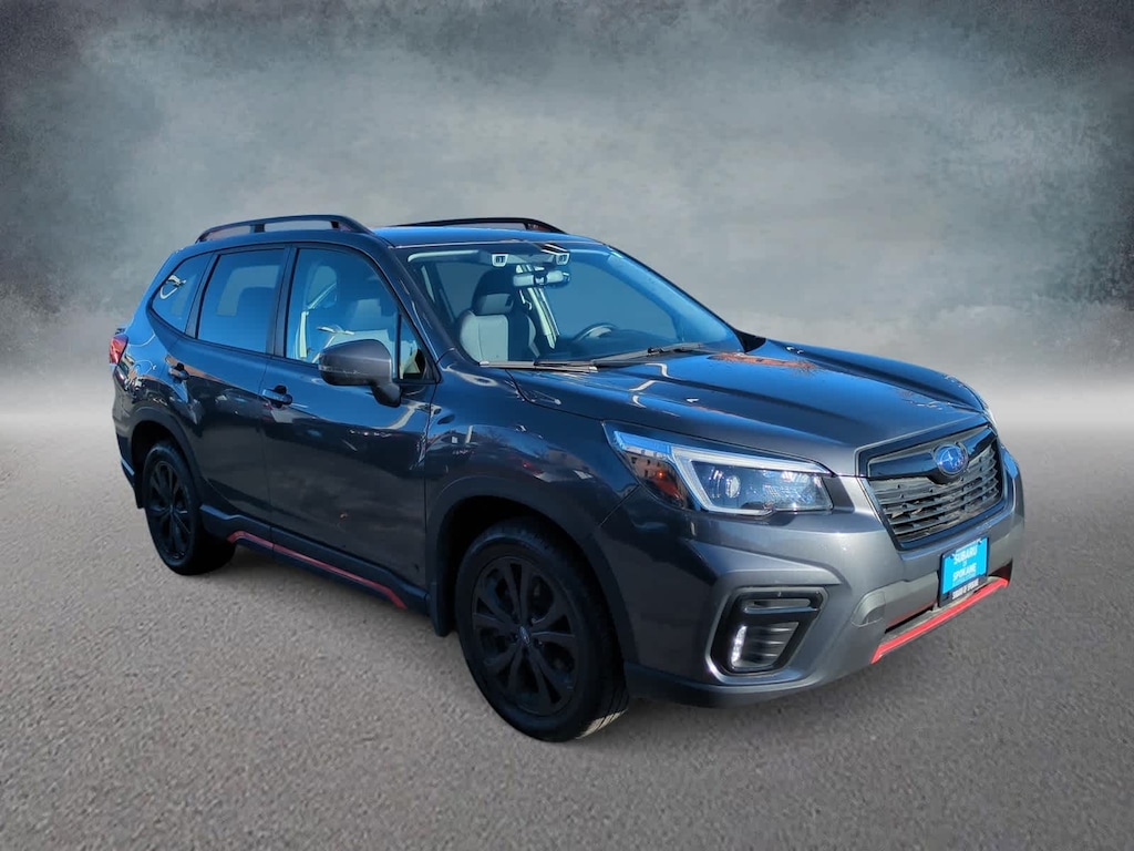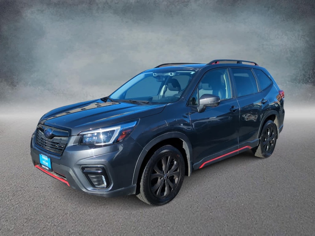 CARFAX One-Owner. Magnetite Gray Metallic 2021 Subaru Forester Sport AWD Lineartronic CVT 2.5L 4-Cylinder DOHC 16V VVT 3.70 Axle Ratio, 4-Wheel Disc Brakes, 6 Speakers, ABS brakes, Air Conditioning, Alloy wheels, AM/FM radio: SiriusXM, Audio System & Reverse Auto Brake & Power Rr Gate, Auto High-beam Headlights, Automatic temperature control, Brake assist, Bumpers: body-color, CD player, Driver door bin, Driver vanity mirror, Dual front impact airbags, Dual front side impact airbags, Electronic Stability Control, Emergency communication system: STARLINK Safety and Security (Subscription Required), Exterior Parking Camera Rear, Four wheel independent suspension, Front anti-roll bar, Front Bucket Seats, Front Center Armrest, Front fog lights, Front reading lights, Fully automatic headlights, harman kardon 576W Amp & Speaker System, Heated door mirrors, Heated Front Bucket Seats, Heated front seats, Illuminated entry, Knee airbag, Leather Shift Knob, Low tire pressure warning, Occupant sensing airbag, Outside temperature display, Overhead airbag, Overhead console, Paddle-Shift Control Switches, Panic alarm, Passenger door bin, Passenger vanity mirror, Power door mirrors, Power driver seat, Power moonroof: Panoramic, Power Rear Gate w/Automatic Close & Height Memory, Power steering, Power windows, Radio data system, Radio: Subaru Starlink 6.5 Multimedia Plus System, Radio: Subaru Starlink 8.0 Multimedia Plus System, Rear anti-roll bar, Rear seat center armrest, Rear window defroster, Rear window wiper, Remote keyless entry, Reverse Automatic Braking System (RAB), Roof rack: rails only, Security system, Speed control, Speed-sensing steering, Split folding rear seat, Spoiler, Sport Cloth Upholstery, STARLINK/Apple CarPlay/Android Auto, Steering wheel mounted audio controls, Tachometer, Telescoping steering wheel, Tilt steering wheel, Traction control, Trip computer, Turn signal indicator mirrors, Variably intermittent wipers, Wheels: 18 x 7.0J Black Finish Aluminum Alloy.
