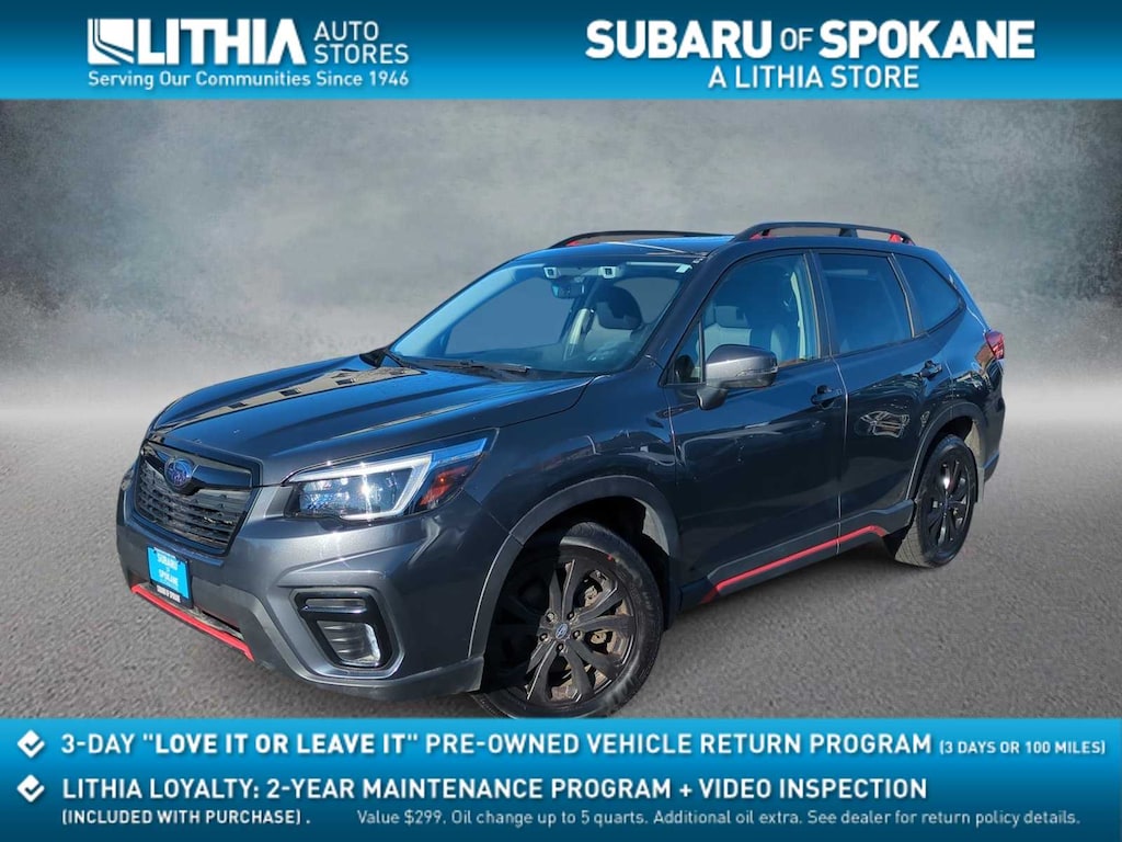 Magnetite Gray Metallic 2021 Subaru Forester Sport a sharp, athletic SUV built for Spokane life, weekend escapes, and confident year-round driving. With Subaru Symmetrical AWD, 26/33 MPG efficiency, and a capable 2.5L 4-cylinder, it delivers traction, control, and confidence whether youre commuting across Spokane Valley, heading toward Coeur dAlene, or tackling winter roads in Post Falls and the surrounding Inland Northwest.