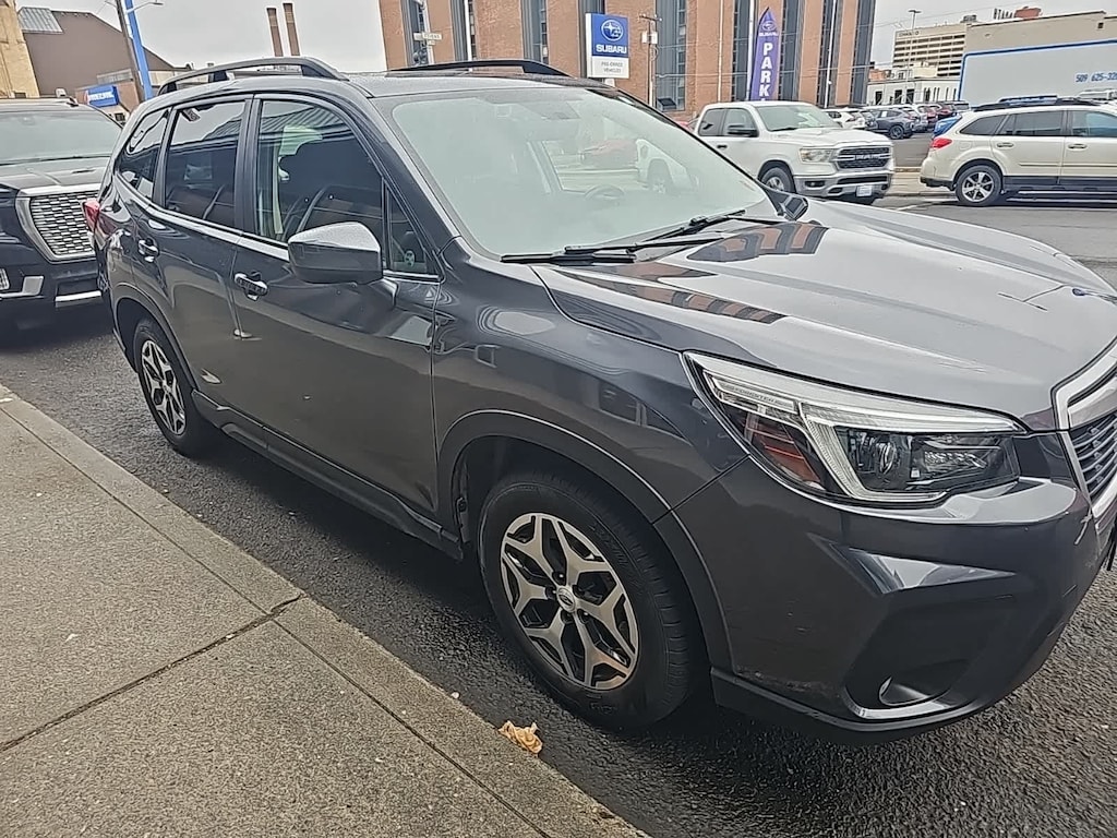 CARFAX One-Owner. Magnetite Gray Metallic 2021 Subaru Forester Premium AWD Lineartronic CVT 2.5L 4-Cylinder DOHC 16V VVT 3.70 Axle Ratio, 4-Wheel Disc Brakes, 6 Speakers, ABS brakes, Air Conditioning, All-Weather Floor Liners, Alloy wheels, AM/FM radio: SiriusXM, Auto High-beam Headlights, Auto-Dimming Exterior Mirror w/Approach Lighting, Auto-Dimming Mirror w/Compass & HomeLink, Automatic temperature control, Brake assist, Bumpers: body-color, Cargo Tray, CD player, Cloth Upholstery, Driver door bin, Driver vanity mirror, Dual front impact airbags, Dual front side impact airbags, Electronic Stability Control, Emergency communication system: STARLINK Safety and Security (Subscription Required), Exterior Parking Camera Rear, Four wheel independent suspension, Front anti-roll bar, Front Bucket Seats, Front Center Armrest, Front fog lights, Front reading lights, Fully automatic headlights, Heated door mirrors, Heated Front Bucket Seats, Heated front seats, Illuminated entry, Knee airbag, Low tire pressure warning, Occupant sensing airbag, Outside temperature display, Overhead airbag, Overhead console, Panic alarm, Passenger door bin, Passenger vanity mirror, Popular Package #1, Power door mirrors, Power driver seat, Power moonroof: Panoramic, Power steering, Power windows, Radio data system, Radio: Subaru Starlink 6.5 Multimedia Plus System, Rear anti-roll bar, Rear Bumper Cover, Rear seat center armrest, Rear Seatback Protector, Rear window defroster, Rear window wiper, Remote keyless entry, Roof rack: rails only, Security system, Speed control, Speed-sensing steering, Split folding rear seat, Spoiler, Standard Model, STARLINK/Apple CarPlay/Android Auto, Steering wheel mounted audio controls, Tachometer, Telescoping steering wheel, Tilt steering wheel, Traction control, Trip computer, Variably intermittent wipers, Wheels: 17 x 7.0J Black Machine Finish Alloy.
