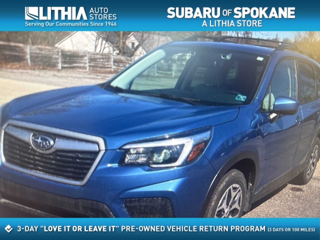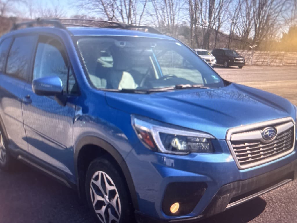 Horizon Blue Pearl 2021 Subaru Forester Premium AWD Lineartronic CVT 2.5L 4-Cylinder DOHC 16V VVT 3.70 Axle Ratio, 4-Wheel Disc Brakes, 6 Speakers, ABS brakes, Air Conditioning, All-Weather Floor Liners, Alloy wheels, AM/FM radio: SiriusXM, Auto High-beam Headlights, Automatic temperature control, Brake assist, Bumpers: body-color, Cargo Net, CD player, Cloth Upholstery, Driver door bin, Driver vanity mirror, Dual front impact airbags, Dual front side impact airbags, Electronic Stability Control, Emergency communication system: STARLINK Safety and Security (Subscription Required), Exterior Parking Camera Rear, Four wheel independent suspension, Front anti-roll bar, Front Bucket Seats, Front Center Armrest, Front fog lights, Front reading lights, Fully automatic headlights, Heated door mirrors, Heated Front Bucket Seats, Heated front seats, Horizon Blue Pearl Body Side Molding, Horizon Blue Pearl Door Edge Guards, Illuminated entry, Knee airbag, Low tire pressure warning, Occupant sensing airbag, Outside temperature display, Overhead airbag, Overhead console, Panic alarm, Passenger door bin, Passenger vanity mirror, Power door mirrors, Power driver seat, Power moonroof: Panoramic, Power steering, Power windows, Radio data system, Radio: Subaru Starlink 6.5 Multimedia Plus System, Rear anti-roll bar, Rear Bumper Cover, Rear seat center armrest, Rear Seatback Protector, Rear window defroster, Rear window wiper, Remote keyless entry, Roof rack: rails only, Security system, Speed control, Speed-sensing steering, Splash Guards, Split folding rear seat, Spoiler, Standard Model, STARLINK/Apple CarPlay/Android Auto, Steering wheel mounted audio controls, Tachometer, Telescoping steering wheel, Tilt steering wheel, Traction control, Trip computer, Variably intermittent wipers, Wheels: 17 x 7.0J Black Machine Finish Alloy.