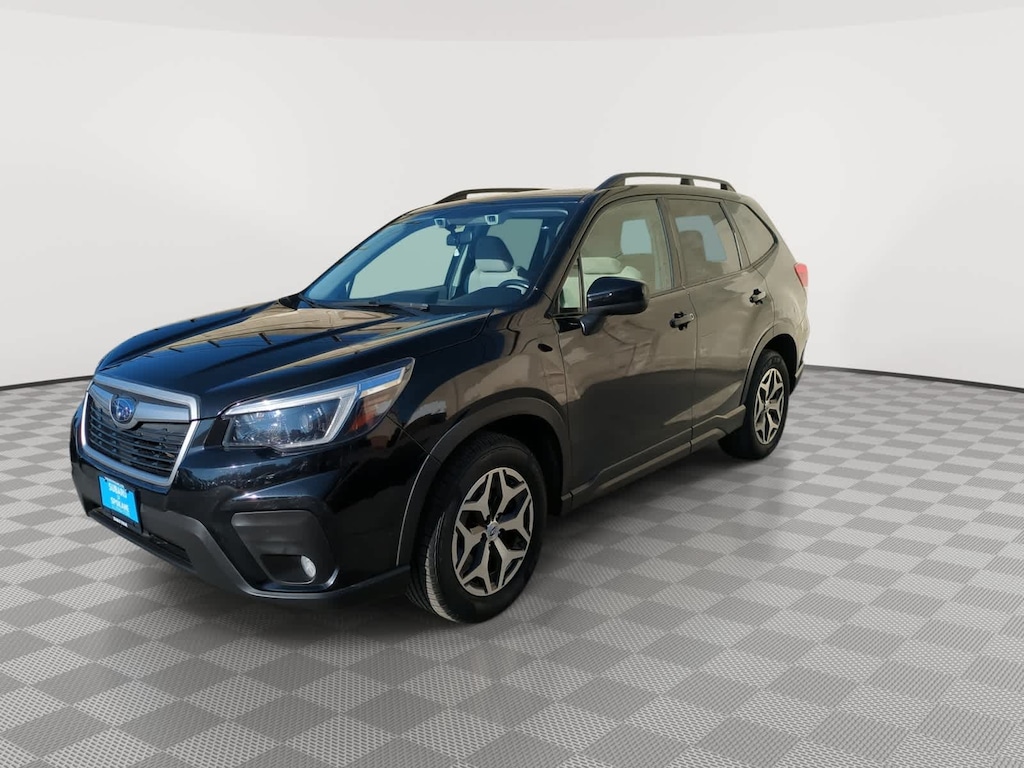 Crystal Black Silica 2021 Subaru Forester Premium AWD Lineartronic CVT 2.5L 4-Cylinder DOHC 16V VVT 3.70 Axle Ratio, 4-Wheel Disc Brakes, 6 Speakers, ABS brakes, Air Conditioning, Alloy wheels, AM/FM radio: SiriusXM, Auto High-beam Headlights, Automatic temperature control, Brake assist, Bumpers: body-color, CD player, Cloth Upholstery, Driver door bin, Driver vanity mirror, Dual front impact airbags, Dual front side impact airbags, Electronic Stability Control, Emergency communication system: STARLINK Safety and Security (Subscription Required), Exterior Parking Camera Rear, Four wheel independent suspension, Front anti-roll bar, Front Bucket Seats, Front Center Armrest, Front fog lights, Front reading lights, Fully automatic headlights, Heated door mirrors, Heated Front Bucket Seats, Heated front seats, Illuminated entry, Knee airbag, Low tire pressure warning, Occupant sensing airbag, Outside temperature display, Overhead airbag, Overhead console, Panic alarm, Passenger door bin, Passenger vanity mirror, Power door mirrors, Power driver seat, Power moonroof: Panoramic, Power steering, Power windows, Radio data system, Radio: Subaru Starlink 6.5 Multimedia Plus System, Rear anti-roll bar, Rear seat center armrest, Rear window defroster, Rear window wiper, Remote keyless entry, Roof rack: rails only, Security system, Speed control, Speed-sensing steering, Split folding rear seat, Spoiler, Standard Model, STARLINK/Apple CarPlay/Android Auto, Steering wheel mounted audio controls, Tachometer, Telescoping steering wheel, Tilt steering wheel, Traction control, Trip computer, Variably intermittent wipers, Wheels: 17 x 7.0J Black Machine Finish Alloy.