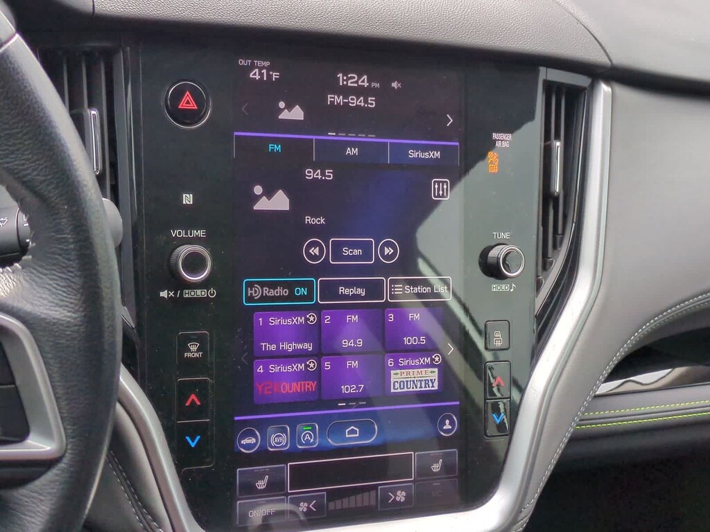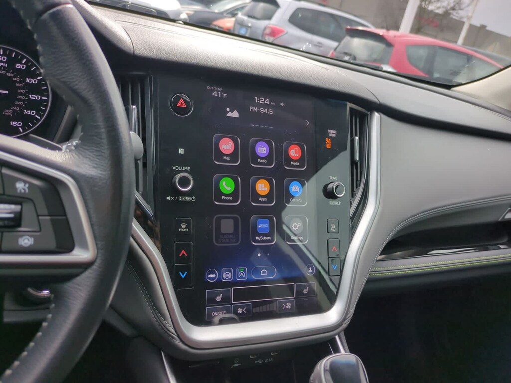 CARFAX One-Owner. Ice Silver Metallic 2021 Subaru Outback Onyx Edition XT AWD CVT Lineartronic 2.4L DOHC 4-Wheel Disc Brakes, 4.111 Axle Ratio, 6 Speakers, ABS brakes, Air Conditioning, All-Weather Floor Liners, Alloy wheels, AM/FM radio: SiriusXM, Auto High-beam Headlights, Auto-Dimming Exterior Mirror w/Approach Light, Auto-dimming Rear-View mirror, Automatic temperature control, Brake assist, Bumpers: body-color, Compass, Dome Light LED Upgrade, Driver door bin, Driver vanity mirror, Dual front impact airbags, Dual front side impact airbags, Electronic Stability Control, Emergency communication system: STARLINK Safety and Security (Subscription Required), Exterior Parking Camera Rear, Four wheel independent suspension, Front anti-roll bar, Front Bucket Seats, Front Center Armrest w/Storage, Front dual zone A/C, Front fog lights, Front reading lights, Fully automatic headlights, Garage door transmitter: HomeLink, Heated door mirrors, Heated Front Bucket Seats, Heated front seats, Heated rear seats, Illuminated entry, Knee airbag, Leather steering wheel, Low tire pressure warning, Occupant sensing airbag, Outside temperature display, Overhead airbag, Overhead console, Panic alarm, Passenger door bin, Passenger vanity mirror, Popular Package #2, Power door mirrors, Power driver seat, Power Liftgate, Power Moonroof, Power Moonroof & Navigation & RAB, Power passenger seat, Power steering, Power windows, Radio: Subaru STARLINK 11.6 Multimedia Nav System, Radio: Subaru STARLINK 11.6 Multimedia Plus Sys, Rear anti-roll bar, Rear Bumper Cover, Rear Seat Back Protector, Rear seat center armrest, Rear window defroster, Rear window wiper, Remote keyless entry, Reverse Automatic Braking (RAB), Roof rack, Security system, Speed control, Speed-sensing steering, Splash Guards, Split folding rear seat, Spoiler, STARLINK/Apple CarPlay/Android Auto, StarTex-Trimmed Upholstery, Steering wheel mounted audio controls, Steering Wheel Paddle Shift Control Switches, Tachometer, Telescoping steering wheel, Tilt steering wheel, Traction control, Trip computer, Turn signal indicator mirrors, Variably intermittent wipers, Wheels: 18 x 7J Black Aluminum Alloy.