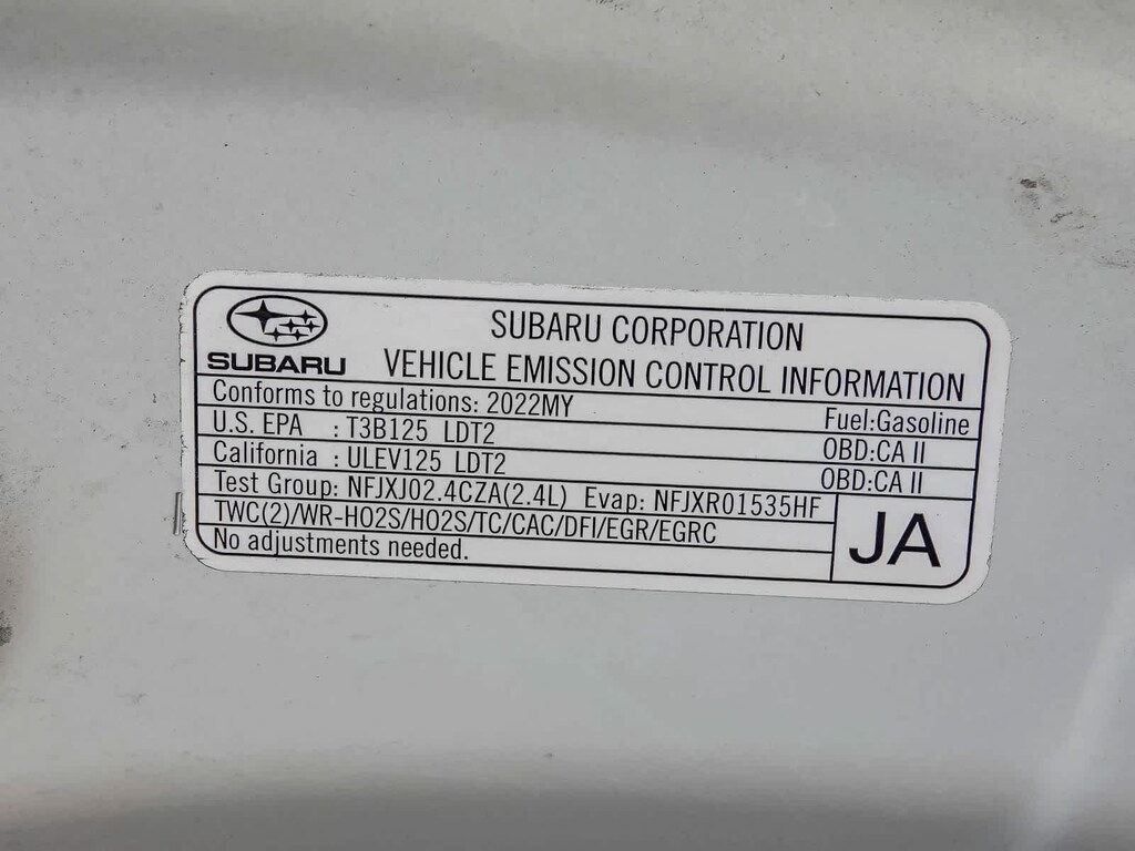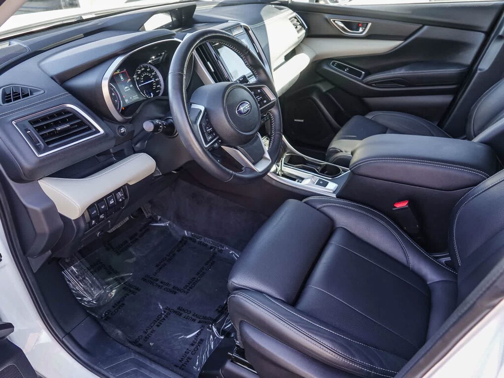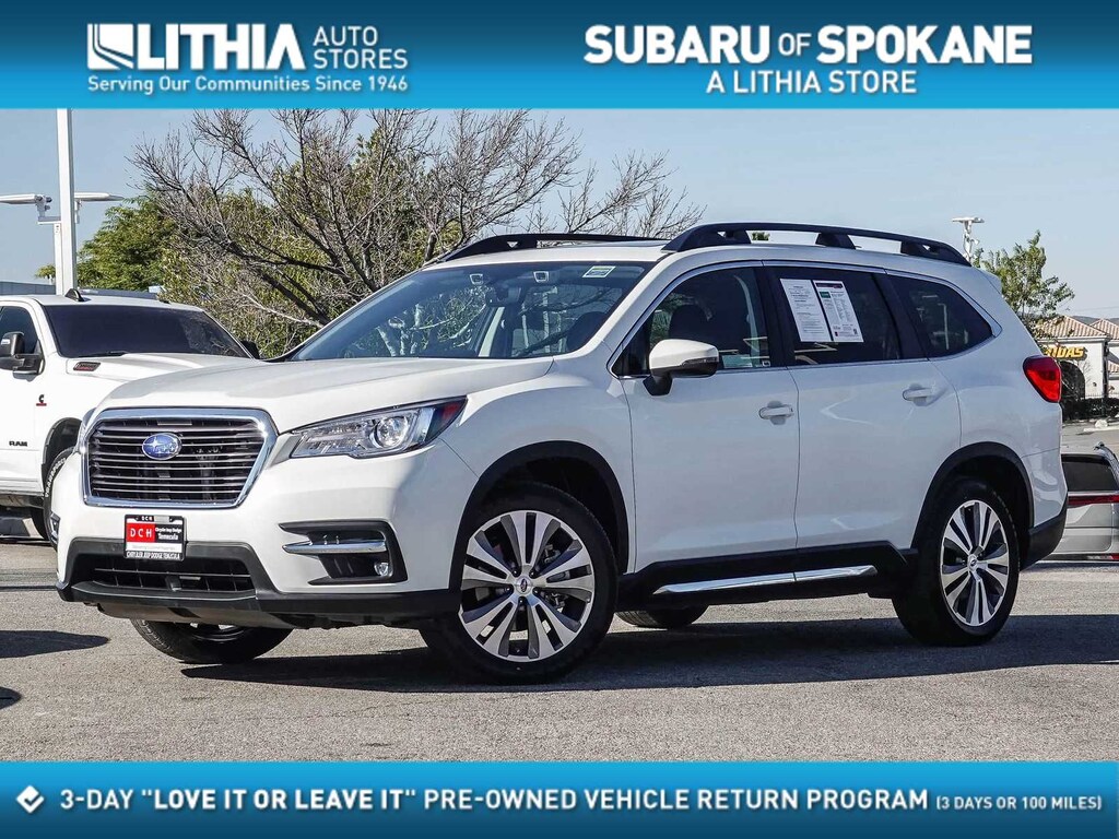 CARFAX One-Owner. Certified. Crystal White Pearl 2022 Subaru Ascent Limited AWD Lineartronic CVT 2.4L 4-Cylinder DOHC 16V Subaru Certified Pre-Owned Certified, 3rd row seats: bench, 4-Wheel Disc Brakes, 6 Speakers, ABS brakes, Aero Crossbar Set, Air Conditioning, All-Weather Floor Liners, Alloy wheels, AM/FM radio: SiriusXM, Auto High-beam Headlights, Auto-Dimming Exterior Mirror w/Approach Light, Auto-dimming Rear-View mirror, Automatic temperature control, Axle Ratio: 4.44, Brake assist, Bumpers: body-color, Cargo Area Cover, Cargo Net, Cargo Tray, CD player, Compass, Delay-off headlights, Driver door bin, Driver vanity mirror, Dual front impact airbags, Dual front side impact airbags, Dual Glass Panoramic Power Moonroof, Electronic Stability Control, Emergency communication system: STARLINK Safety and Security (Subscription Required), Exterior Parking Camera Rear, Four wheel independent suspension, Front anti-roll bar, Front Bucket Seats, Front Center Armrest, Front dual zone A/C, Front fog lights, Front reading lights, Fully automatic headlights, Garage door transmitter: HomeLink, Heated door mirrors, Heated Front Bucket Seats, Heated front seats, Heated rear seats, Heated steering wheel, Illuminated entry, Knee airbag, Low tire pressure warning, Memory seat, Occupant sensing airbag, Outside temperature display, Overhead airbag, Overhead console, Panic alarm, Passenger door bin, Passenger vanity mirror, Perforated Leather-Trimmed Upholstery, Power door mirrors, Power driver seat, Power Liftgate, Power passenger seat, Power steering, Power windows, Radio data system, Radio: Subaru STARLINK 8.0 Multimedia Nav System, Radio: Subaru STARLINK 8.0 Multimedia Plus System, Rear air conditioning, Rear anti-roll bar, Rear Bumper Cover, Rear reading lights, Rear seat center armrest, Rear window defroster, Rear window wiper, Reclining 3rd row seat, Remote keyless entry, Security system, Speed control, Split folding rear seat, Spoiler, STARLINK/Apple CarPlay/Android Auto, Steering wheel mounted audio controls, Tachometer, Technology Package, Telescoping steering wheel, Tilt steering wheel, Traction control, Trip computer, Turn signal indicator mirrors, Variably intermittent wipers, Wheels: 20 x 7.5 J Dk Gray Alloy w/Machine Finish.