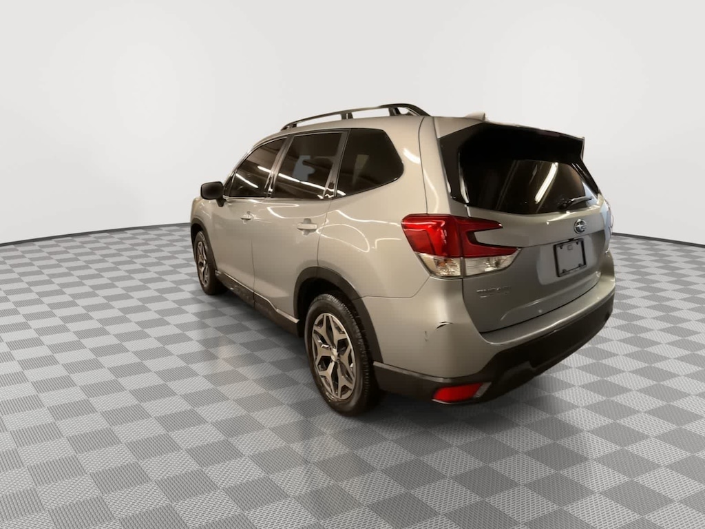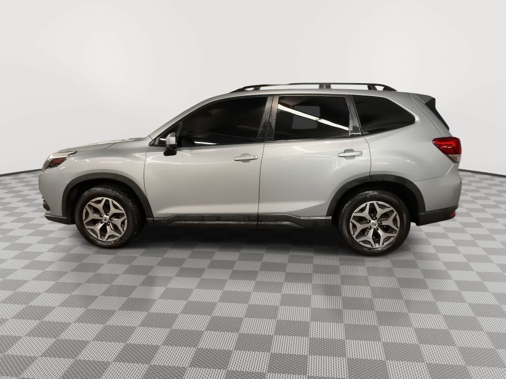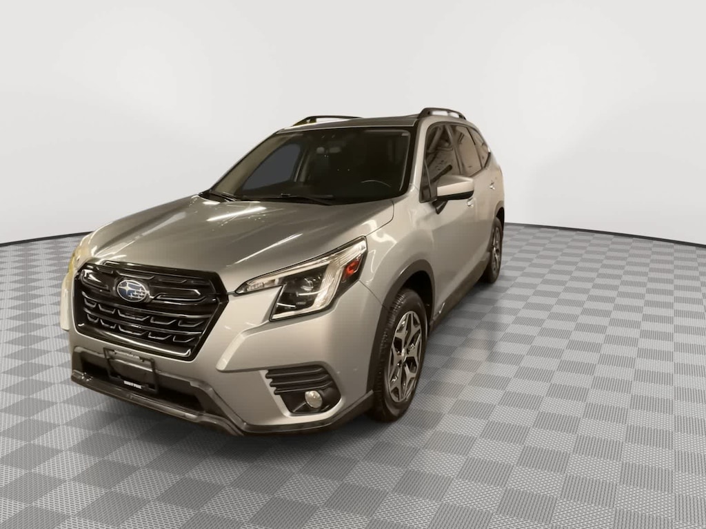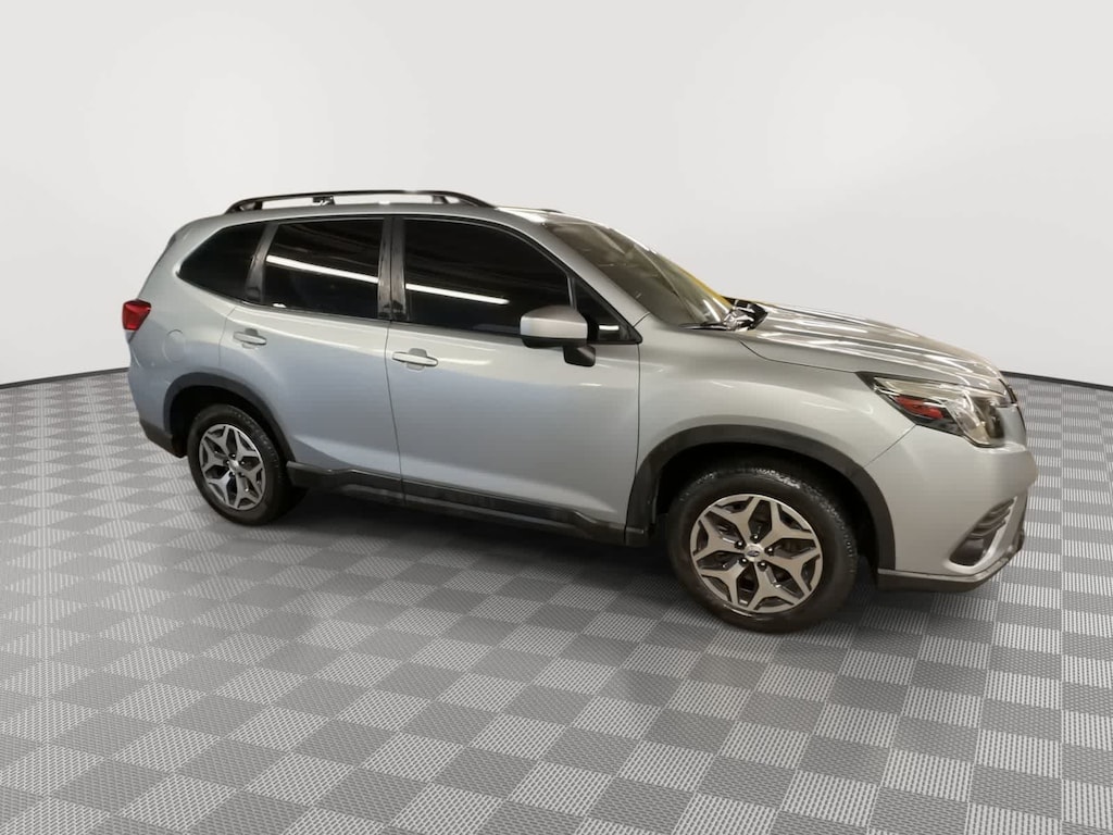 CARFAX One-Owner. Clean CARFAX. Ice Silver Metallic 2022 Subaru Forester Premium AWD Lineartronic CVT 2.5L 4-Cylinder DOHC 16V 3.70 Axle Ratio, 4-Wheel Disc Brakes, 6 Speakers, ABS brakes, Air Conditioning, Alloy wheels, AM/FM radio: SiriusXM, Anti-whiplash front head restraints, Auto High-beam Headlights, Automatic temperature control, Brake assist, Bumpers: body-color, CD player, Driver door bin, Driver vanity mirror, Dual front impact airbags, Dual front side impact airbags, Electronic Stability Control, Emergency communication system: STARLINK Safety and Security (Subscription Required), Exterior Parking Camera Rear, Four wheel independent suspension, Front anti-roll bar, Front Bucket Seats, Front Center Armrest, Front fog lights, Front reading lights, Fully automatic headlights, Heated door mirrors, Heated Front Bucket Seats, Heated front seats, Illuminated entry, Knee airbag, Low tire pressure warning, Occupant sensing airbag, Outside temperature display, Overhead airbag, Overhead console, Panic alarm, Passenger door bin, Passenger vanity mirror, Power door mirrors, Power driver seat, Power moonroof: Panoramic, Power steering, Power windows, Premium Cloth Upholstery, Radio data system, Radio: Subaru Starlink 6.5 Multimedia Plus System, Rear anti-roll bar, Rear seat center armrest, Rear window defroster, Rear window wiper, Remote keyless entry, Roof rack: rails only, Security system, Speed control, Speed-sensing steering, Split folding rear seat, Spoiler, STARLINK/Apple CarPlay/Android Auto, Steering wheel mounted audio controls, Tachometer, Telescoping steering wheel, Tilt steering wheel, Traction control, Trip computer, Variably intermittent wipers, Wheels: 17 x 7.0J Black Machine Finish Alloy.