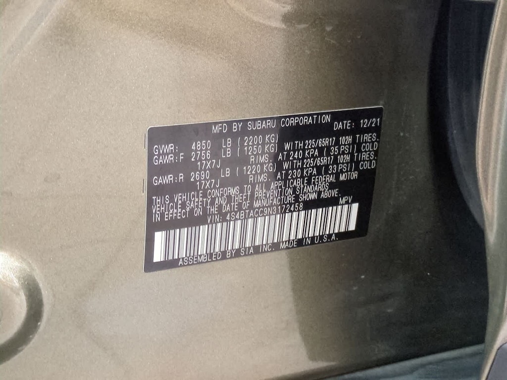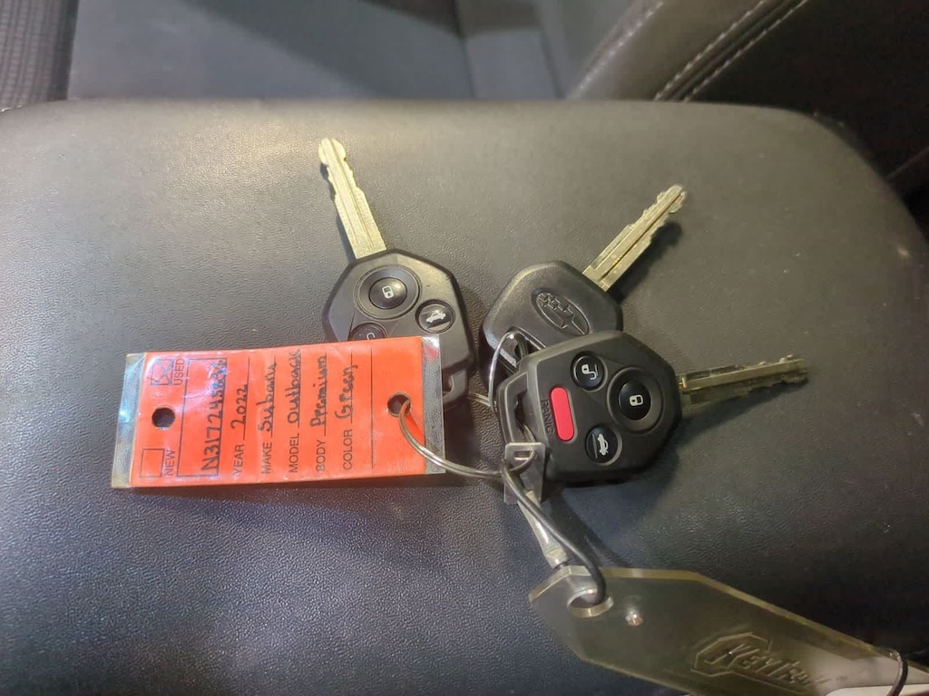 CARFAX One-Owner. Clean CARFAX. New Price! Green Metallic 2022 Subaru Outback Premium AWD CVT Lineartronic 2.5L 4-Cylinder DOHC 16V 3.90 Axle Ratio, 4-Wheel Disc Brakes, 6 Speakers, ABS brakes, Air Conditioning, All-Weather Floor Liners, Alloy wheels, AM/FM radio: SiriusXM, Auto High-beam Headlights, Auto-Dimming Exterior Mirror w/Approach Light, Auto-Dimming Mirror w/Compass & HomeLink, Automatic temperature control, Brake assist, Bumpers: body-color, Cloth Upholstery, Dome Light LED Upgrade, Driver door bin, Driver vanity mirror, Dual front impact airbags, Dual front side impact airbags, Electronic Stability Control, Emergency communication system: STARLINK Safety and Security (Subscription Required), Exterior Parking Camera Rear, Four wheel independent suspension, Front anti-roll bar, Front Bucket Seats, Front Center Armrest w/Storage, Front dual zone A/C, Front fog lights, Front reading lights, Fully automatic headlights, Heated door mirrors, Heated Front Bucket Seats, Heated front seats, Illuminated entry, Knee airbag, Leather steering wheel, Low tire pressure warning, Occupant sensing airbag, Outside temperature display, Overhead airbag, Overhead console, Panic alarm, Passenger door bin, Passenger vanity mirror, Popular Package #1, Power door mirrors, Power driver seat, Power steering, Power windows, Radio: Subaru STARLINK 11.6 Multimedia Plus Sys, Rear anti-roll bar, Rear Bumper Cover, Rear seat center armrest, Rear window defroster, Rear window wiper, Remote keyless entry, Roof rack, Security system, Speed control, Speed-sensing steering, Split folding rear seat, Spoiler, Standard Model, STARLINK/Apple CarPlay/Android Auto, Steering wheel mounted audio controls, Steering Wheel Paddle Shift Control