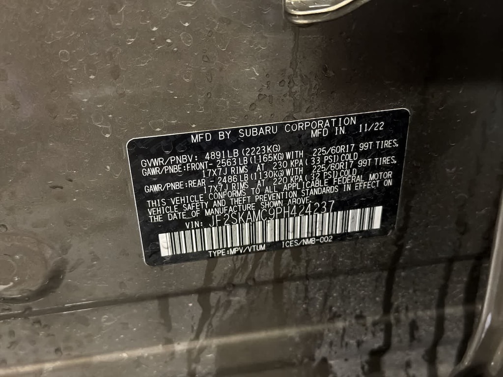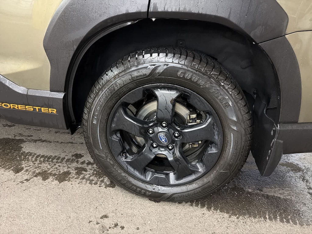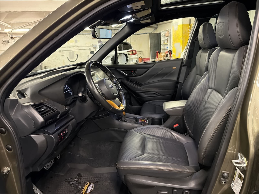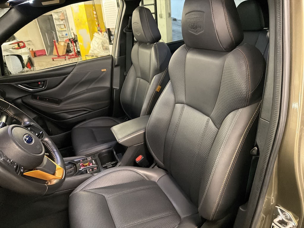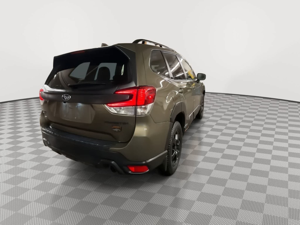 CARFAX One-Owner. Clean CARFAX. Autumn Green Metallic 2023 Subaru Forester Wilderness AWD Lineartronic CVT 2.5L 4-Cylinder DOHC 16V 4-Wheel Disc Brakes, 4.11 Axle Ratio, 6 Speakers, 8 Audio w/harman/kardon & Power Rear Gate, ABS brakes, Air Conditioning, Alloy wheels, AM/FM radio: SiriusXM, Anti-whiplash front head restraints, Auto High-beam Headlights, Auto-Dimming Mirror w/Compass & HomeLink, Automatic temperature control, Brake assist, Bumpers: body-color, CD player, Driver door bin, Driver vanity mirror, Dual front impact airbags, Dual front side impact airbags, Electronic Stability Control, Emergency communication system: STARLINK Safety and Security (Subscription Required), Exterior Parking Camera Rear, Four wheel independent suspension, Front anti-roll bar, Front Bucket Seats, Front Center Armrest, Front dual zone A/C, Front fog lights, Front reading lights, Fully automatic headlights, harman/kardon 9-Speaker Audio System, Heated door mirrors, Heated Front Bucket Seats, Heated front seats, Illuminated entry, Knee airbag, Leather Shift Knob, Low tire pressure warning, Navigation System, Occupant sensing airbag, Outside temperature display, Overhead airbag, Overhead console, Panic alarm, Passenger door bin, Passenger vanity mirror, Power door mirrors, Power driver seat, Power moonroof: Panoramic, Power Rear Gate, Power steering, Power windows, Radio data system, Radio: Subaru Starlink 8.0 Multimedia Nav System, Radio: Subaru Starlink 8.0 Multimedia Plus System, Rear anti-roll bar, Rear seat center armrest, Rear Seatback Protector - Wilderness, Rear window defroster, Rear window wiper, Remote keyless entry, Roof rack: rails only, Security system, Speed control, Speed-sensing steering, Splash Guards - Wilderness, Split folding rear seat, Spoiler, STARLINK/Apple CarPlay/Android Auto, Steering wheel mounted audio controls, Sunshade - Windshield, Tachometer, Telescoping steering wheel, Textured StarTex Upholstery, Tilt steering wheel, Traction control, Trip computer, Turn signal indicator mirrors, Variably intermittent wipers, Wheels: 17 x 7.0 J Matte Black Finish Alum-Alloy.