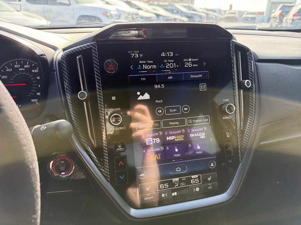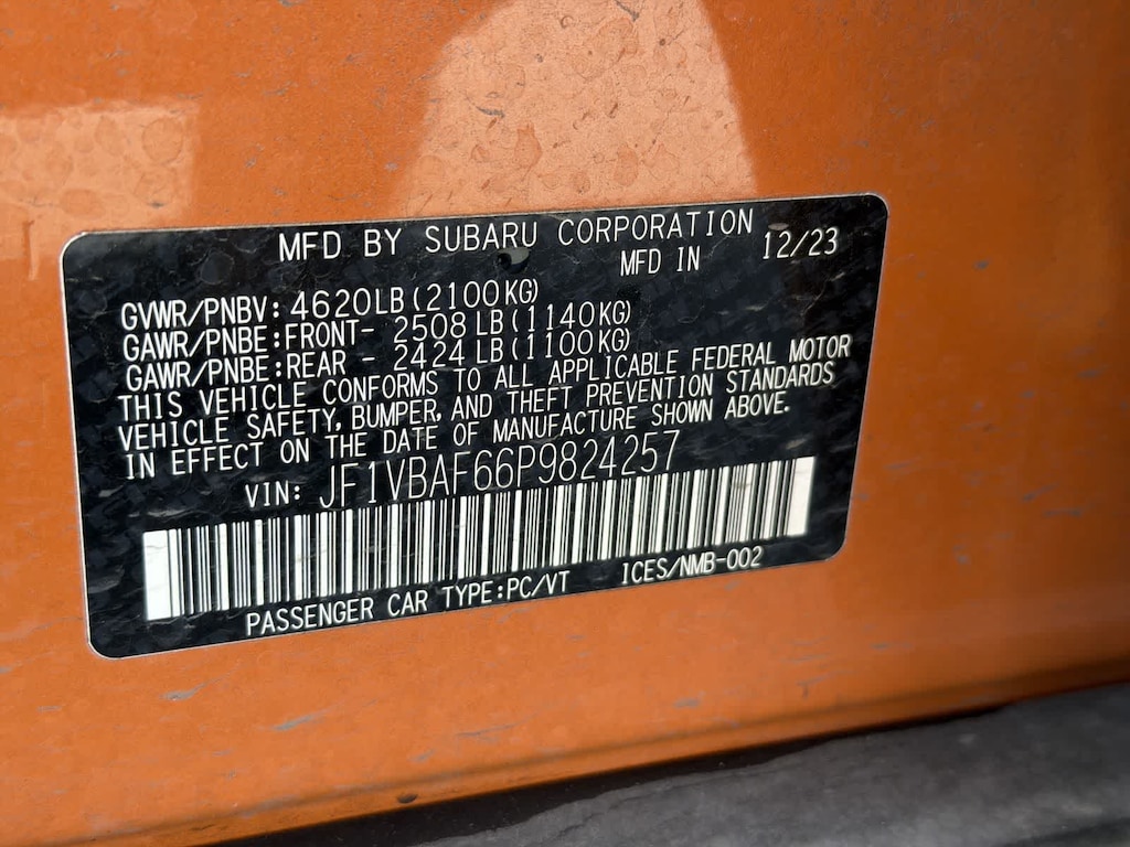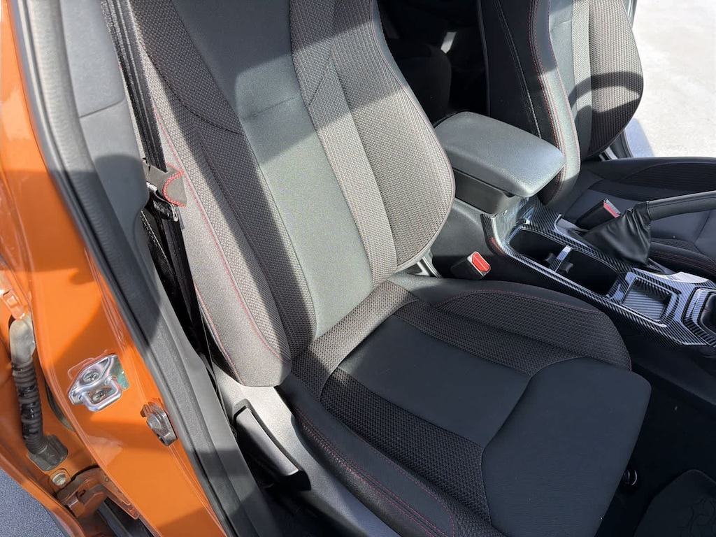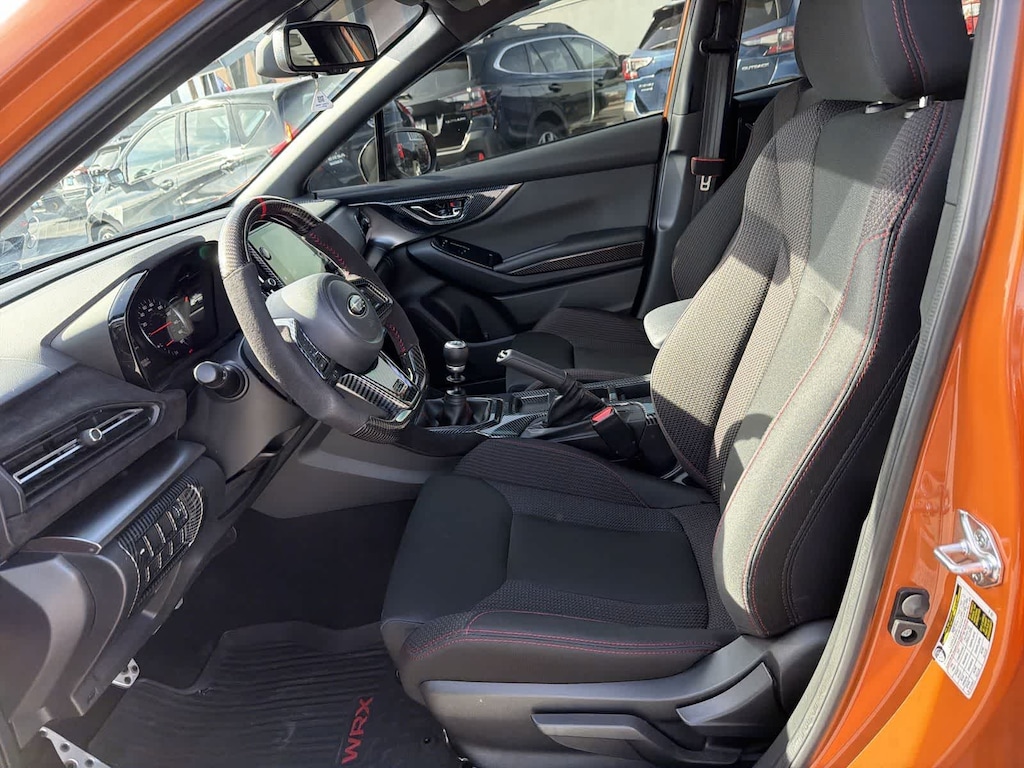 CARFAX One-Owner. Solar Orange Pearl 2023 Subaru WRX Premium AWD 6-Speed Manual 2.4L DOHC 4-Wheel Disc Brakes, 6 Speakers, ABS brakes, Air Conditioning, All-Weather Floor Liners, Alloy wheels, AM/FM radio: SiriusXM, Auto High-beam Headlights, Auto-dimming Rear-View mirror, Automatic temperature control, Brake assist, Bumpers: body-color, Cloth Upholstery w/Red Stitching, Driver door bin, Driver vanity mirror, Dual front impact airbags, Dual front side impact airbags, Electronic Stability Control, Emergency communication system: STARLINK Safety and Security (Subscription Required), Exterior Parking Camera Rear, Four wheel independent suspension, Front anti-roll bar, Front Bucket Seats, Front Center Armrest, Front dual zone A/C, Front fog lights, Front reading lights, Fully automatic headlights, Heated door mirrors, Heated front seats, Illuminated entry, Knee airbag, Leather Shift Knob, Leather steering wheel, LED Upgrade, Low tire pressure warning, Occupant sensing airbag, Outside temperature display, Overhead airbag, Overhead console, Panic alarm, Passenger door bin, Passenger vanity mirror, Performance Design Heated Front Bucket Seats, Power door mirrors, Power steering, Power windows, Radio data system, Radio: Subaru STARLINK 11.6 Multimedia Plus Sys, Rear anti-roll bar, Rear seat center armrest, Rear Seatback Protector, Rear window defroster, Remote keyless entry, Security system, Speed control, Speed-sensing steering, Split folding rear seat, Spoiler, Sport steering wheel, Standard Model (6MT), STARLINK/Apple CarPlay/Android Auto, Steering wheel mounted audio controls, Tachometer, Telescoping steering wheel, Tilt steering wheel, Traction control, Trip computer, Variably intermittent wipers, Wheels: 18 x 8.5 Dark Gray Finish Alum Alloy.
