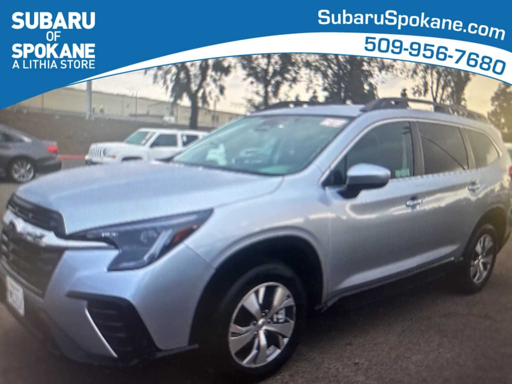 CARFAX One-Owner. Clean CARFAX. Certified. Ice Silver Metallic 2024 Subaru Ascent Premium AWD Lineartronic CVT 2.4L 4-Cylinder DOHC 16V Subaru Certified Pre-Owned Certified, 3rd row seats: bench, 4-Wheel Disc Brakes, 6 Speakers, ABS brakes, Air Conditioning, Alloy wheels, AM/FM radio: SiriusXM, Auto High-beam Headlights, Auto-Dimming Rear View Compass Mirror w/HomeLink, Automatic temperature control, Axle Ratio: 4.44, Brake assist, Bumpers: body-color, Convenience Package, Delay-off headlights, Driver door bin, Driver vanity mirror, Dual front impact airbags, Dual front side impact airbags, Electronic Stability Control, Emergency communication system: STARLINK Safety and Security (Subscription Required), Exterior Parking Camera Rear, Four wheel independent suspension, Front anti-roll bar, Front Bucket Seats, Front Center Armrest, Front dual zone A/C, Front reading lights, Fully automatic headlights, Heated door mirrors, Heated Front Bucket Seats, Heated front seats, Illuminated entry, Keyless Access w/Push-Button Start, Knee airbag, Leather Shift Knob, Leather steering wheel, Low tire pressure warning, Occupant sensing airbag, Outside temperature display, Overhead airbag, Overhead console, Panic alarm, Passenger door bin, Passenger vanity mirror, Power door mirrors, Power driver seat, Power Rear Gate w/Automatic Close & Height Memory, Power steering, Power windows, Radio data system, Radio: Subaru STARLINK 11.6 Multimedia Plus System, Rear air conditioning, Rear anti-roll bar, Rear reading lights, Rear window defroster, Rear window wiper, Reclining 3rd row seat, Remote keyless entry, Reverse Automatic Braking (RAB) System, Security system, Speed control, Speed-sensing steering, Spill Resistant Coated Cloth Upholstery, Split folding rear seat, Spoiler, STARLINK/Apple CarPlay/Android Auto, Steering wheel mounted audio controls, Tachometer, Telescoping steering wheel, Tilt steering wheel, Traction control, Trip computer, Turn signal indicator mirrors, Variably intermittent wipers, Wheels: 18 x 7.5 J Gray Alloy w/Machine Finish.