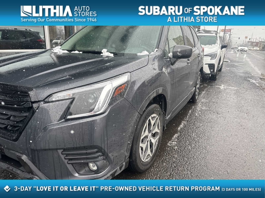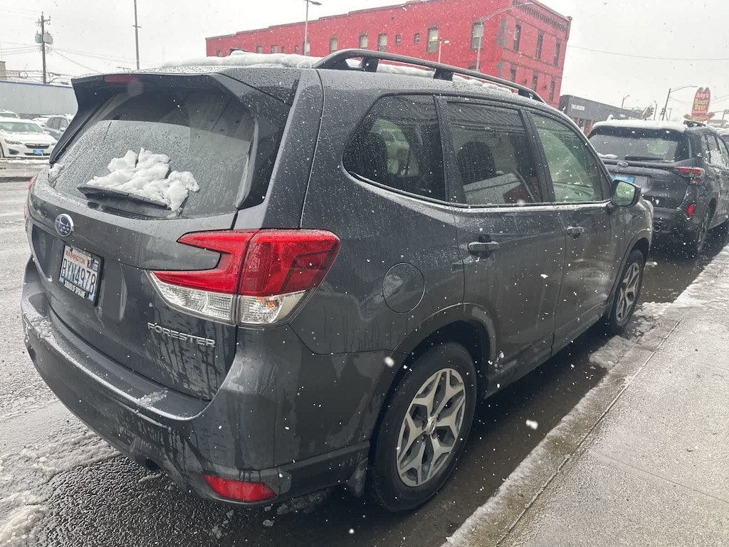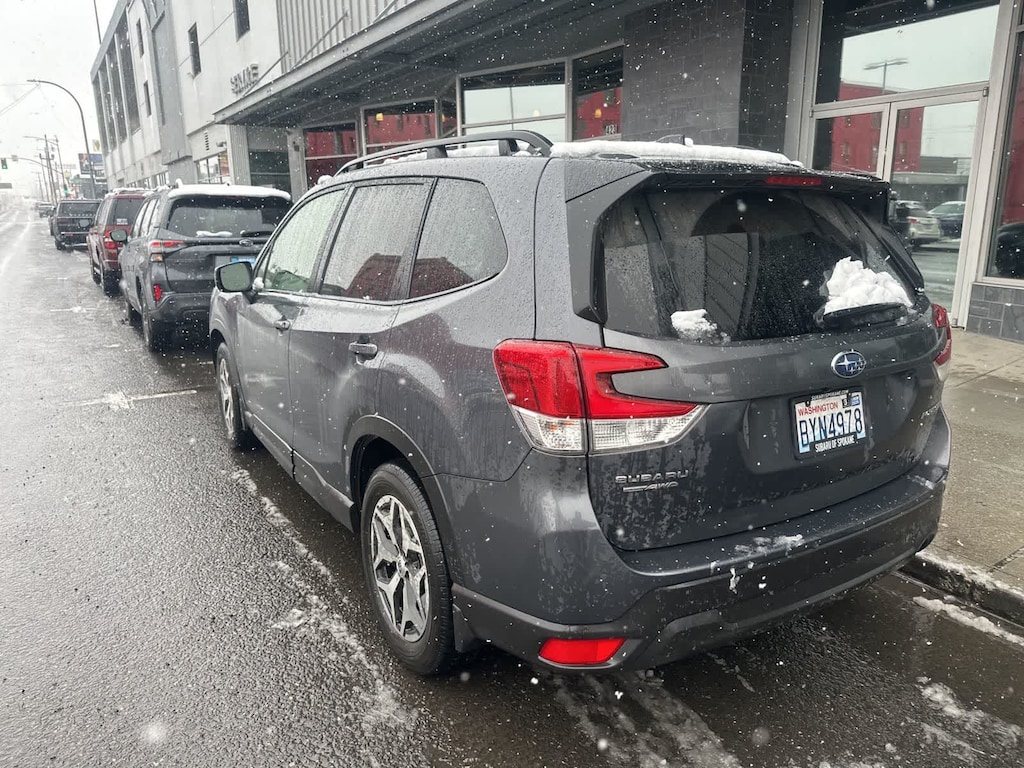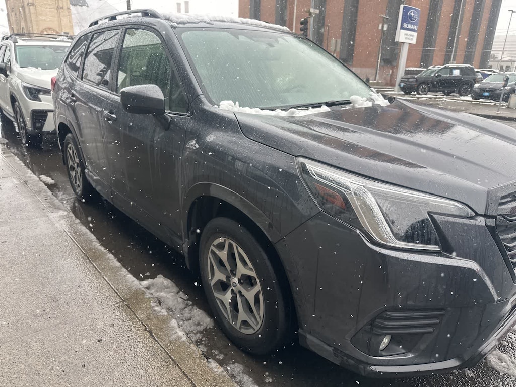 CARFAX One-Owner. Clean CARFAX. Gray Metallic 2024 Subaru Forester Premium AWD Lineartronic CVT 2.5L 4-Cylinder DOHC 16V 3.70 Axle Ratio, 4-Wheel Disc Brakes, 6 Speakers, ABS brakes, Air Conditioning, Alloy wheels, AM/FM radio: SiriusXM, Anti-whiplash front head restraints, Auto High-beam Headlights, Auto-Dimming Exterior Mirror w/Approach Light, Auto-Dimming Mirror w/Compass & HomeLink, Automatic temperature control, Blind Spot Detection w/RCTA & Power Rear Gate, Blind-Spot Detection (BSD), Brake assist, Bumpers: body-color, Cargo Tray, Driver door bin, Driver vanity mirror, Drivers Seatback Divided Pocket, Dual front impact airbags, Dual front side impact airbags, Dual USB Charge Ports, Electronic Stability Control, Emergency communication system: STARLINK Safety and Security (Subscription Required), Exterior Parking Camera Rear, EyeSight System, Four wheel independent suspension, Front anti-roll bar, Front Bucket Seats, Front Center Armrest, Front fog lights, Front reading lights, Fully automatic headlights, Heated door mirrors, Heated Front Bucket Seats, Heated front seats, Illuminated entry, Knee airbag, Leather steering wheel, LED Upgrade, Low tire pressure warning, Multi-Function High Grade Display, Occupant sensing airbag, Outside temperature display, Overhead airbag, Overhead console, Panic alarm, Passenger door bin, Passenger vanity mirror, Power door mirrors, Power driver seat, Power moonroof: Panoramic, Power Rear Gate, Power steering, Power windows, Premium Cloth Upholstery, Radio data system, Radio: Subaru STARLINK 6.5 Multimedia Plus System, Rear anti-roll bar, Rear seat center armrest, Rear window defroster, Rear window wiper, Remote keyless entry, Roof rack: rails only, Security system, Speed control, Speed-sensing steering, Splash Guards, Split folding rear seat, Spoiler, STARLINK/Apple CarPlay/Android Auto, Steering wheel mounted audio controls, Tachometer, Telescoping steering wheel, Tilt steering wheel, Traction control, Trip computer, Variably intermittent wipers, Wheels: 17 x 7.0 J Black Machine Finish Alloy.
