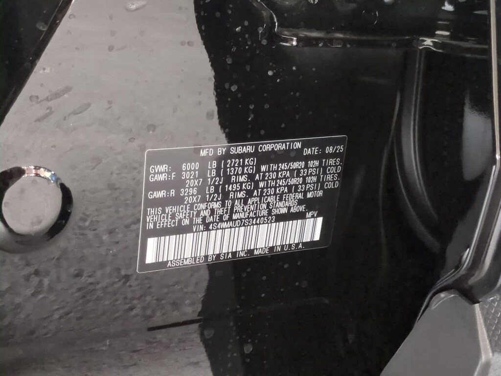 Clean CARFAX. Certified. Crystal Black Silica 2025 Subaru Ascent Touring AWD Lineartronic CVT 2.4L 4-Cylinder DOHC 16V Subaru Certified Pre-Owned Certified, 14 Speakers, 3rd row seats: bench, 4-Wheel Disc Brakes, ABS brakes, Air Conditioning, Alloy wheels, Auto High-beam Headlights, Auto-dimming Rear-View mirror, Automatic temperature control, Brake assist, Bumpers: body-color, Compass, Delay-off headlights, Driver door bin, Driver vanity mirror, Dual front impact airbags, Dual front side impact airbags, Electronic Stability Control, Exterior Parking Camera Rear, Four wheel independent suspension, Front anti-roll bar, Front Bucket Seats, Front Center Armrest, Front dual zone A/C, Front fog lights, Front reading lights, Fully automatic headlights, Garage door transmitter: HomeLink, harman/kardonî Speakers, Heated & Ventilated Front Bucket Seats, Heated door mirrors, Heated front seats, Heated rear seats, Heated steering wheel, HVAC memory, Illuminated entry, Knee airbag, Leather Shift Knob, Leather steering wheel, Low tire pressure warning, Memory seat, Navigation System, Occupant sensing airbag, Outside temperature display, Overhead airbag, Overhead console, Panic alarm, Passenger door bin, Passenger vanity mirror, Perforated Nappa Leather-Trimmed Upholstery, Power door mirrors, Power driver seat, Power Liftgate, Power moonroof, Power passenger seat, Power steering, Power windows, Radio data system, Rain sensing wipers, Rear air conditioning, Rear anti-roll bar, Rear reading lights, Rear window defroster, Rear window wiper, Reclining 3rd row seat, Remote keyless entry, Security system, Speed control, Speed-sensing steering, Split folding rear seat, Spoiler, Steering wheel mounted audio controls, Tachometer, Telescoping steering wheel, Tilt steering wheel, Traction control, Trip computer, Turn signal indicator mirrors, Variably intermittent wipers, Ventilated front seats, Wheels: 20 x 7.5 J Dk Gray Alloy w/Machine Finish.