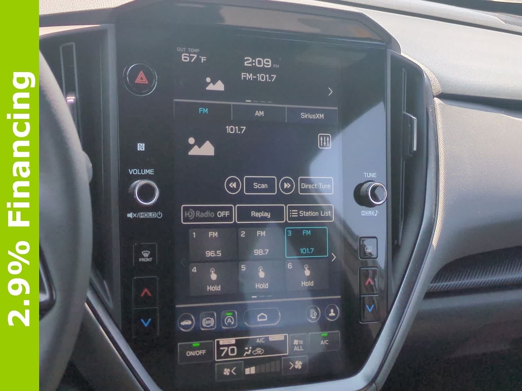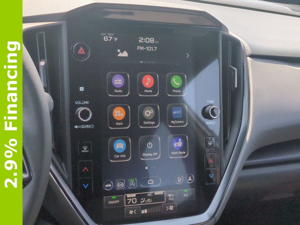 Inside, you get a comfortable and sporty cabin with heated front seats, dual-zone climate control, intuitive touchscreen technology, Apple CarPlay/Android Auto, premium sport cloth upholstery, and a quiet ride that makes daily commuting and weekend exploring feel easy. Advanced safety technology, stability control, rear camera, and Subaru engineering provide peace of mind for every season.