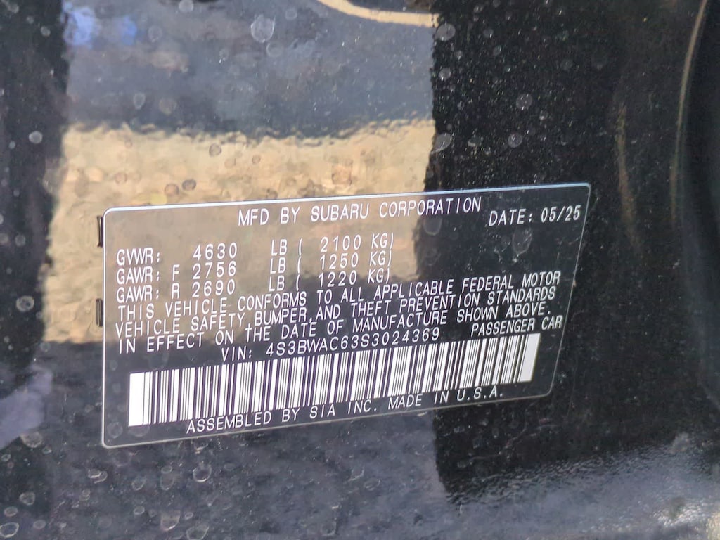 CARFAX One-Owner. Clean CARFAX. Certified. Crystal Black Silica 2025 Subaru Legacy Premium AWD Lineartronic CVT 2.5L 4-Cylinder DOHC 16V Subaru Certified Pre-Owned Certified, 4-Wheel Disc Brakes, 6 Speakers, ABS brakes, Air Conditioning, Alloy wheels, AM/FM radio: SiriusXM with 360L, Anti-whiplash front head restraints, Auto High-beam Headlights, Automatic temperature control, Brake assist, Bumpers: body-color, Cloth Upholstery, Driver door bin, Driver vanity mirror, Dual front impact airbags, Dual front side impact airbags, Electronic Stability Control, Exterior Parking Camera Rear, Four wheel independent suspension, Front anti-roll bar, Front Bucket Seats, Front Center Armrest w/Storage, Front dual zone A/C, Front reading lights, Fully automatic headlights, Heated door mirrors, Heated Front Bucket Seats, Heated front seats, Illuminated entry, Knee airbag, Leather steering wheel, Low tire pressure warning, Occupant sensing airbag, Outside temperature display, Overhead airbag, Overhead console, Panic alarm, Passenger door bin, Passenger vanity mirror, Power door mirrors, Power driver seat, Power steering, Power windows, Rear anti-roll bar, Rear seat center armrest, Rear window defroster, Remote keyless entry, Security system, Speed control, Speed-sensing steering, Split folding rear seat, Steering wheel mounted audio controls, Tachometer, Telescoping steering wheel, Tilt steering wheel, Traction control, Trip computer, Turn signal indicator mirrors, Variably intermittent wipers, Wheels: 17 x 7.5J Blk Mach Finish Aluminum-Alloy.