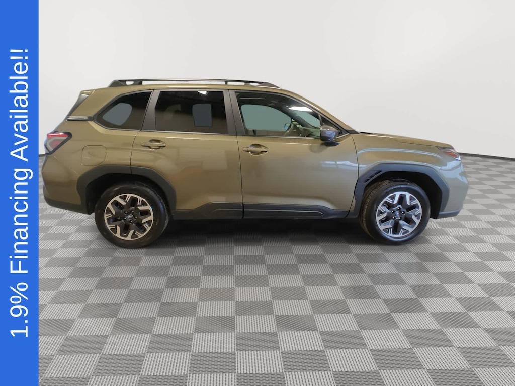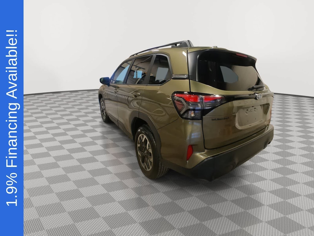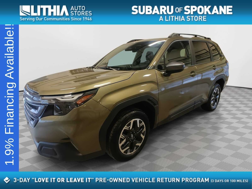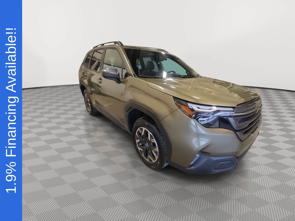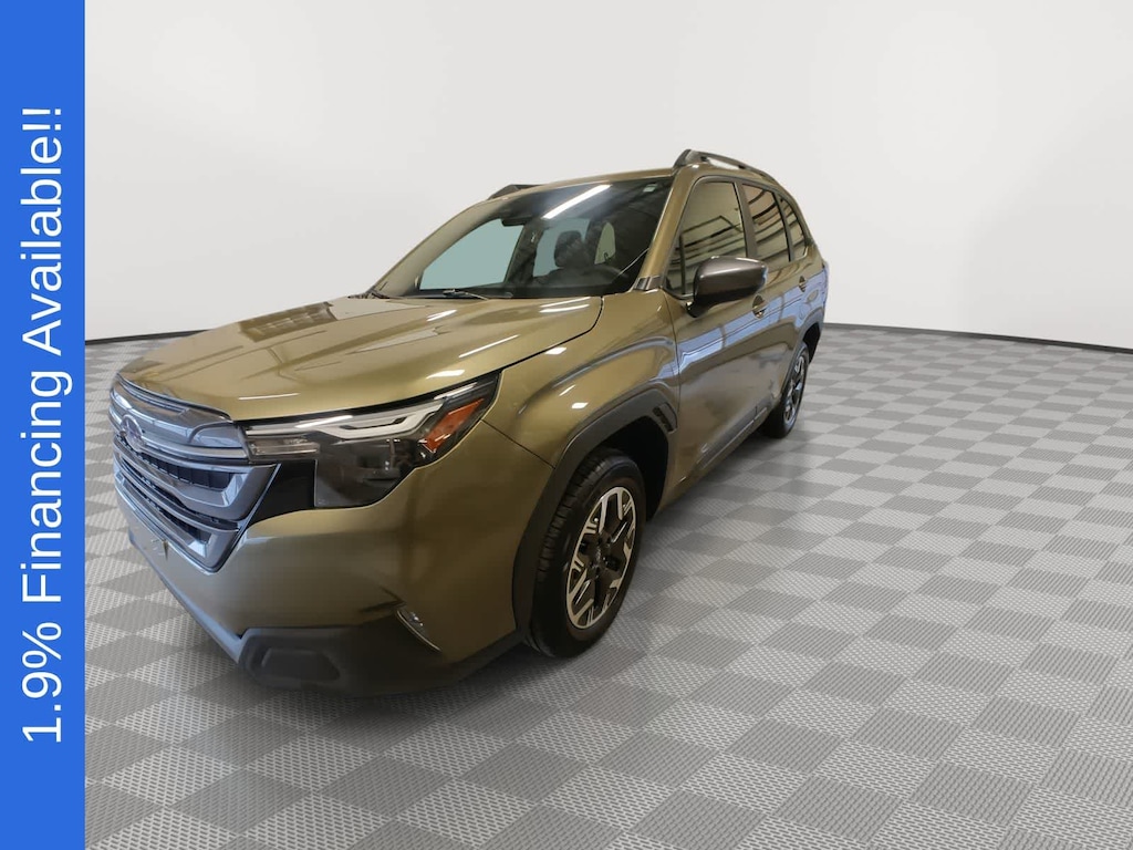 Clean CARFAX. Certified. Autumn Green Metallic 2026 Subaru Forester Premium AWD Lineartronic CVT 2.5L 4-Cylinder DOHC 16V Subaru Certified Pre-Owned Certified, ABS brakes, Active Cruise Control, Alloy wheels, Electronic Stability Control, Front dual zone A/C, Heated door mirrors, Heated Front Bucket Seats, Heated front seats, Illuminated entry, Low tire pressure warning, Remote keyless entry, Traction control, 4-Wheel Disc Brakes, 6 Speakers, Air Conditioning, AM/FM radio: SiriusXM with 360L, Anti-whiplash front head restraints, Auto High-beam Headlights, Automatic temperature control, Brake assist, Bumpers: body-color, Driver door bin, Driver vanity mirror, Dual front impact airbags, Dual front side impact airbags, Emergency communication system: MySubaru Companion (5-years free), Exterior Parking Camera Rear, Four wheel independent suspension, Front anti-roll bar, Front Bucket Seats, Front Center Armrest, Front fog lights, Front reading lights, Fully automatic headlights, Knee airbag, Leather steering wheel, Occupant sensing airbag, Outside temperature display, Overhead airbag, Overhead console, Panic alarm, Passenger door bin, Passenger vanity mirror, Power door mirrors, Power driver seat, Power moonroof: Panoramic, Power steering, Power windows, Premium Textured Cloth Upholstery, Radio data system, Radio: Subaru 11.6 Multimedia Plus System, Rear anti-roll bar, Rear seat center armrest, Rear window defroster, Rear window wiper, Security system, Speed control, Speed-sensing steering, Split folding rear seat, Spoiler, Steering wheel mounted audio controls, Tachometer, Telescoping steering wheel, Tilt steering wheel, Trip computer, Variably intermittent wipers, Wheels: 17 x 7.0 J Dark Metallic Aluminum-Alloy, ABS brakes, Active Cruise Control, Alloy wheels, Electronic Stability Control, Front dual zone A/C, Heated door mirrors, Heated Front Bucket Seats, Heated front seats, Illuminated entry, Low tire pressure warning, Remote keyless entry, Traction control.