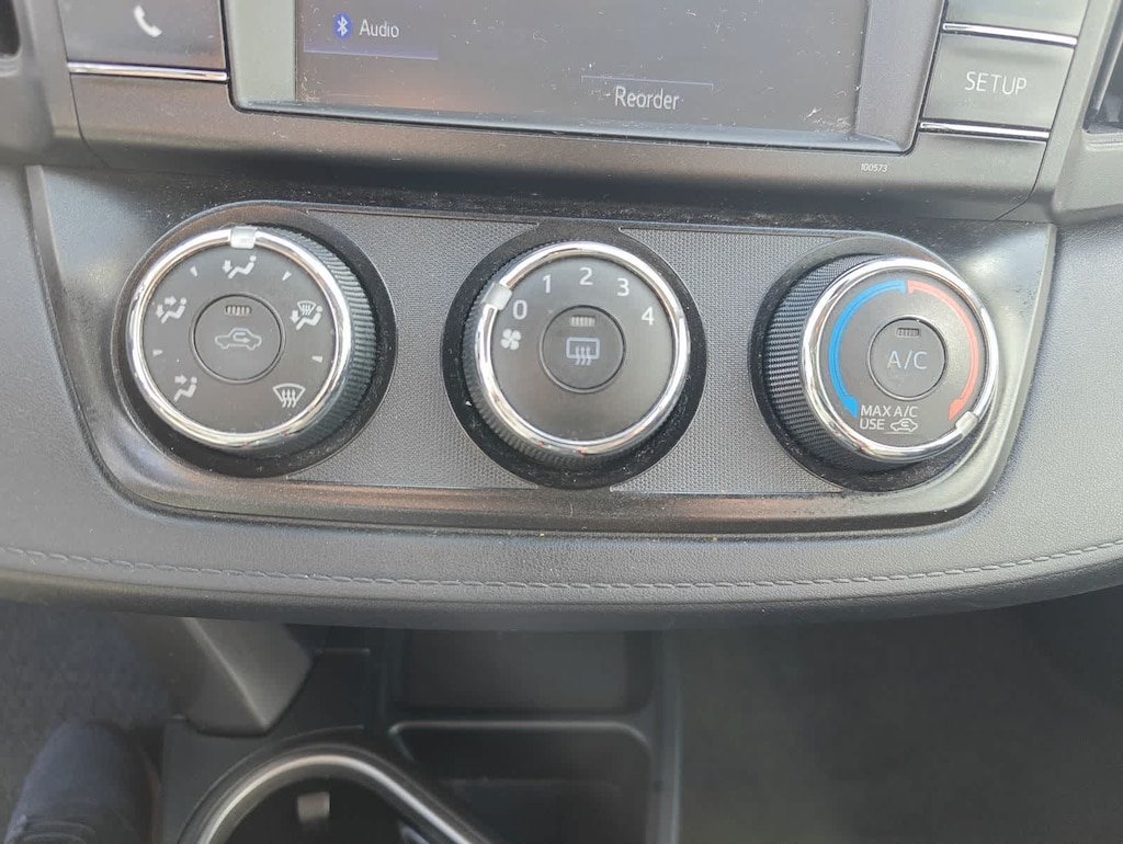 Inside, the RAV4 LE offers comfortable black cloth seating, a spacious cabin, and intuitive controls. Features include dualzone air conditioning, a rearview camera, Entune AM/FM/CD/MP3/WMA audio with 6 speakers, Bluetooth system compatibility (vehicle dependent), a center armrest, steeringwheel audio controls, and splitfolding rear seats for added cargo versatility.