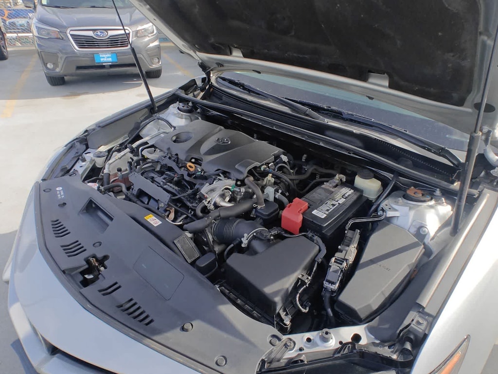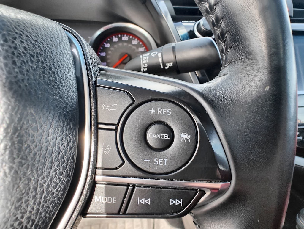 Inside, the Camry XSE delivers premium comfort with Cockpit Red leather seats, power driver and passenger seats, heated front bucket seats, dualzone climate control, a sport steering wheel, and Toyotas intuitive cabin layout. The interior also features Entune 3.0 Audio, Bluetooth capability, AM/FM audio, a rearview camera, and steeringwheelmounted controls. Splitfolding rear seats provide added cargo flexibility for everyday use or weekend travel.