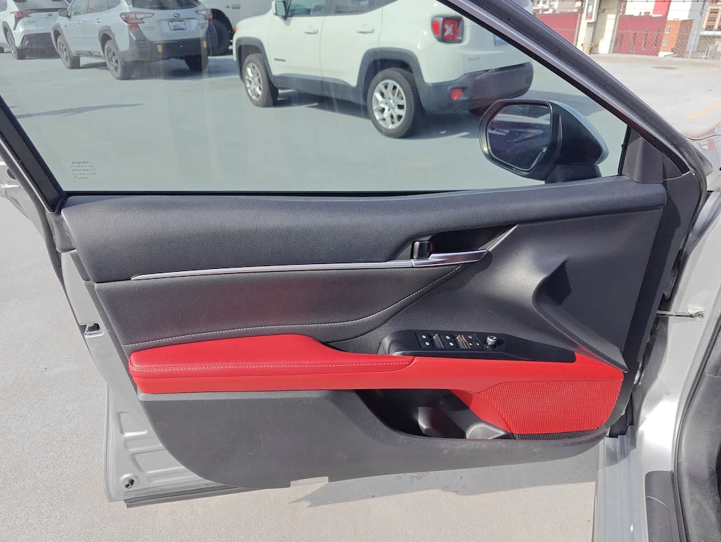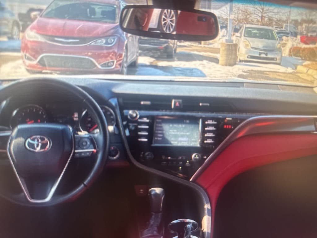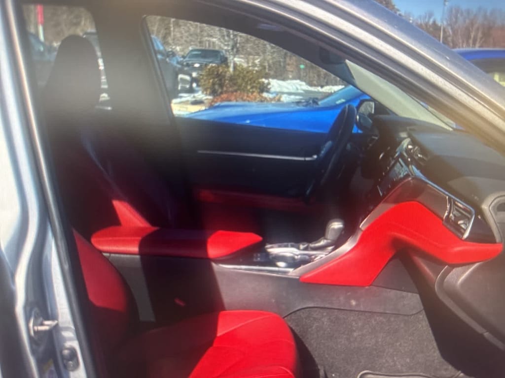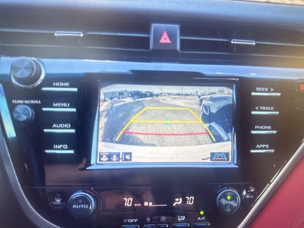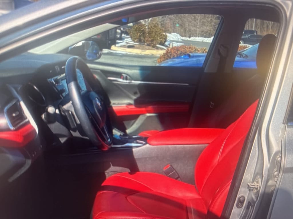 CARFAX One-Owner. Celestial Silver Metallic 2018 Toyota Camry XSE FWD 8-Speed Automatic 2.5L I4 DOHC 16V Cockpit Red Leather, 4-Wheel Disc Brakes, 6 Speakers, ABS brakes, Air Conditioning, Alloy wheels, Auto High-beam Headlights, Auto-dimming Rear-View mirror, Automatic temperature control, Brake assist, Bumpers: body-color, Compass, Delay-off headlights, Driver door bin, Driver vanity mirror, Dual front impact airbags, Dual front side impact airbags, Electronic Stability Control, Exterior Parking Camera Rear, Four wheel independent suspension, Front anti-roll bar, Front Bucket Seats, Front Center Armrest, Front dual zone A/C, Front reading lights, Fully automatic headlights, Garage door transmitter: HomeLink, Heated door mirrors, Heated front seats, Illuminated entry, Knee airbag, Leather Shift Knob, Low tire pressure warning, Multi-Stage Heated Front Bucket Seats, Occupant sensing airbag, Outside temperature display, Overhead airbag, Overhead console, Panic alarm, Passenger door bin, Passenger vanity mirror, Perforated Leather Seat Trim, Power door mirrors, Power driver seat, Power passenger seat, Power steering, Power windows, Radio data system, Radio: Entune 3.0 Audio, Rear anti-roll bar, Rear reading lights, Rear seat center armrest, Rear side impact airbag, Rear window defroster, Remote keyless entry, Security system, Speed control, Speed-sensing steering, Split folding rear seat, Spoiler, Sport steering wheel, Steering wheel