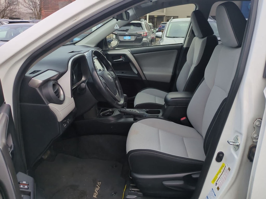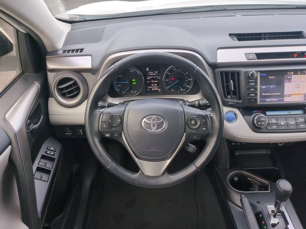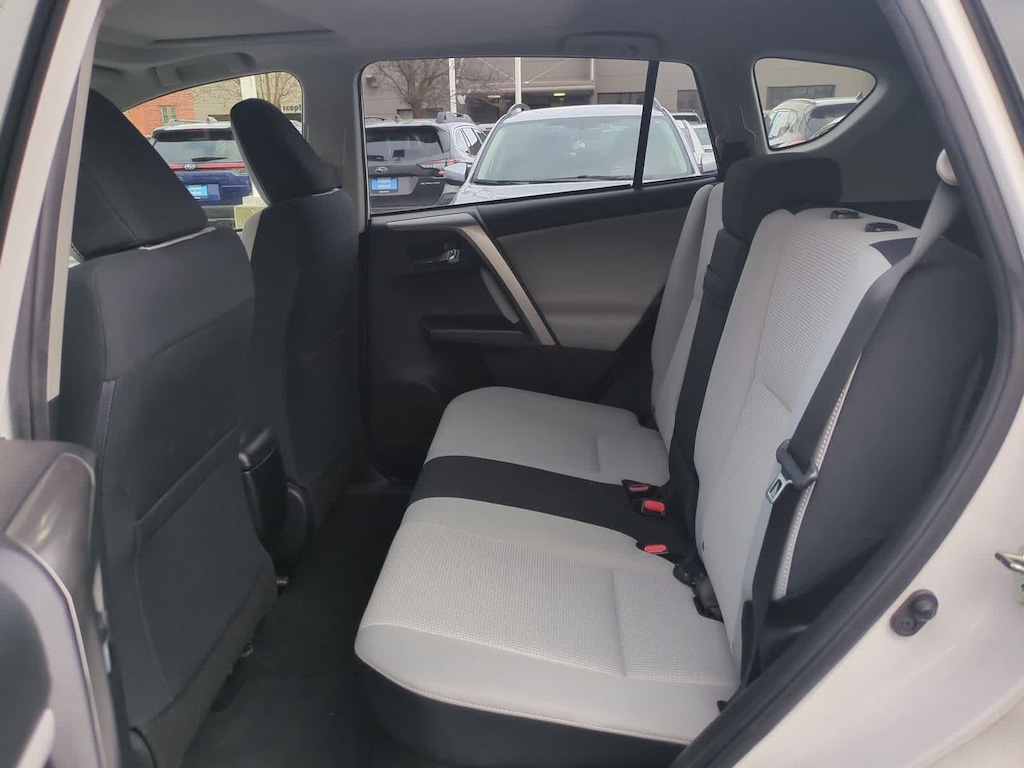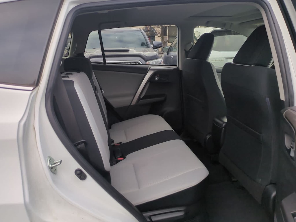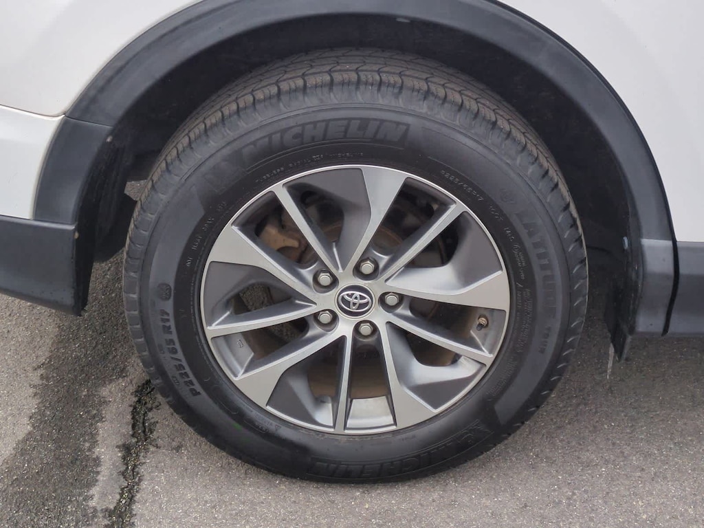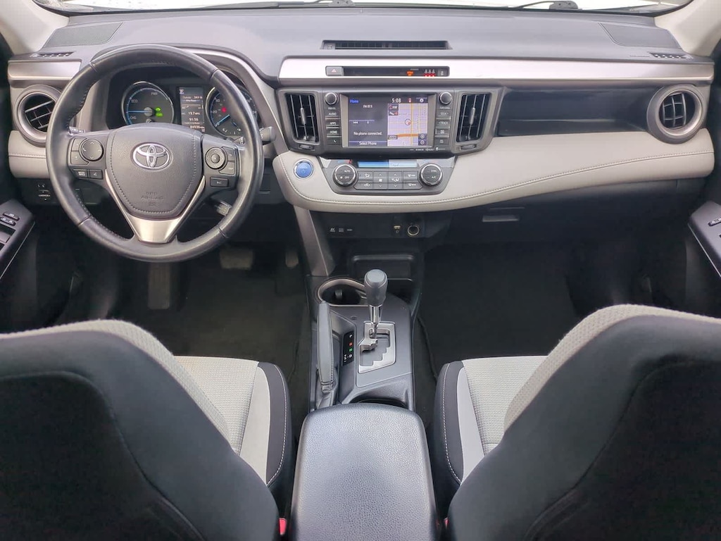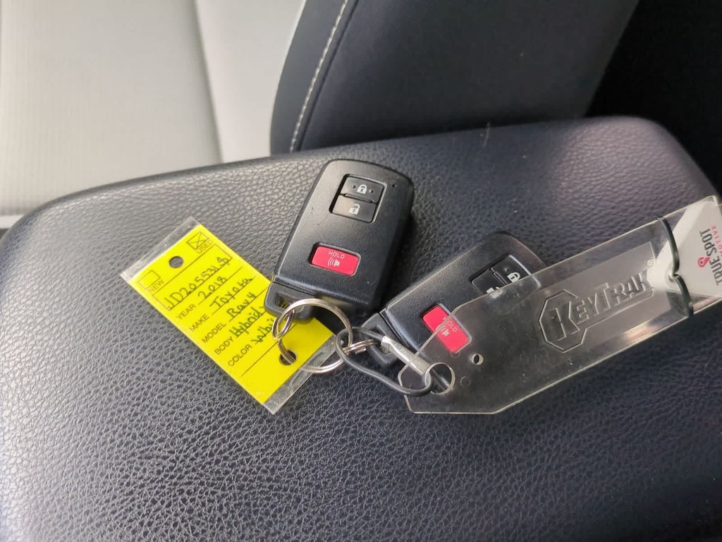 CARFAX One-Owner. Clean CARFAX. White 2018 Toyota RAV4 Hybrid XLE AWD CVT 2.5L 4-Cylinder 2.5L 4-Cylinder, 4-Wheel Disc Brakes, 6 Speakers, ABS brakes, Air Conditioning, Alloy wheels, AM/FM radio: SiriusXM, Auto High-beam Headlights, Automatic temperature control, Axle Ratio: 3.542, Brake assist, Bumpers: body-color, CD player, Driver door bin, Driver vanity mirror, Dual front impact airbags, Dual front side impact airbags, Electronic Stability Control, Exterior Parking Camera Rear, Fabric Seat Trim, Four wheel independent suspension, Front anti-roll bar, Front Bucket Seats, Front Center Armrest, Front dual zone A/C, Front fog lights, Front reading lights, Front Sport Seats, Fully automatic headlights, Heated door mirrors, Illuminated entry, Knee airbag, Leather steering wheel, Low tire pressure warning, Occupant sensing airbag, Outside temperature display, Overhead airbag, Overhead console, Panic alarm, Passenger door bin, Passenger vanity mirror, Power door mirrors, Power moonroof, Power steering, Power windows, Radio data system, Radio: Entune Audio Plus AM/FM/MP3/WMA Playback, Rear anti-roll bar, Rear seat center armrest, Rear window defroster, Rear window wiper, Remote keyless entry, Roof rack, Speed control, Speed-sensing steering, Split folding rear seat, Spoiler, Steering wheel mounted audio controls, Telescoping steering wheel, Tilt steering wheel, Traction control, Trip computer, Turn signal indicator mirrors, Variably intermittent wipers, Wheels: 17 x 7.0J 5-Spoke Alloy, 2.5L 4-Cylinder.