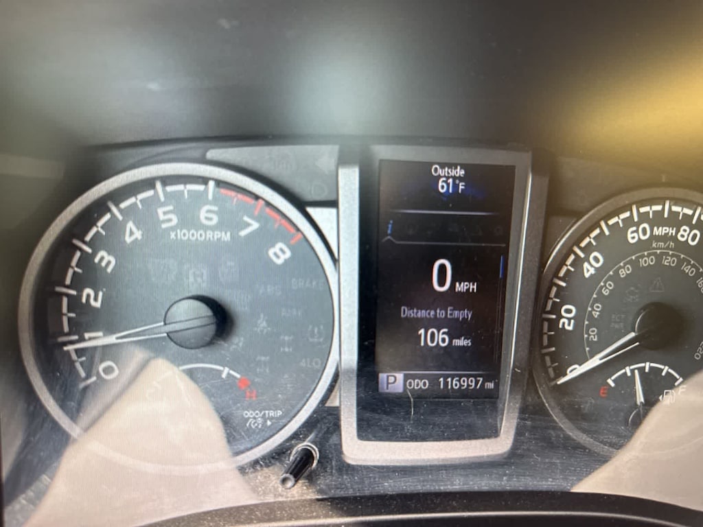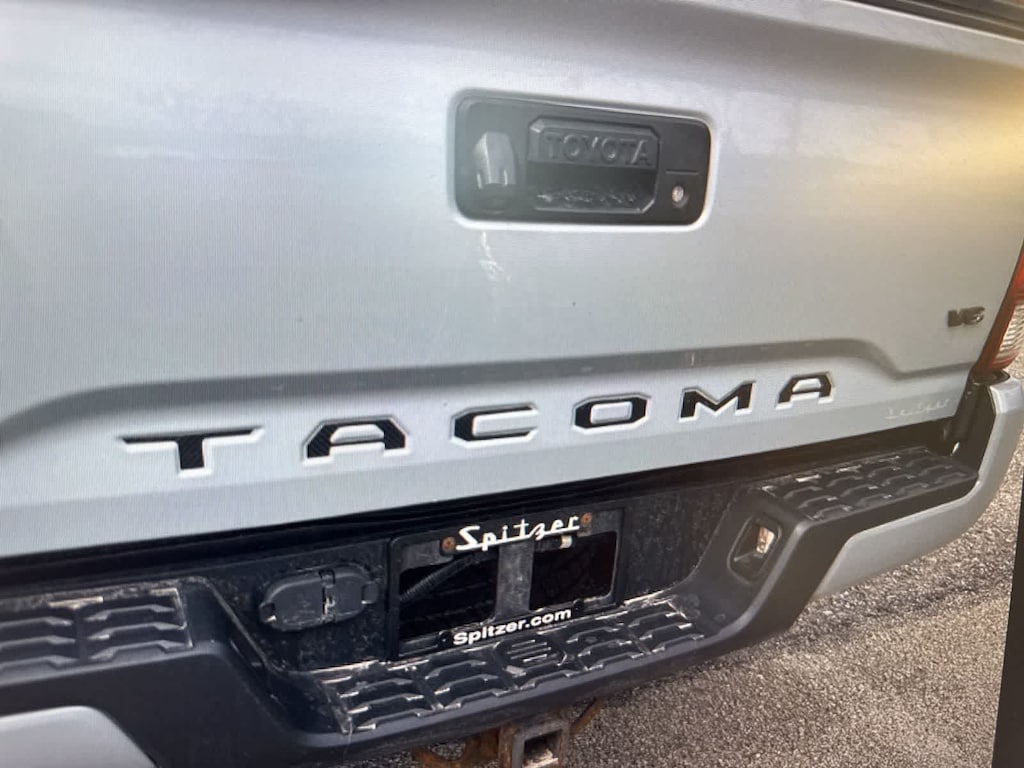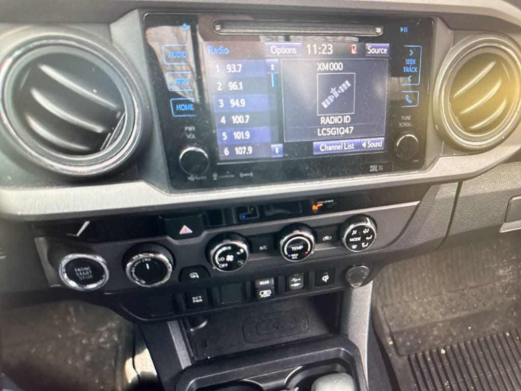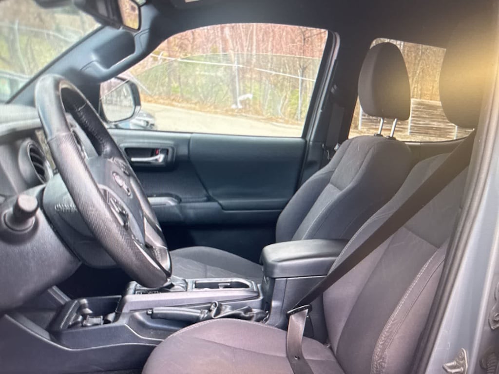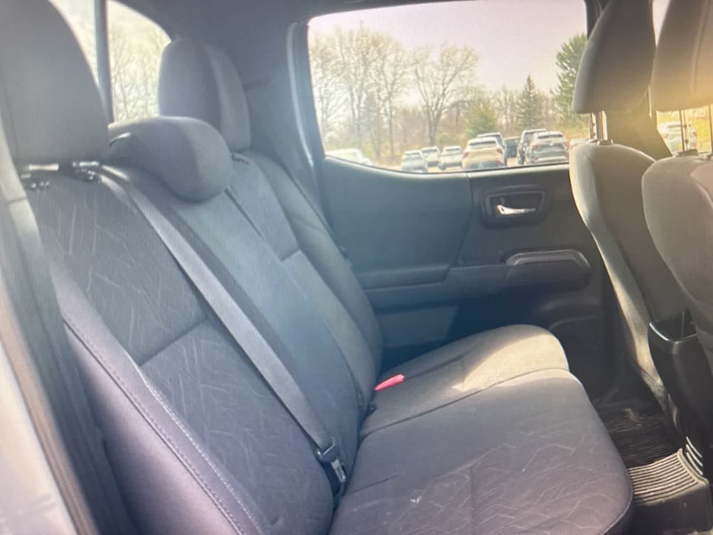 Silver 2018 Toyota Tacoma TRD Sport V6 4WD 6-Speed Automatic 3.5L V6 PDI DOHC 24V LEV3-ULEV70 278hp 4WD, 120V/400W Deck Mounted AC Power, 5 Black Oval Tube Steps, 6 Speakers, ABS brakes, Air Conditioning, All Weather Floor Liner & Door Sill Protector Pkg, Alloy wheels, AM/FM radio: SiriusXM, Anti-whiplash front head restraints, Auto High-beam Headlights, Auto-Dimming Inside Rear-View Mirror w/Compass, Auto-dimming Rear-View mirror, Axle Ratio: 3.91, Blind Spot Monitor w/Rear Cross Traffic Alert, Brake assist, Bumpers: body-color, CD player, Color-Keyed Overfenders, Compass, Door Edge Guards, Door Sill Protectors, Driver door bin, Dual front impact airbags, Dual front side impact airbags, Dual Zone Automatic Climate Control, Electronic Stability Control, Engine Immobilizer, Exterior Parking Camera Rear, Fabric Seat Trim (FD), Front anti-roll bar, Front Bucket Seats, Front Center Armrest, Front fog lights, Front reading lights, Front wheel independent suspension, Hard Tri-Fold Tonneau Cover, Illuminated entry, Knee airbag, Leather Seat Trim, Leather Shift Knob, LED Daytime Running Lamps, Low tire pressure warning, Mudguards, Navigation System, Occupant sensing airbag, Outside temperature display, Overhead airbag, Overhead console, Panic alarm, Passenger door bin, Power door mirrors, Power Sliding Rear Window w/Privacy Glass, Power steering, Power windows, Radio: Entune Premium JBL AM/FM/CD w/Nav & App Ste, Radio: Entune Premium w/AM/FM/CD/Nav/App Suite, Rear Parking Assist Sonar, Rear step bumper, Remote keyless entry, Remote Keyless Entry System, Security system, Smart Key w/Push Button Start, Speed control, Speed-sensing steering, Split folding rear seat, Steering wheel mounted audio controls, Tachometer, Telescoping steering wheel, Tilt steering wheel, Traction control, TRD Sport Package (PY), Trip computer, Turn signal indicator mirrors, Variable Intermittent Wipers, Variably intermittent wipers, Wheels: 17 x 7.5 Machined Alloy, Wide Angle Front Fog Lamps, 4WD.