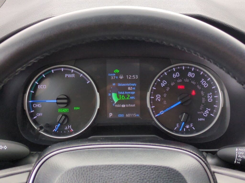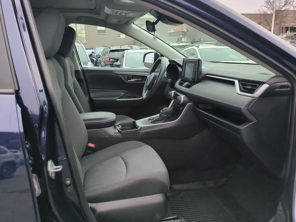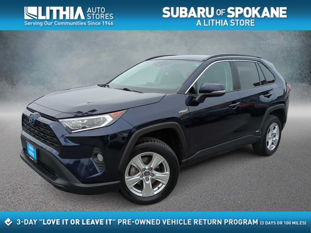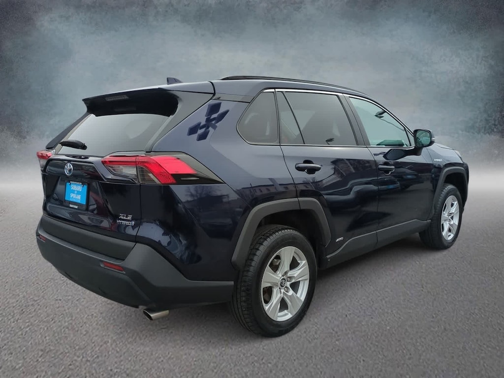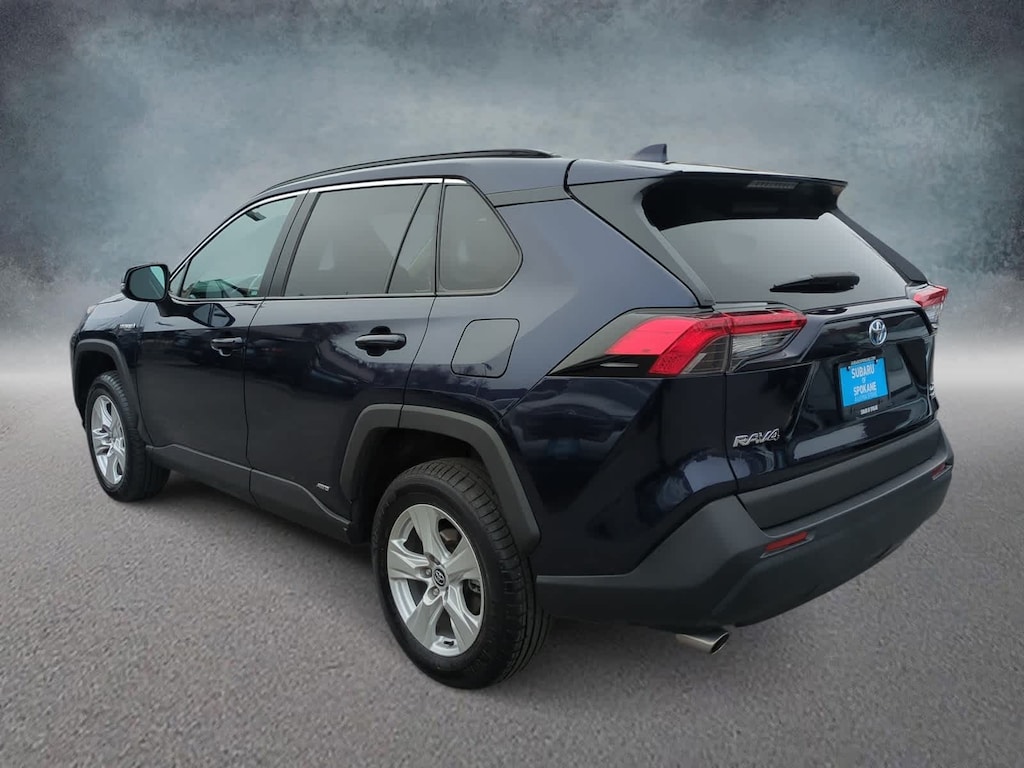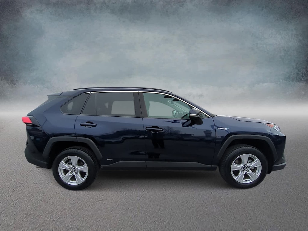 Clean CARFAX. Blue Print 2020 Toyota RAV4 Hybrid XLE AWD eCVT 2.5L 4-Cylinder 2.5L 4-Cylinder, 4-Wheel Disc Brakes, 6 Speakers, ABS brakes, Air Conditioning, Alloy wheels, AM/FM radio: SiriusXM, AM/FM Stereo, Apple CarPlay/Android Auto, Auto High-beam Headlights, Automatic temperature control, Axle Ratio: TBD, Brake assist, Bumpers: body-color, Delay-off headlights, Driver door bin, Driver vanity mirror, Dual front impact airbags, Dual front side impact airbags, Electronic Stability Control, Emergency communication system: Safety Connect with 1-year trial, Exterior Parking Camera Rear, Fabric Seat Trim (FA), Four wheel independent suspension, Front anti-roll bar, Front Bucket Seats, Front Center Armrest, Front dual zone A/C, Front fog lights, Front reading lights, Front Sport Seats, Fully automatic headlights, Heated door mirrors, Illuminated entry, Knee airbag, Low tire pressure warning, Occupant sensing airbag, Outside temperature display, Overhead airbag, Overhead console, Panic alarm, Passenger door bin, Passenger vanity mirror, Power door mirrors, Power driver seat, Power steering, Power windows, Radio data system, Rear anti-roll bar, Rear seat center armrest, Rear window defroster, Rear window wiper, Remote keyless entry, Roof rack: rails only, Speed control, Speed-sensing steering, Split folding rear seat, Spoiler, Steering wheel mounted audio controls, Telescoping steering wheel, Tilt steering wheel, Traction control, Trip computer, Turn signal indicator mirrors, Variably intermittent wipers, Wheels: 17 x 7.0J Silver Aluminum Alloy, 2.5L 4-Cylinder.