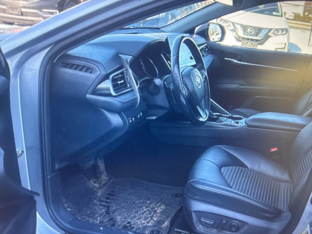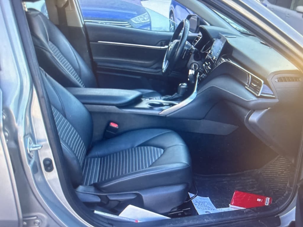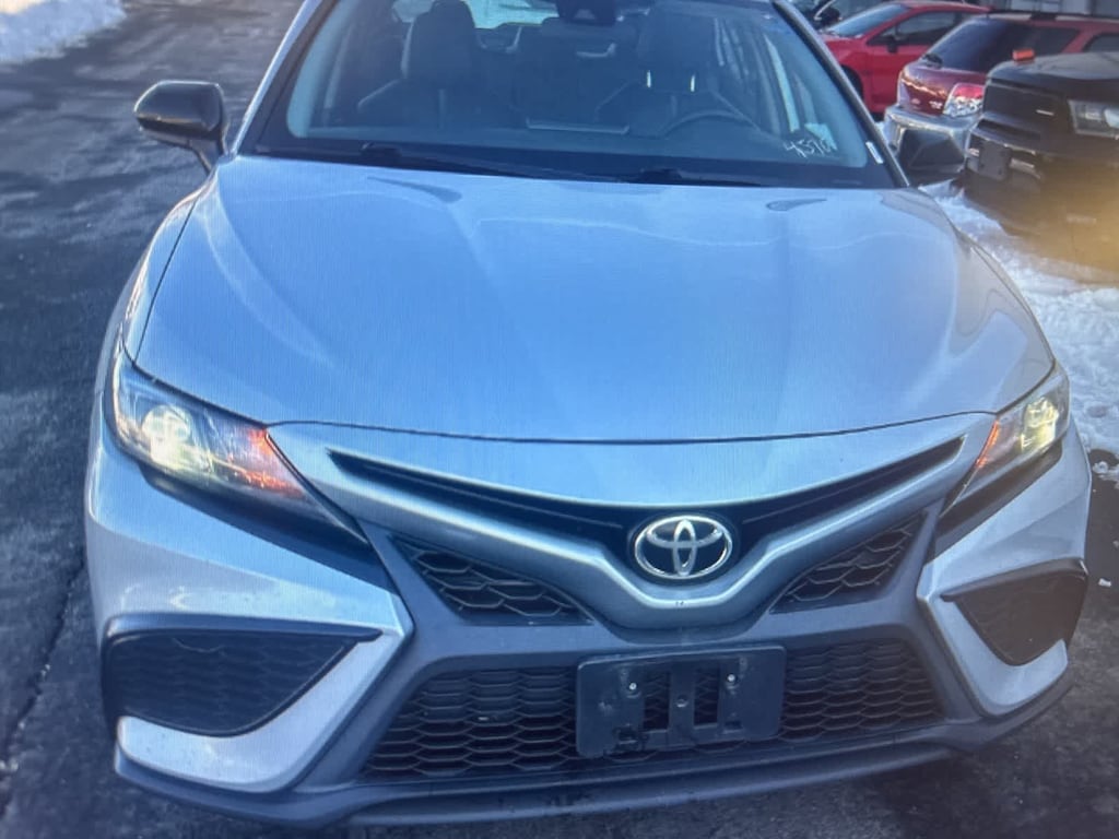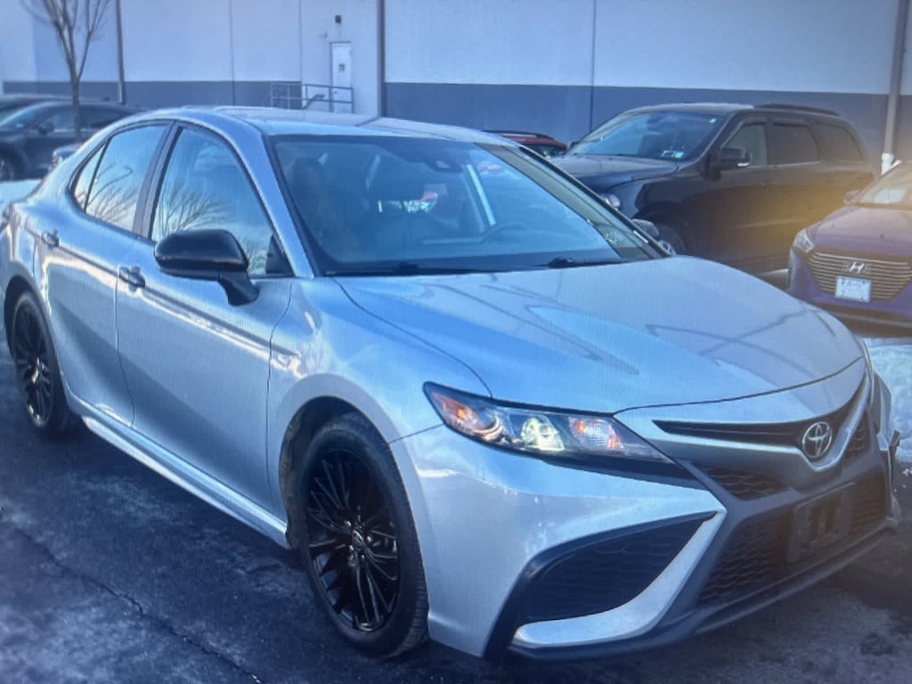CARFAX One-Owner. Clean CARFAX. Silver 2021 Toyota Camry SE Nightshade AWD 8-Speed Automatic 2.5L I4 DOHC 16V Black Leather, 4-Wheel Disc Brakes, 6 Speakers, ABS brakes, Air Conditioning, Alloy wheels, AM/FM radio: SiriusXM, Apple CarPlay/Android Auto, Auto High-beam Headlights, Automatic temperature control, Black Door Handles, Black Mirror Caps, Black Rear Badges, Black Rear Spoiler, Black Shark-Fin Antenna, Black Window Molding, Brake assist, Bumpers: body-color, Delay-off headlights, Driver door bin, Driver vanity mirror, Dual front impact airbags, Dual front side impact airbags, Electronic Stability Control, Emergency communication system: Safety Connect with 1-year trial, Exterior Parking Camera Rear, Fabric Seat Trim w/Sport SofTex, Four wheel independent suspension, Front anti-roll bar, Front Bucket Seats, Front Center Armrest, Front reading lights, Fully automatic headlights, Illuminated entry, Knee airbag, Low tire pressure warning, Occupant sensing airbag, Outside temperature display, Overhead airbag, Overhead console, Panic alarm, Passenger door bin, Passenger vanity mirror, Power door mirrors, Power driver seat, Power steering, Power windows, Radio data system, Radio: AM/FM Audio System, Rear anti-roll bar, Rear seat center armrest, Rear side impact airbag, Rear window defroster, Remote keyless entry, Security system, Speed control, Speed-sensing steering, Split folding rear seat