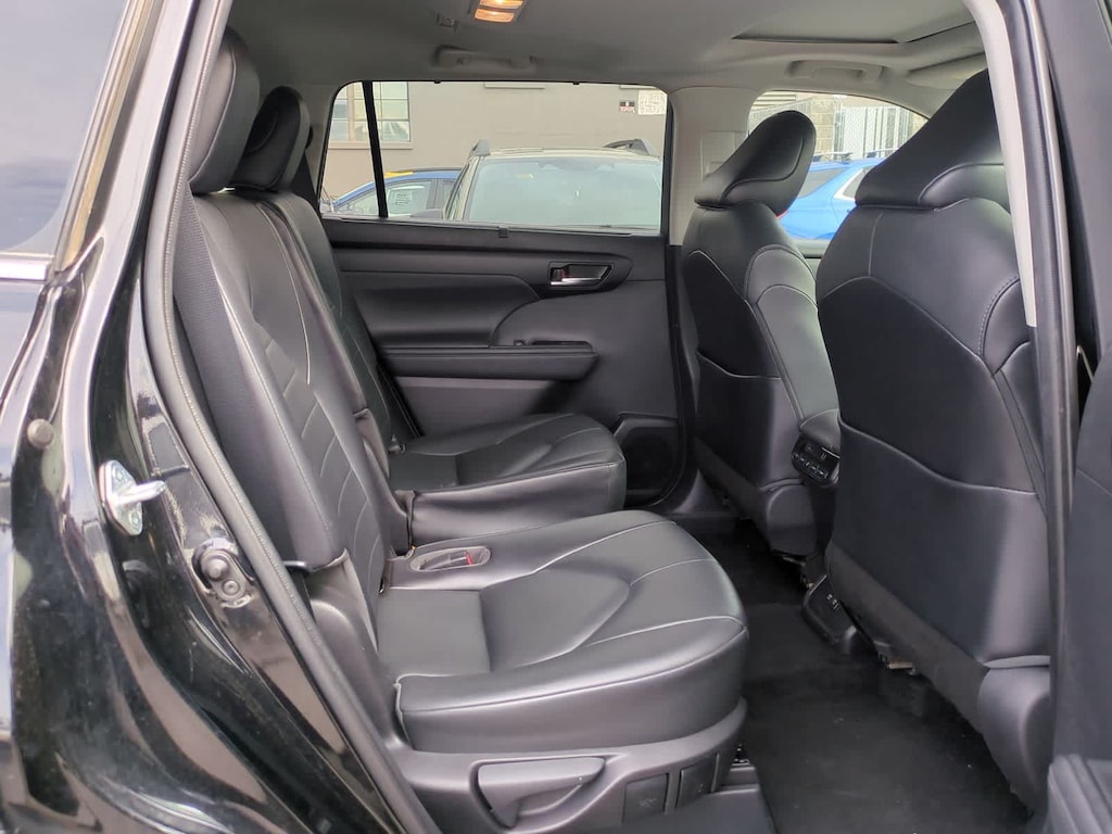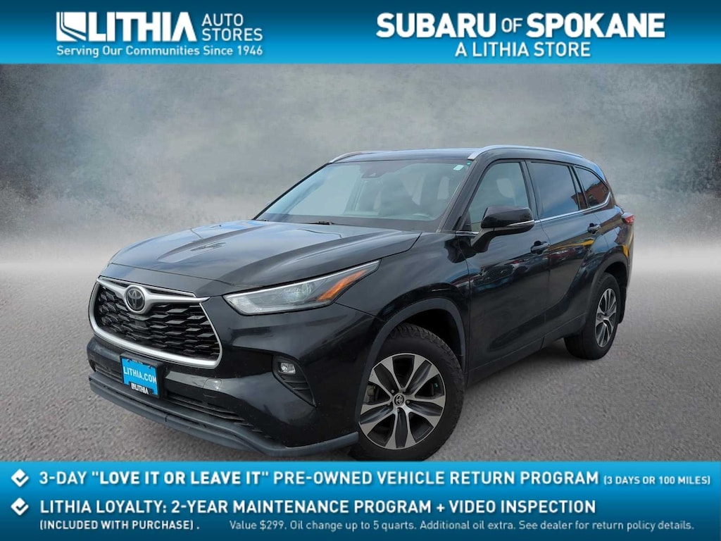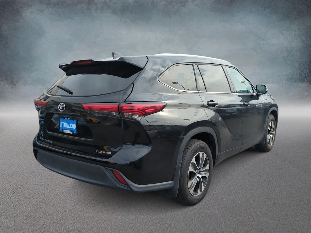 CARFAX One-Owner. Clean CARFAX. Midnight Black Metallic 2021 Toyota Highlander XLE AWD 8-Speed Automatic 3.5L V6 DOHC AWD, 18 Machined Alloy Wheels, 3.003 Axle Ratio, 3rd row seats: split-bench, 4-Wheel Disc Brakes, 6 Speakers, ABS brakes, Air Conditioning, Alloy wheels, AM/FM radio: SiriusXM, Apple CarPlay/Android Auto, Auto High-beam Headlights, Auto-dimming Rear-View mirror, Automatic temperature control, Brake assist, Bumpers: body-color, Delay-off headlights, Driver door bin, Driver vanity mirror, Dual front impact airbags, Dual front side impact airbags, Electronic Stability Control, Emergency communication system: Safety Connect with 1-year trial, Exterior Parking Camera Rear, Four wheel independent suspension, Front anti-roll bar, Front Bucket Seats, Front Center Armrest, Front dual zone A/C, Front fog lights, Front reading lights, Fully automatic headlights, Garage door transmitter: HomeLink, Heated door mirrors, Heated Front Bucket Seats, Heated front seats, Illuminated entry, Knee airbag, Leather Shift Knob, Low tire pressure warning, Occupant sensing airbag, Outside temperature display, Overhead airbag, Overhead console, Panic alarm, Passenger door bin, Passenger vanity mirror, Power door mirrors, Power driver seat, Power Liftgate, Power moonroof, Power passenger seat, Power steering, Power windows, Radio: Audio Plus, Rear air conditioning, Rear anti-roll bar, Rear reading lights, Rear window defroster, Rear window wiper, Reclining 3rd row seat, Remote keyless entry, Roof rack: rails only, Security system, SofTex Seat Trim, Speed control, Speed-sensing steering, Split folding rear seat, Spoiler, Steering wheel mounted audio controls, Tachometer, Telescoping steering wheel, Tilt steering wheel, Traction control, Trip computer, Turn signal indicator mirrors, Variably intermittent wipers, AWD.