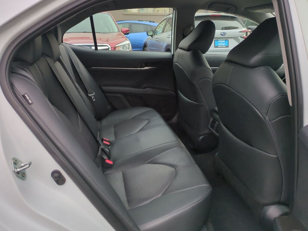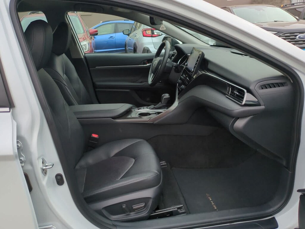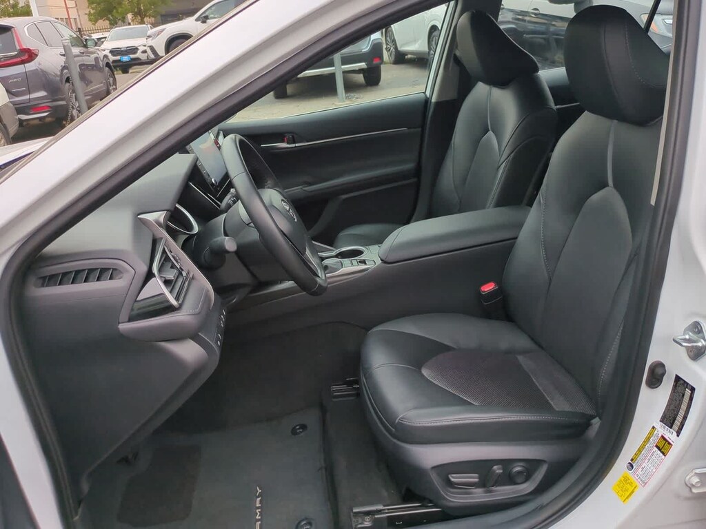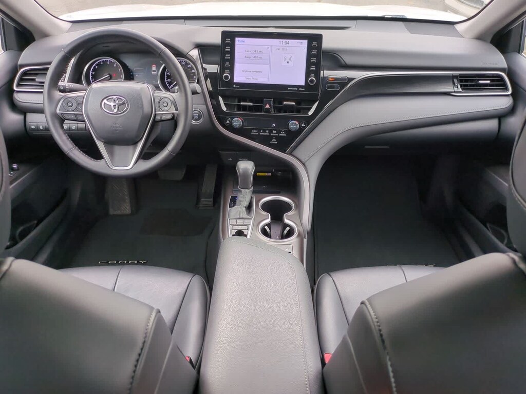 CARFAX One-Owner. Clean CARFAX. Wind Chill Pearl/Midnight Black Metallic 2024 Toyota Camry XLE FWD 8-Speed Automatic 2.5L I4 DOHC 16V Black Leather, 18 x 8J Alloy Wheels, 4-Wheel Disc Brakes, 6 Speakers, ABS brakes, Air Conditioning, Alloy wheels, AM/FM radio: SiriusXM, Apple CarPlay/Android Auto, Auto High-beam Headlights, Auto-dimming Rear-View mirror, Automatic temperature control, Brake assist, Bumpers: body-color, Delay-off headlights, Driver door bin, Driver vanity mirror, Dual front impact airbags, Dual front side impact airbags, Electronic Stability Control, Emergency communication system: Safety Connect (1-year trial), Exterior Parking Camera Rear, Four wheel independent suspension, Front anti-roll bar, Front Bucket Seats, Front Center Armrest, Front dual zone A/C, Front reading lights, Fully automatic headlights, Garage door transmitter: HomeLink, Heated door mirrors, Heated front seats, Illuminated entry, Knee airbag, Leather steering wheel, Low tire pressure warning, Multi-Stage Heated Front Bucket Seats, Occupant sensing airbag, Outside temperature display, Overhead airbag, Overhead console, Panic alarm, Passenger door bin, Passenger vanity mirror, Perforated Leather Seat Trim, Power door mirrors, Power driver seat, Power passenger seat, Power steering, Power windows, Radio data system, Radio: Audio Plus, Rear anti-roll bar, Rear reading lights, Rear seat center armrest, Rear side impact airbag, Rear window defroster, Remote keyless entry, Security system, Speed control, Speed-sensing steering, Split folding rear seat, Steering wheel mounted audio controls, Tachometer, Telescoping steering wheel, Tilt steering wheel, Traction control, Trip computer, Turn signal indicator mirrors, Variably intermittent wipers, Black Leather.