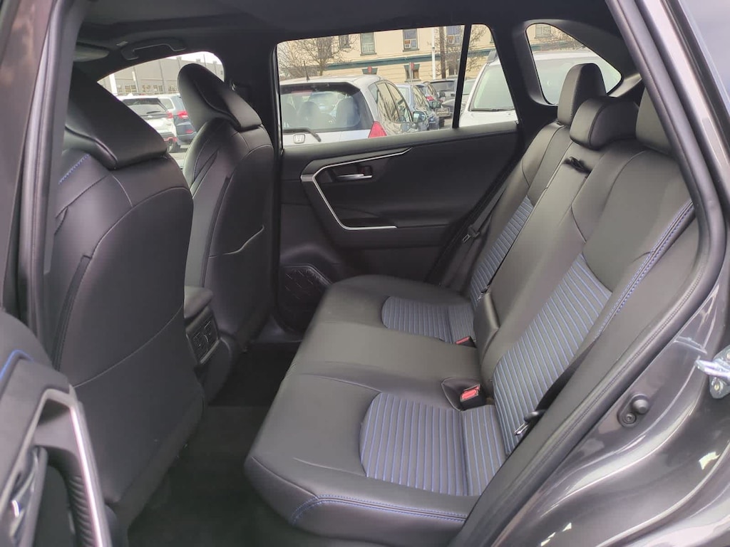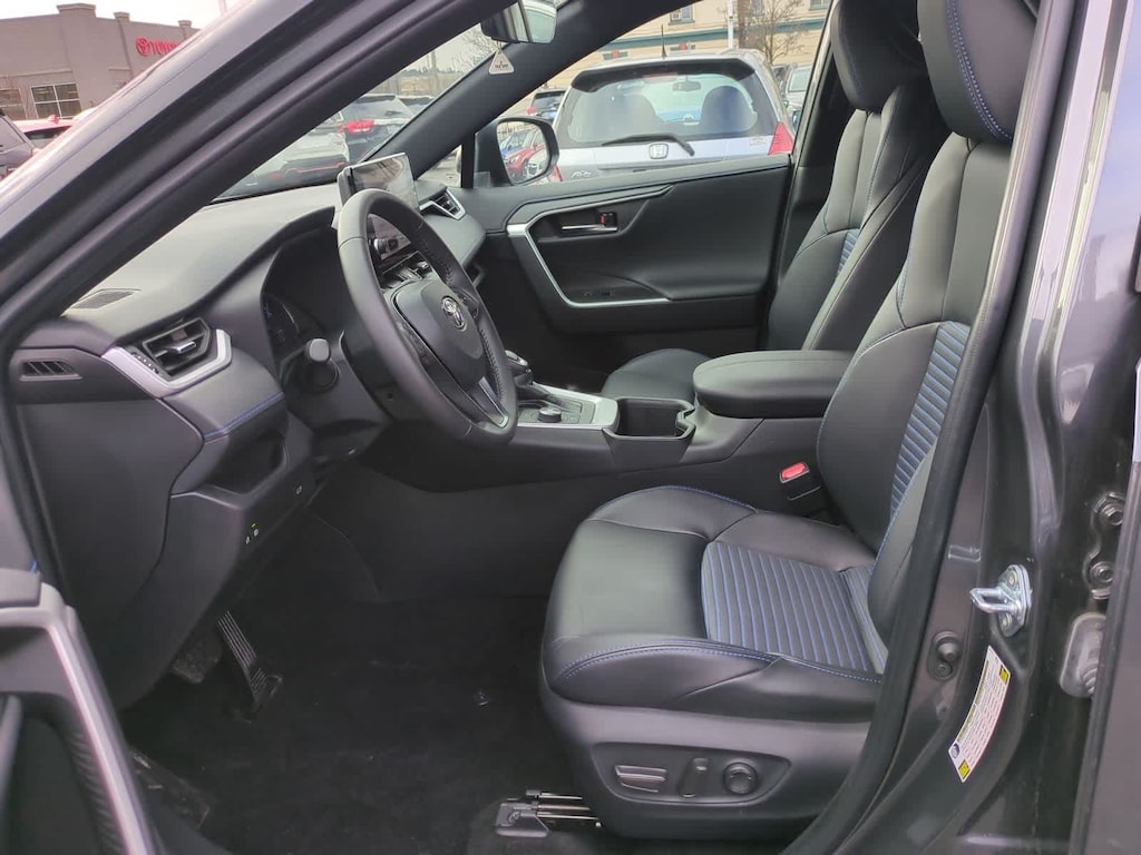 Inside, the RAV4 Hybrid XSE features a sporty and refined cabin with mixedmedia sport seating, a leather steering wheel, a leather shift knob, a power driver seat, a power moonroof, splitfolding rear seats, an autodimming mirror with HomeLink, and intuitive ergonomics for winter daily driving. Technology includes Toyotas AM/FM/XM Audio System, Apple CarPlay/Android Auto capability, Bluetooth, a large touchscreen display, 6 speakers, and Safety Connect with a 1year trial.
