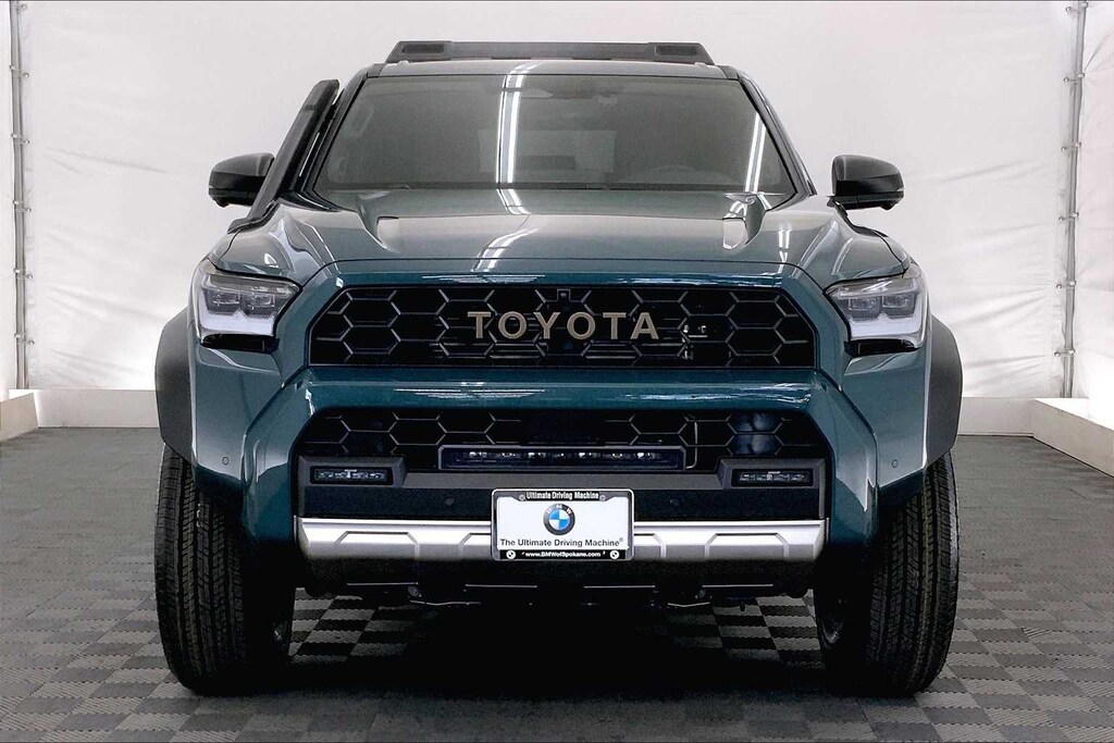 CARFAX One-Owner. Clean CARFAX. Green 2025 Toyota 4Runner i-FORCE MAX Hybrid 4WD 8-Speed Automatic 2.4L I4 FI Hybrid Turbocharged DOHC 16V 2.4L I4 FI Hybrid Turbocharged DOHC 16V, 4-Wheel Disc Brakes, ABS brakes, Air Conditioning, Alloy wheels, AM/FM radio: SiriusXM, Anti-whiplash front head restraints, Apple CarPlay/Android Auto, Auto High-beam Headlights, Automatic temperature control, Brake assist, Bumpers: body-color, Driver door bin, Driver vanity mirror, Dual front impact airbags, Dual front side impact airbags, Electronic Stability Control, Emergency communication system: Safety Connect (1-year trial), Exterior Parking Camera Rear, Front anti-roll bar, Front Bucket Seats, Front Center Armrest, Front dual zone A/C, Front fog lights, Front reading lights, Front wheel independent suspension, Heated door mirrors, Illuminated entry, Knee airbag, Leather Shift Knob, Leather steering wheel, Low tire pressure warning, Occupant sensing airbag, Outside temperature display, Overhead airbag, Overhead console, Panic alarm, Passenger door bin, Passenger vanity mirror, Power door mirrors, Power steering, Power windows, Rear anti-roll bar, Rear seat center armrest, Rear side impact airbag, Rear window defroster, Rear window wiper, Remote keyless entry, Security system, Speed control, Speed-sensing steering, Split folding rear seat, Spoiler, Steering wheel mounted audio controls, Tachometer, Telescoping steering wheel, Tilt steering wheel, Traction control, Trip computer, Variably intermittent wipers, 2.4L I4 FI Hybrid Turbocharged DOHC 16V.